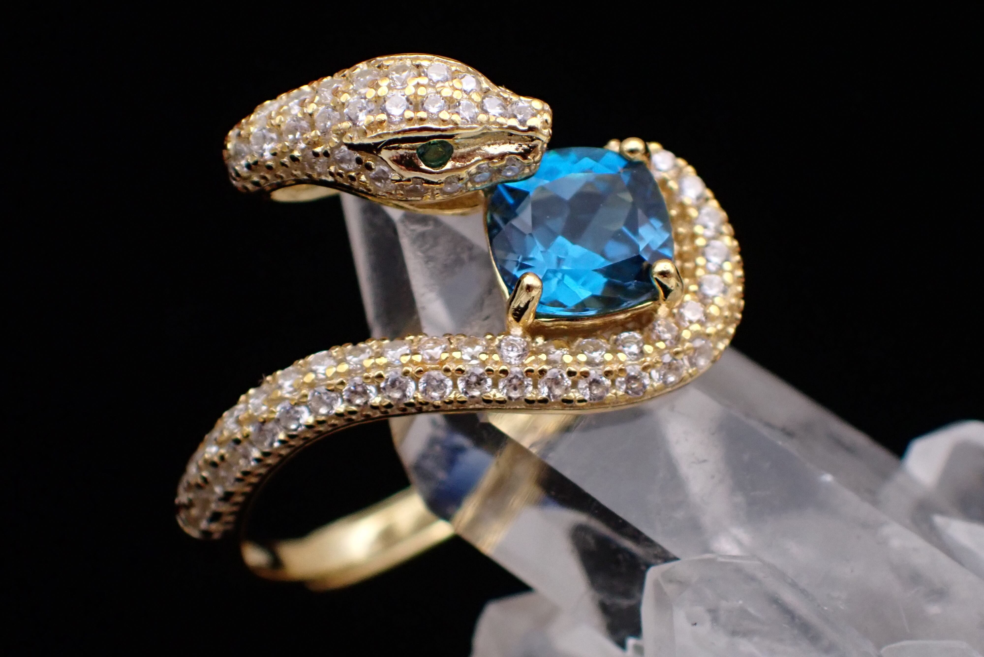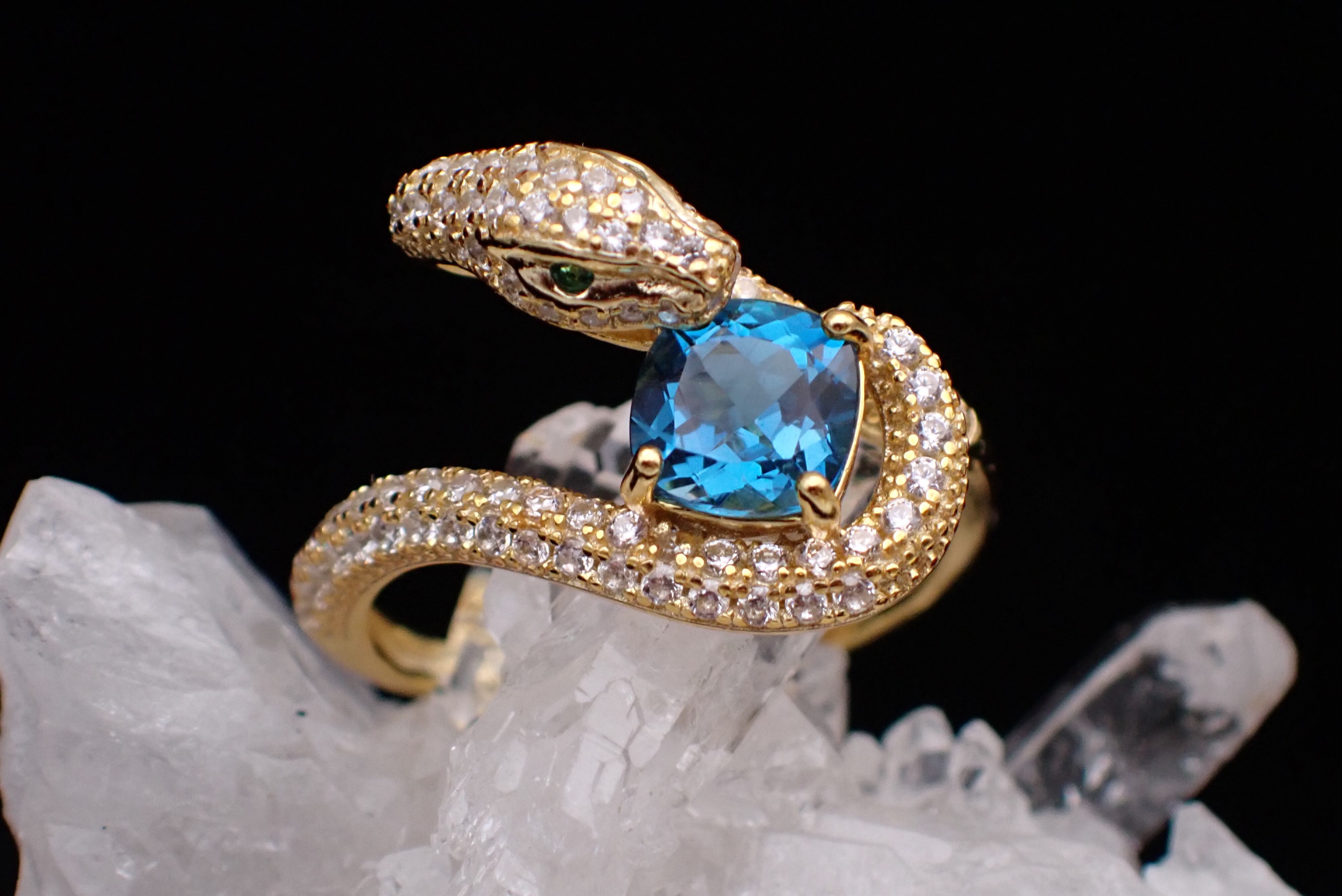 square 蛇 ring ロンドンブルートパーズ フリーサイズリングYG