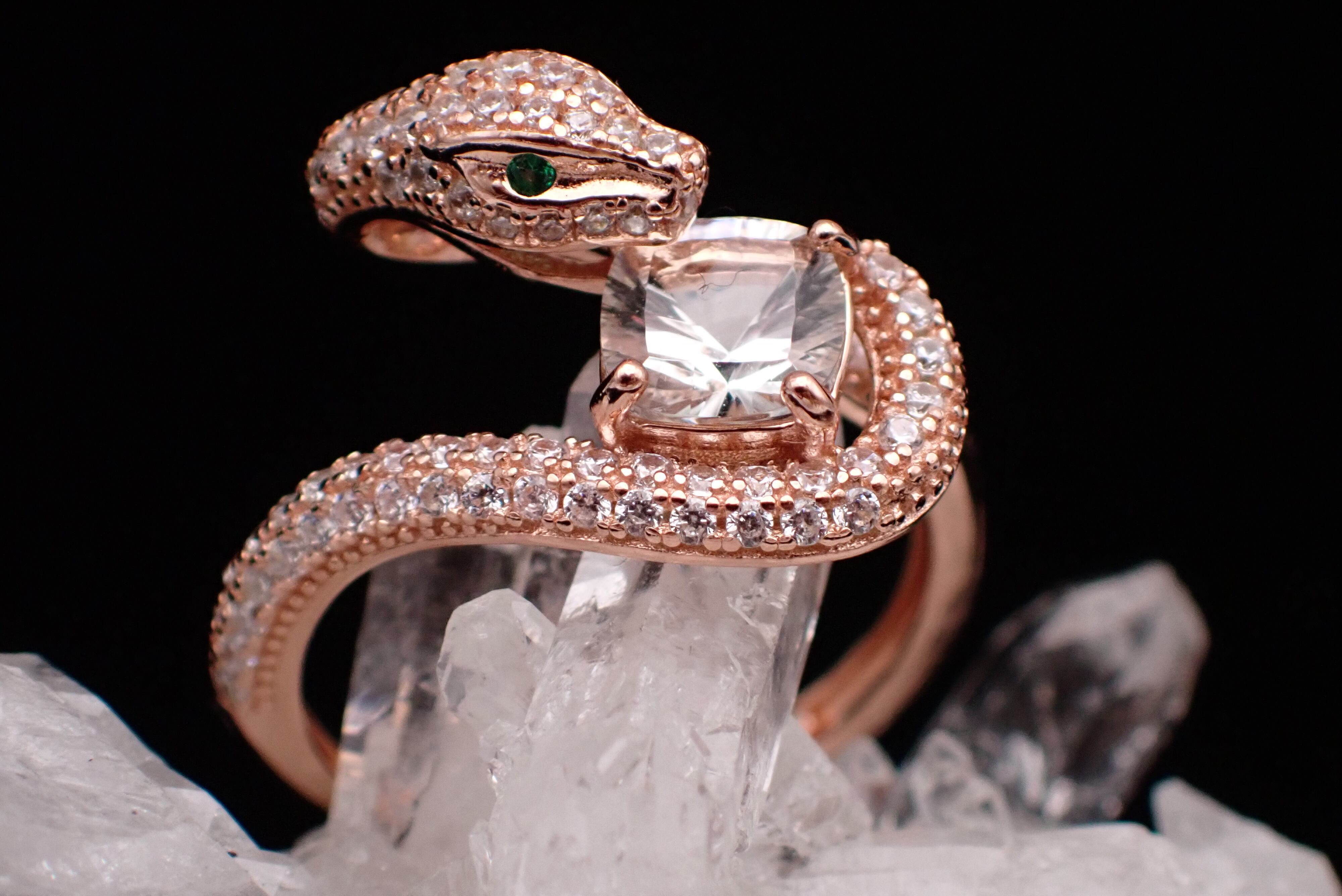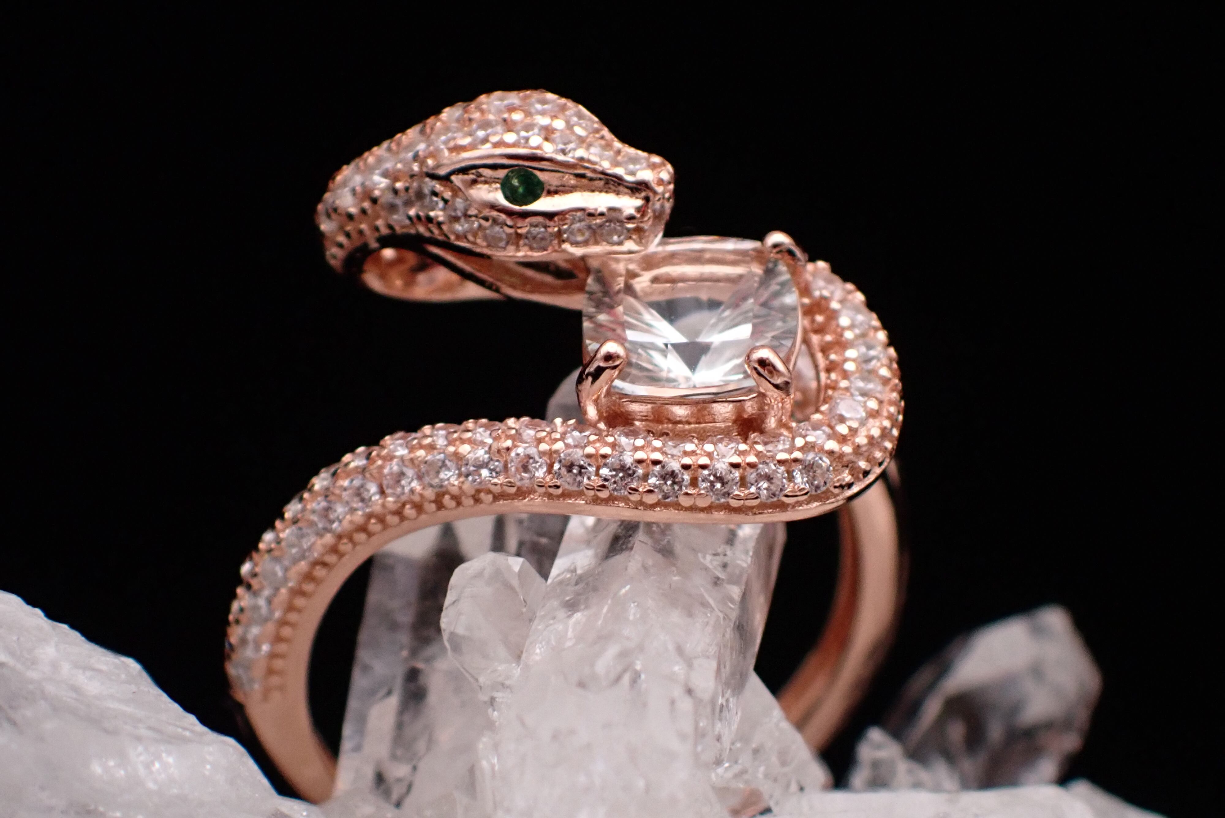 今年の干支であり、金運の象徴である蛇がキラキラと輝いて指に巻き付く縁起の良いリングです。