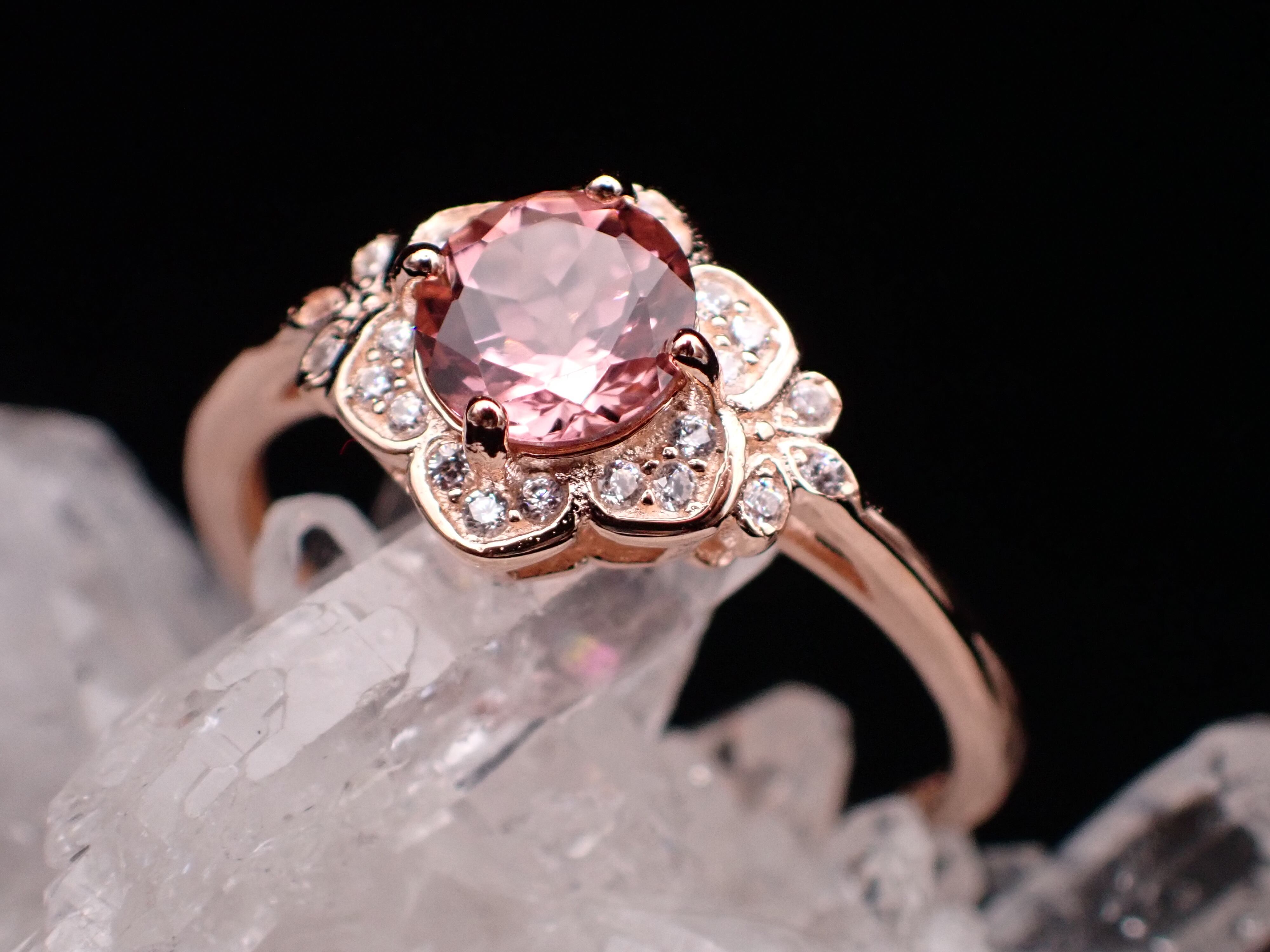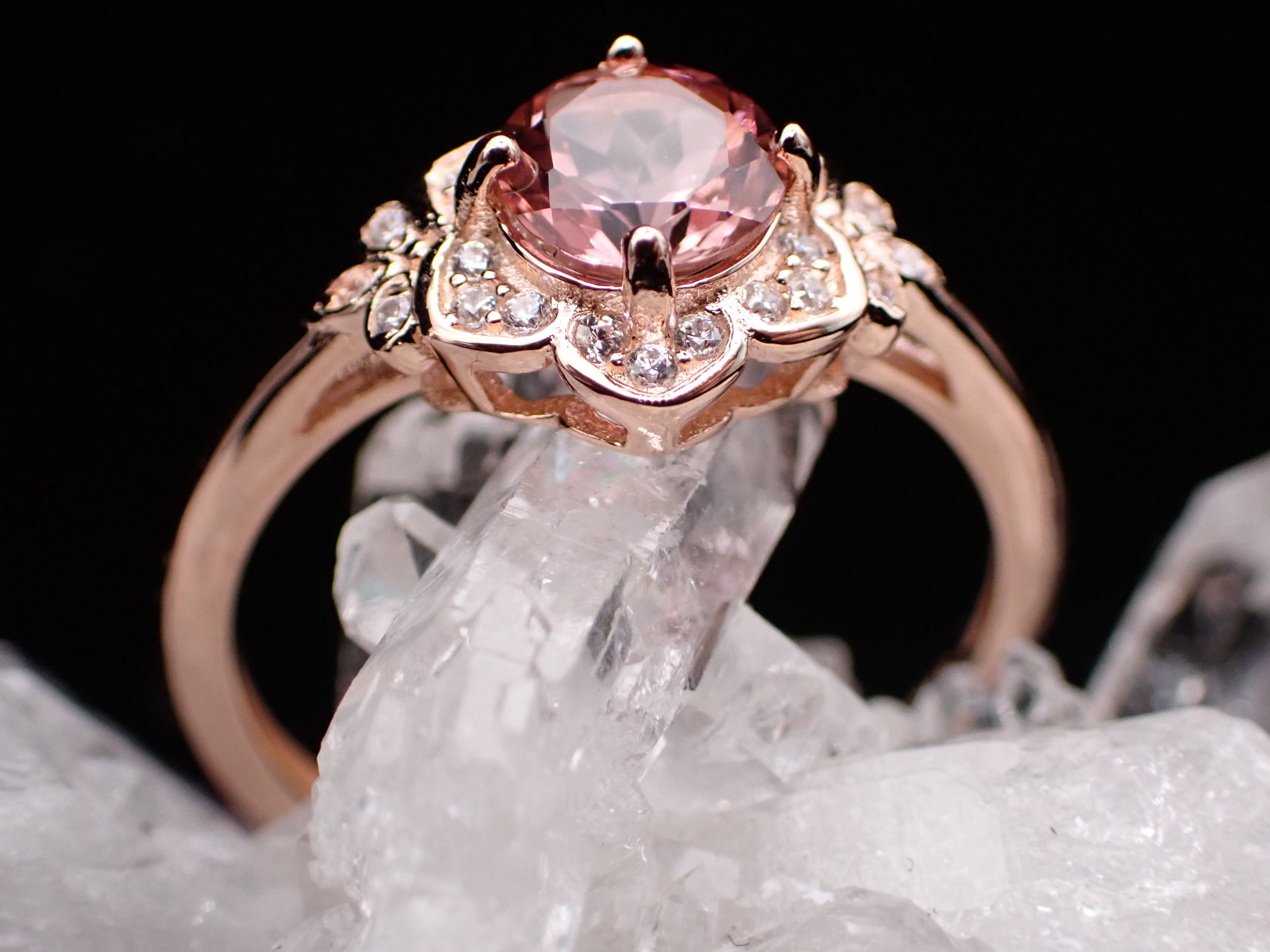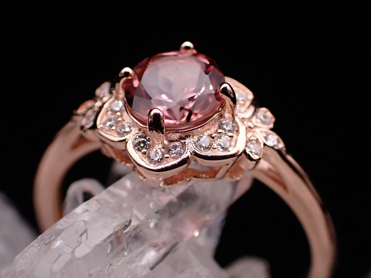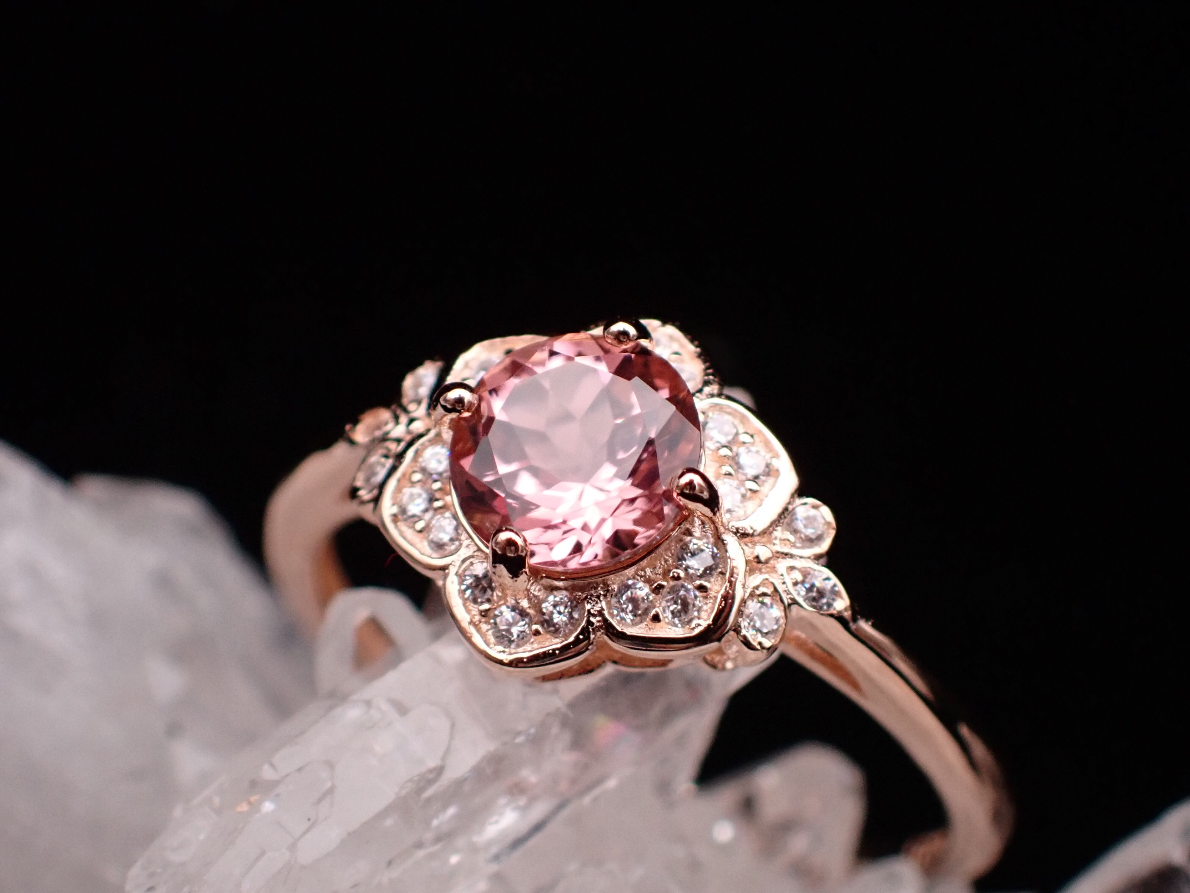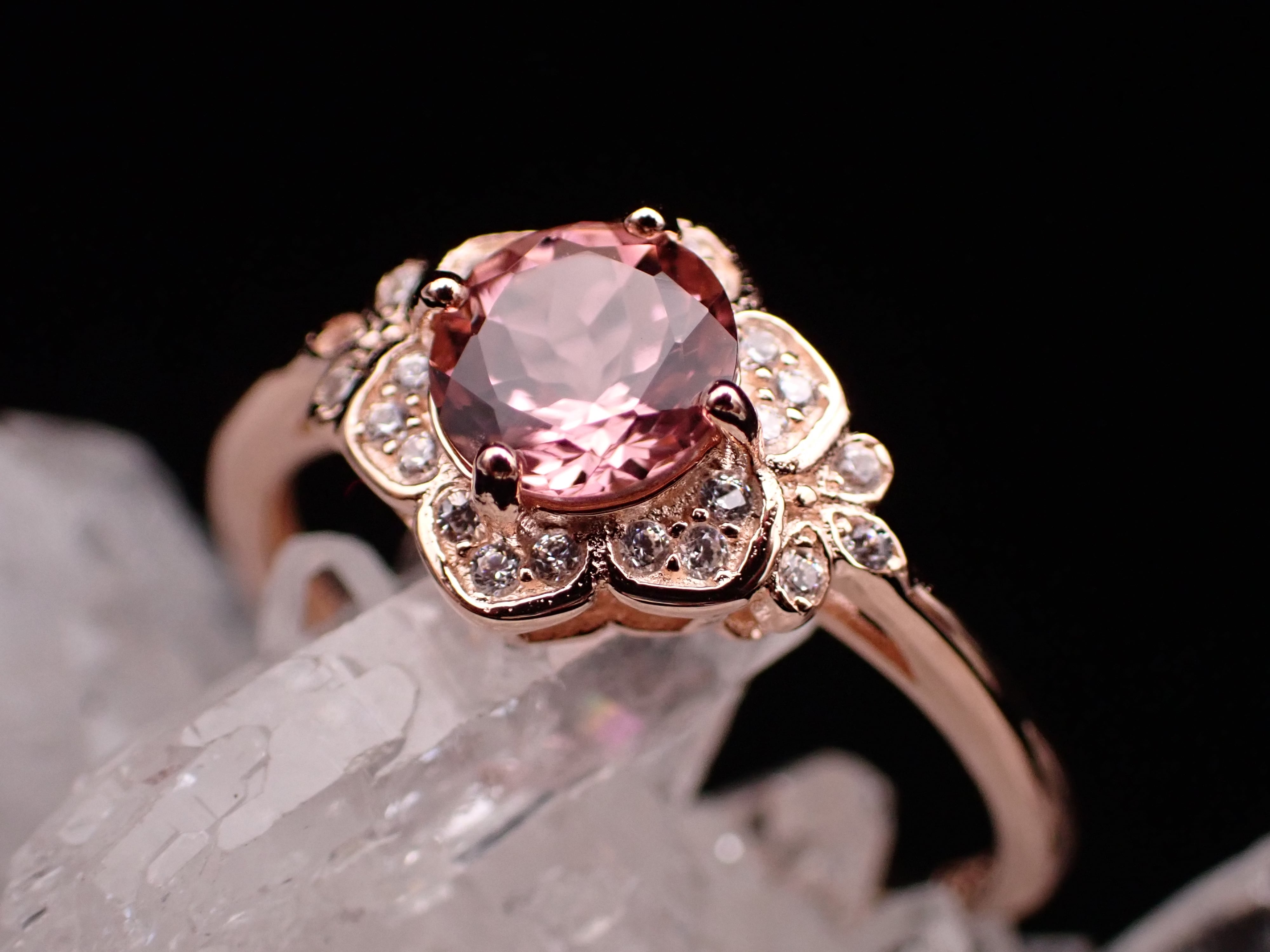 桔梗の花びらの中央に咲き誇る美しいピンクトルマリン。