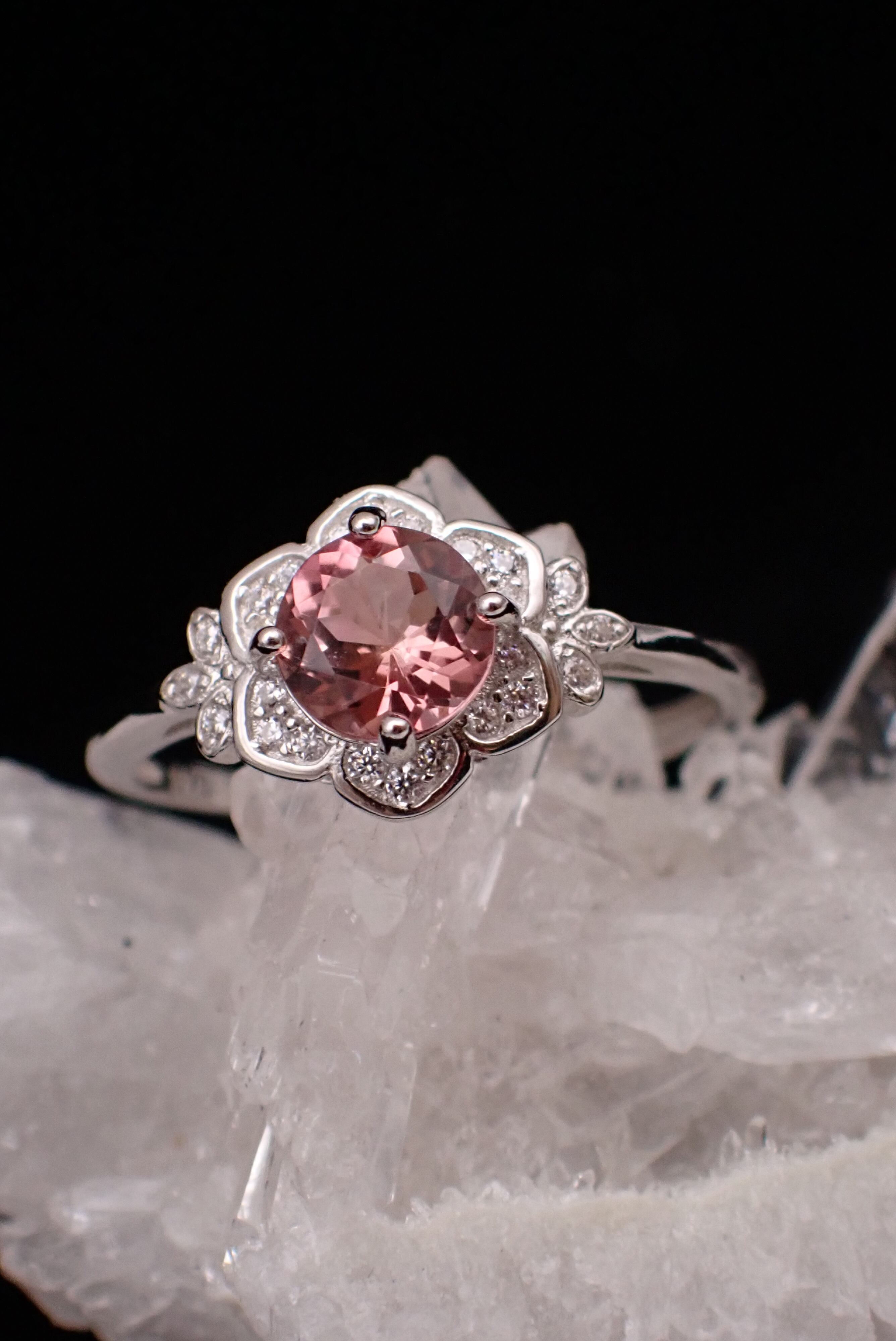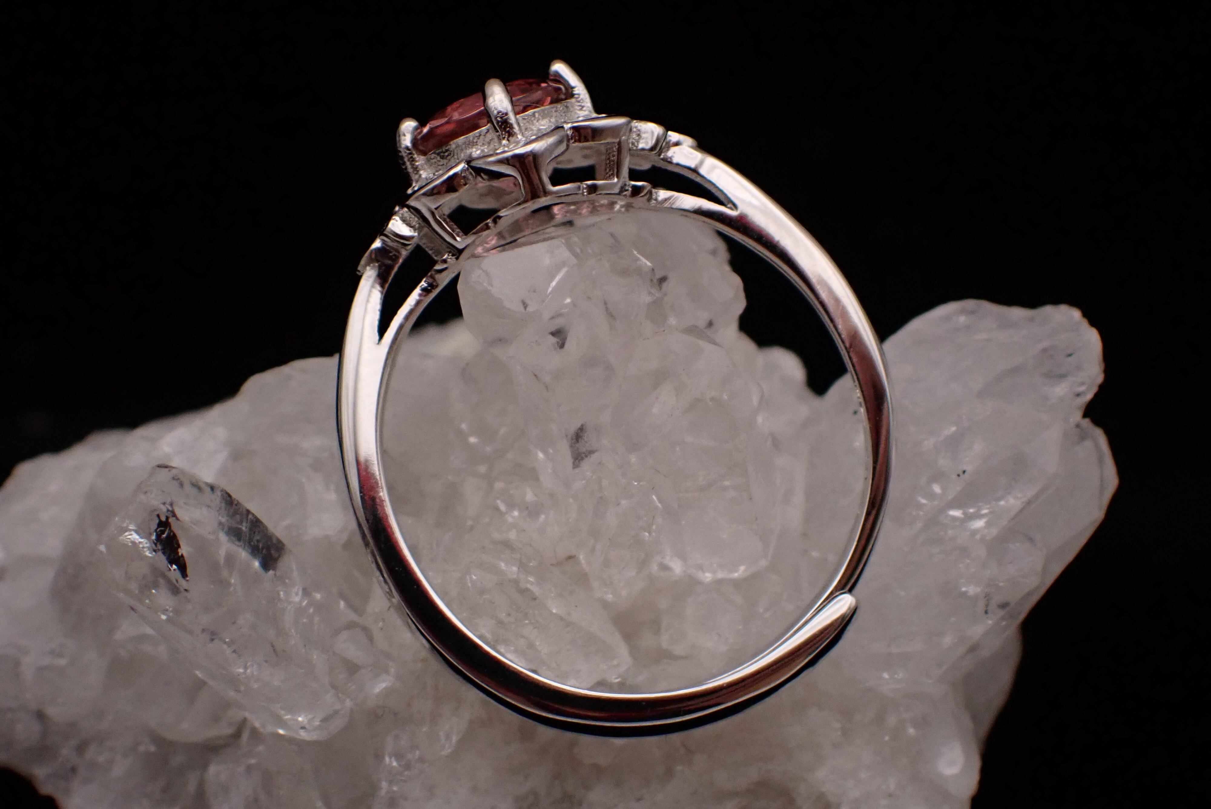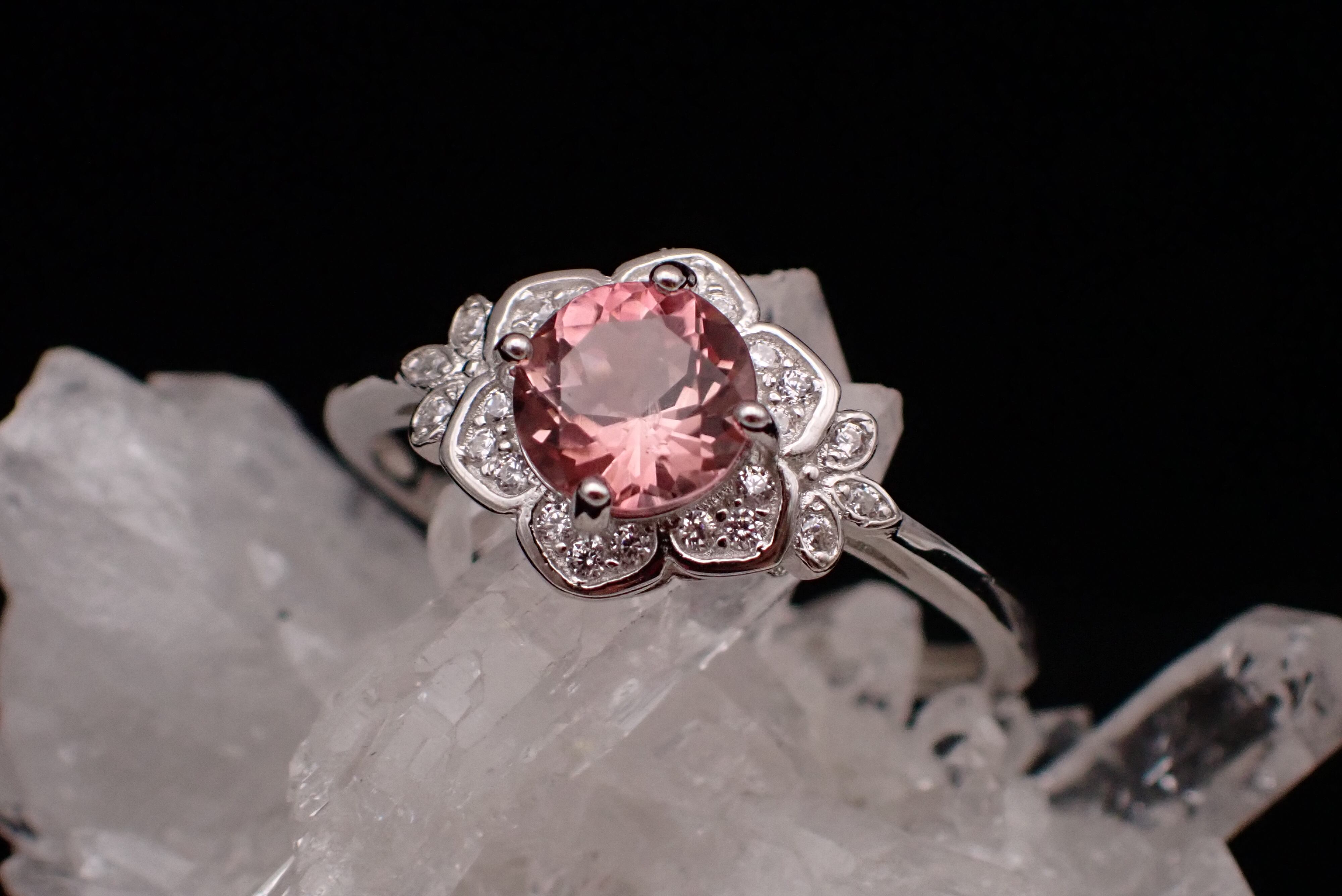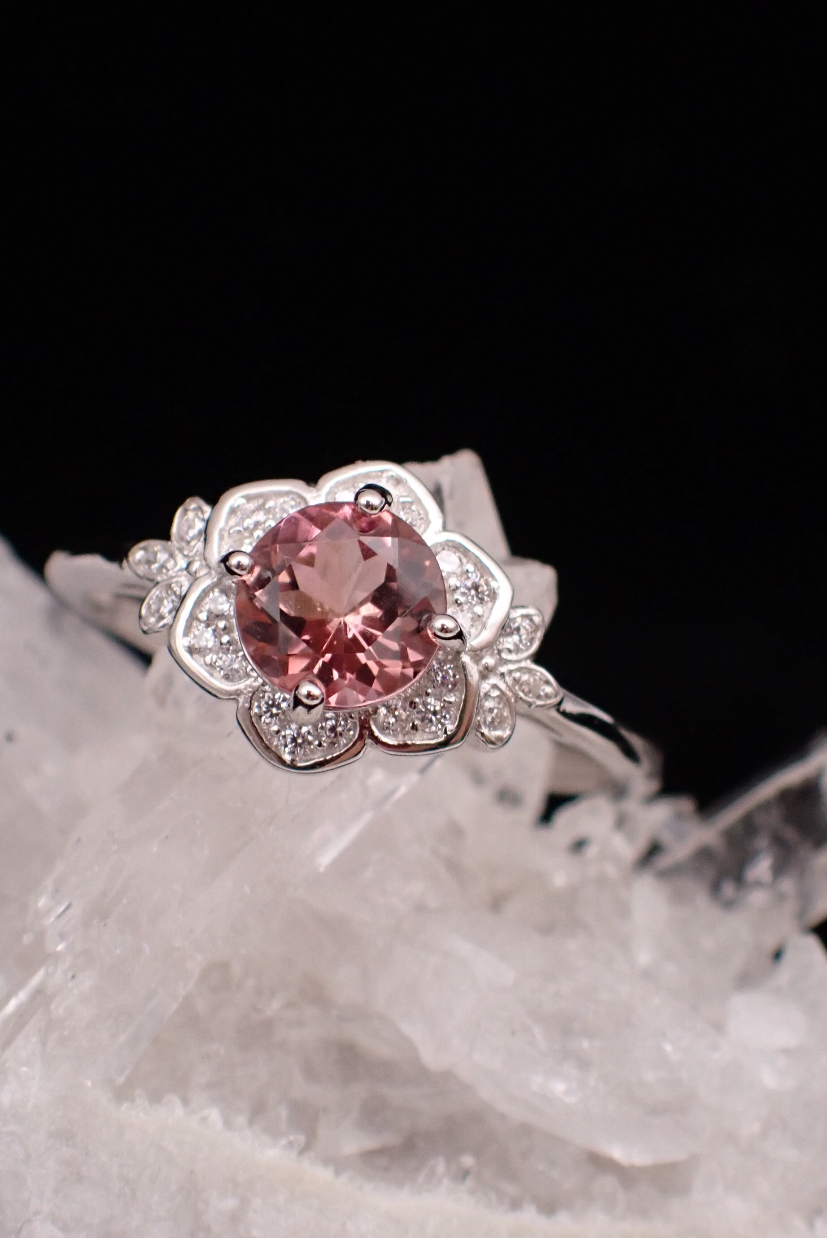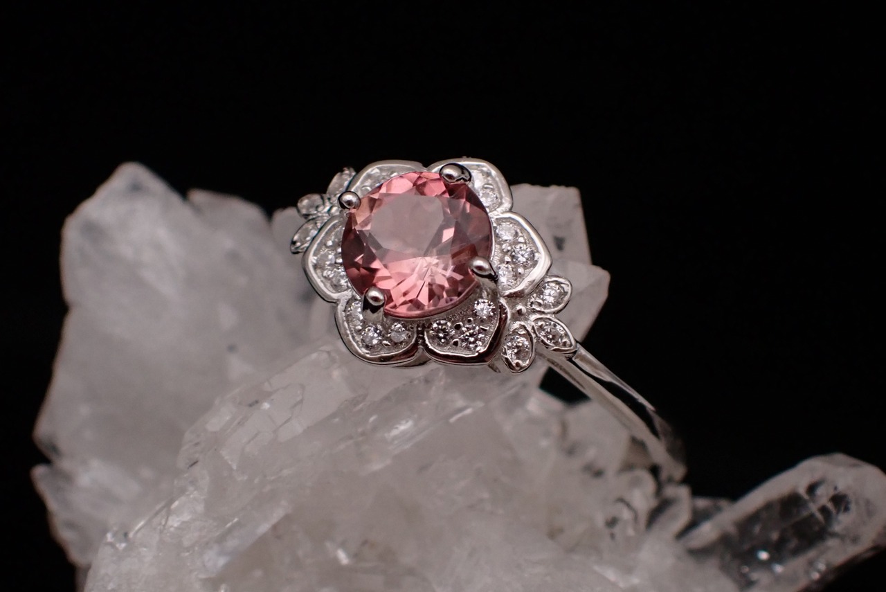 桔梗の花びらの中央に咲き誇る美しいピンクトルマリン。