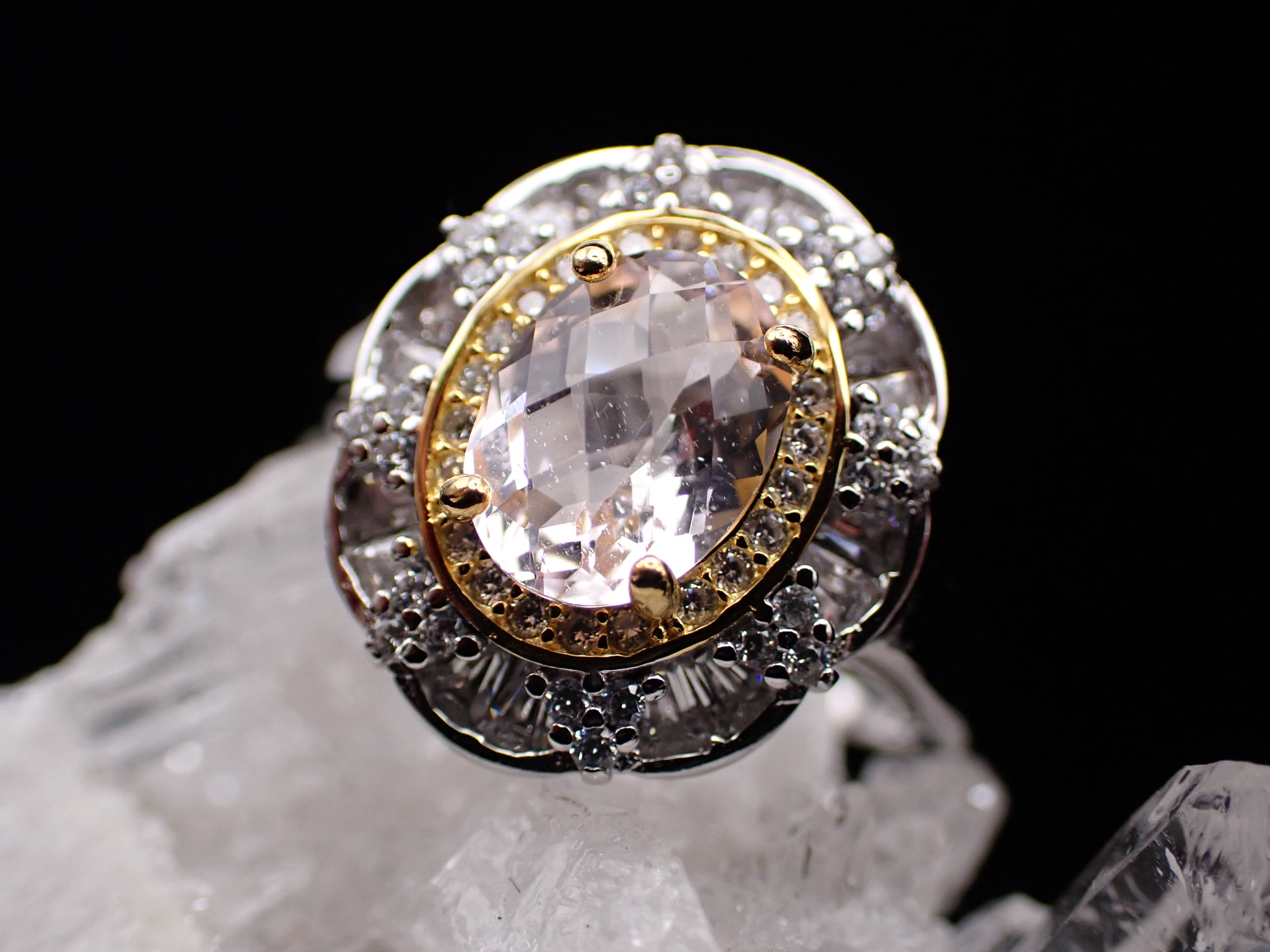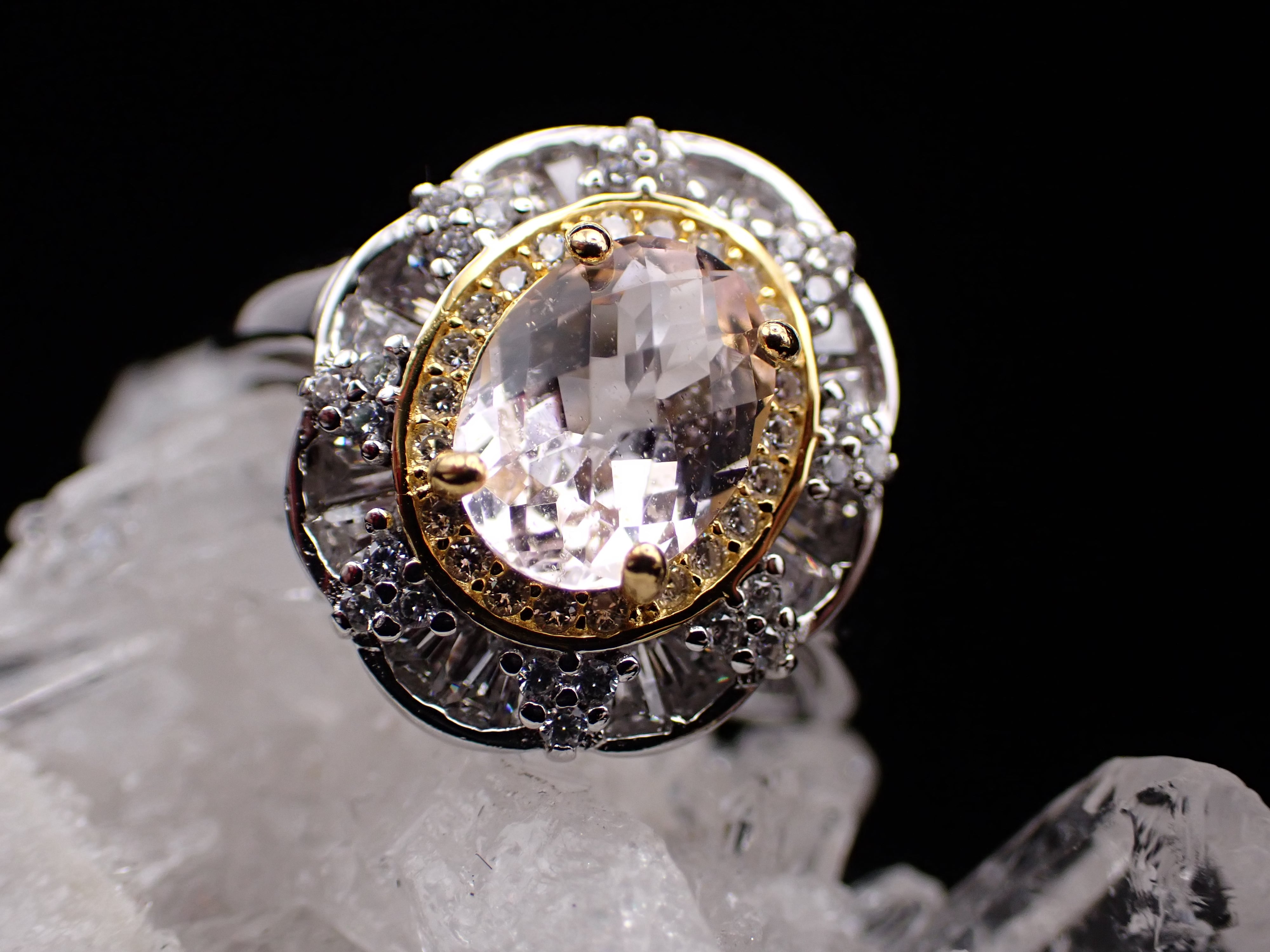取り巻きのジルコニアたちがキラキラと輝き、モルガナイトの美しい輝きを引き立てます。