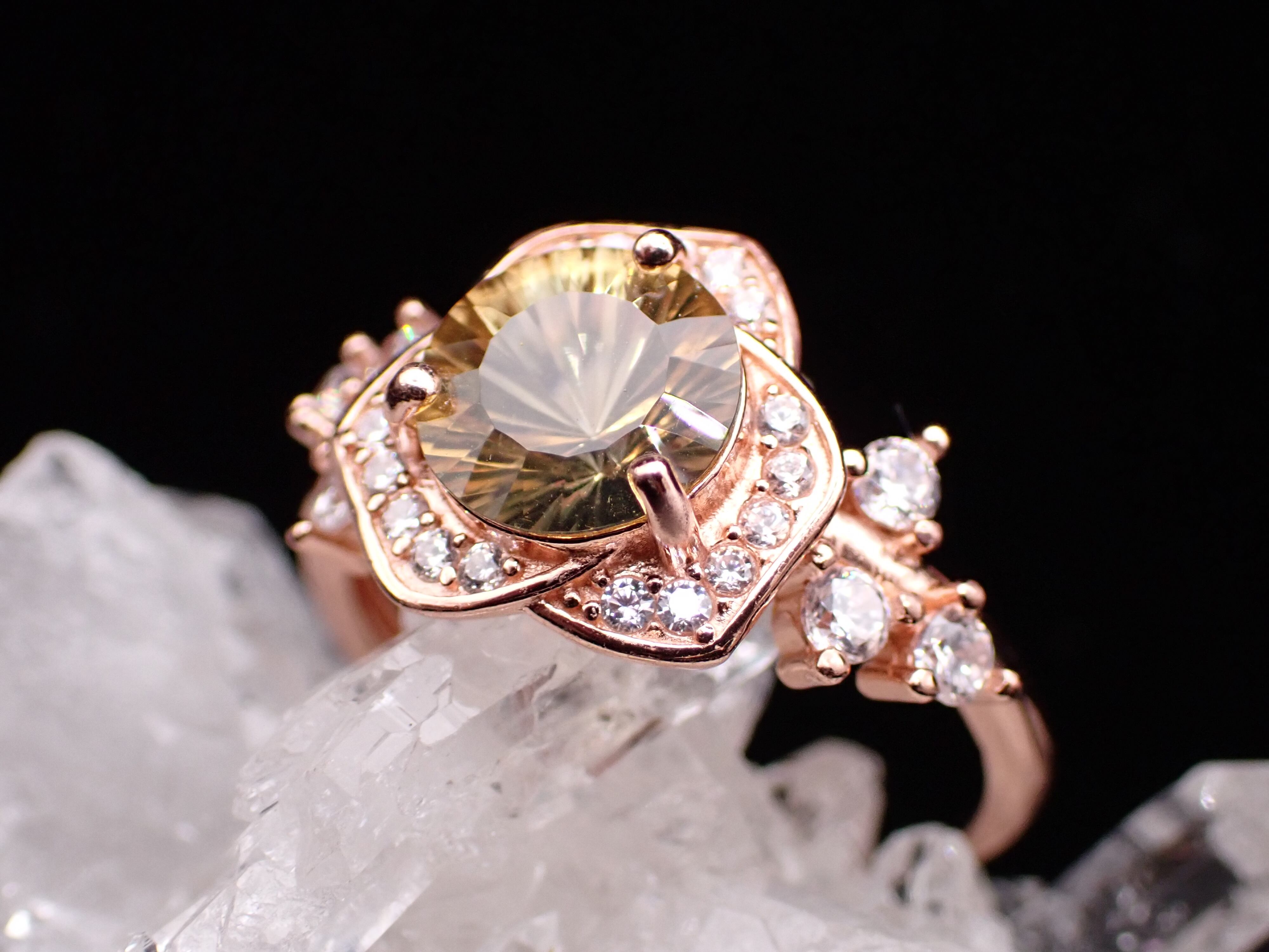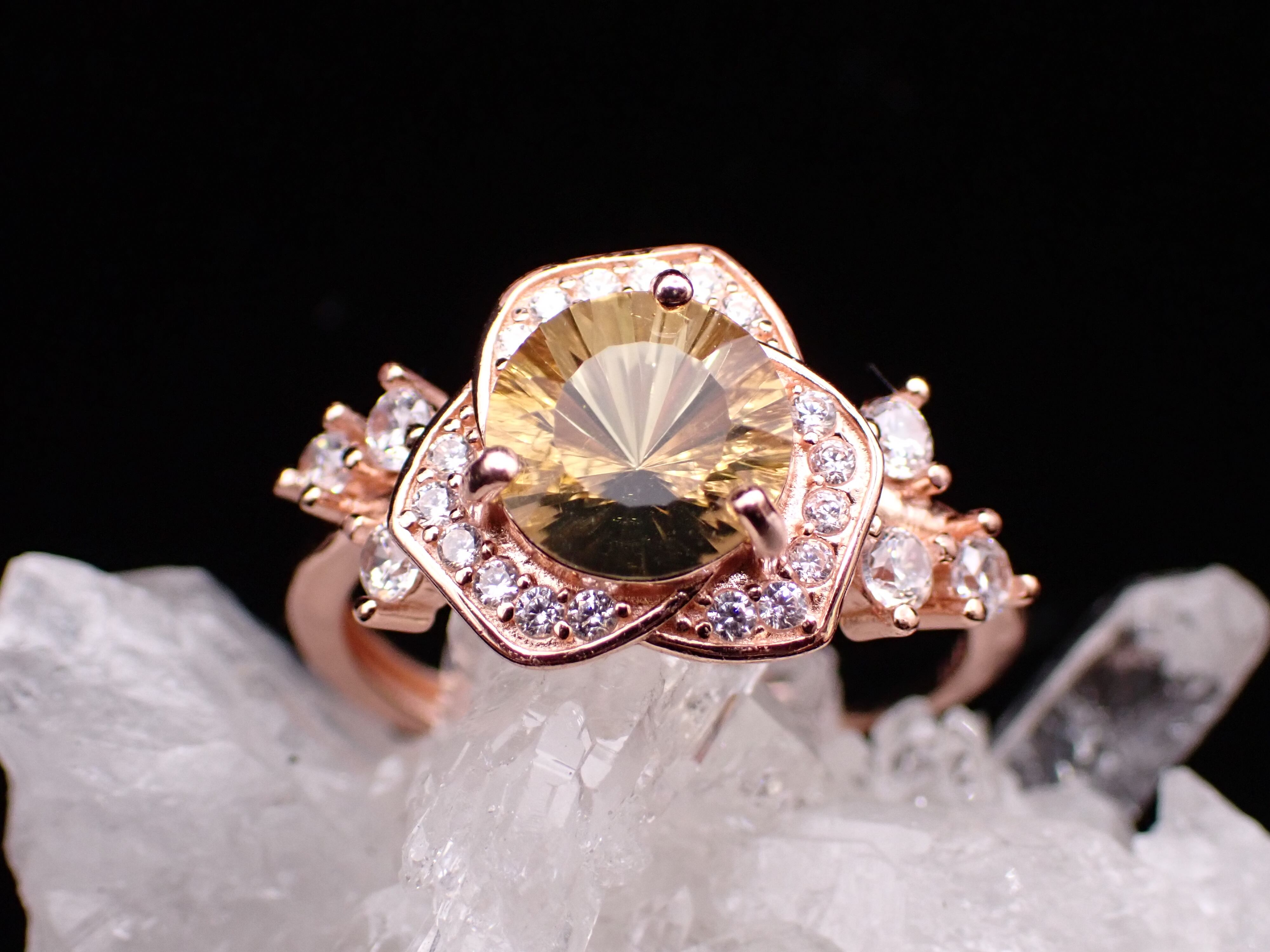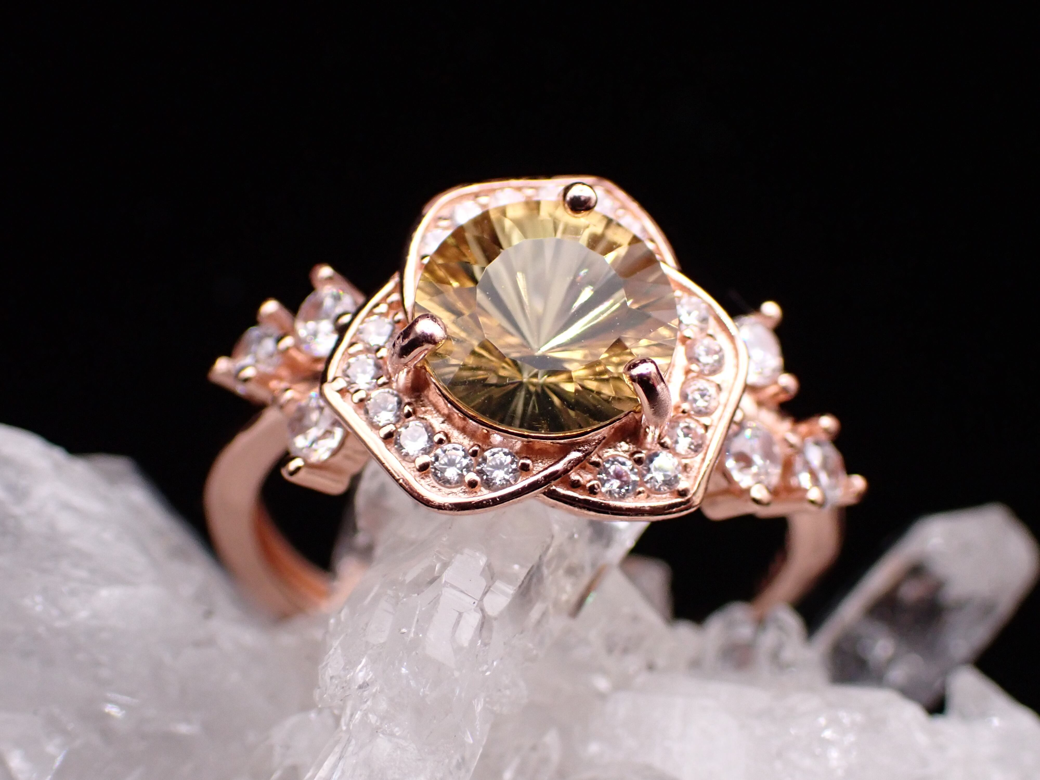 美しいジルコニアの中に8mmの大きなコンケーブカットのレモンクォーツが豪華に輝きます。