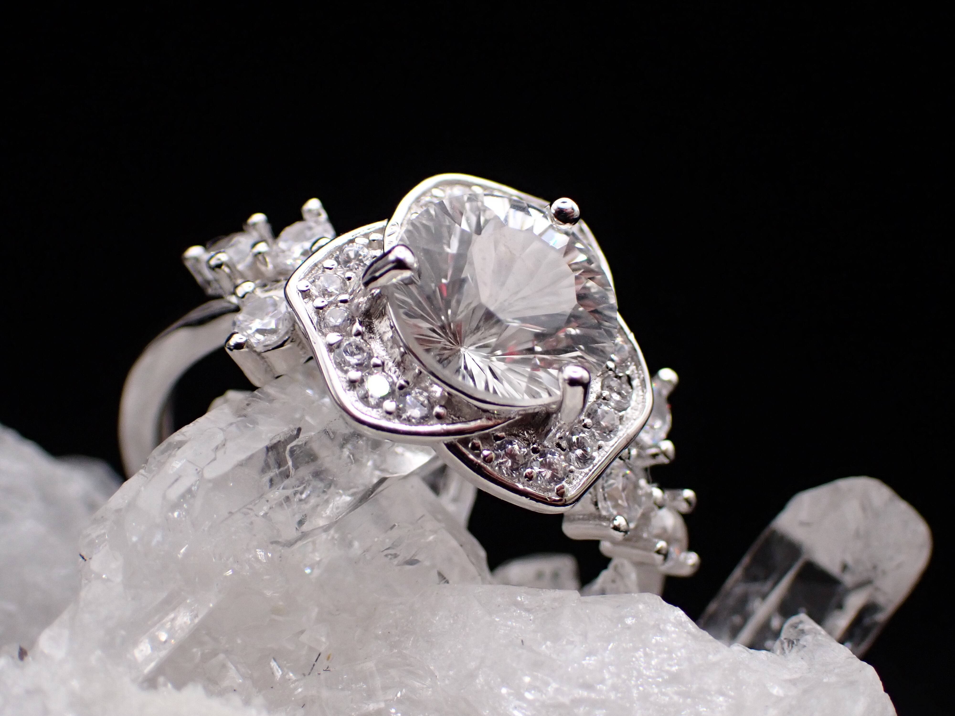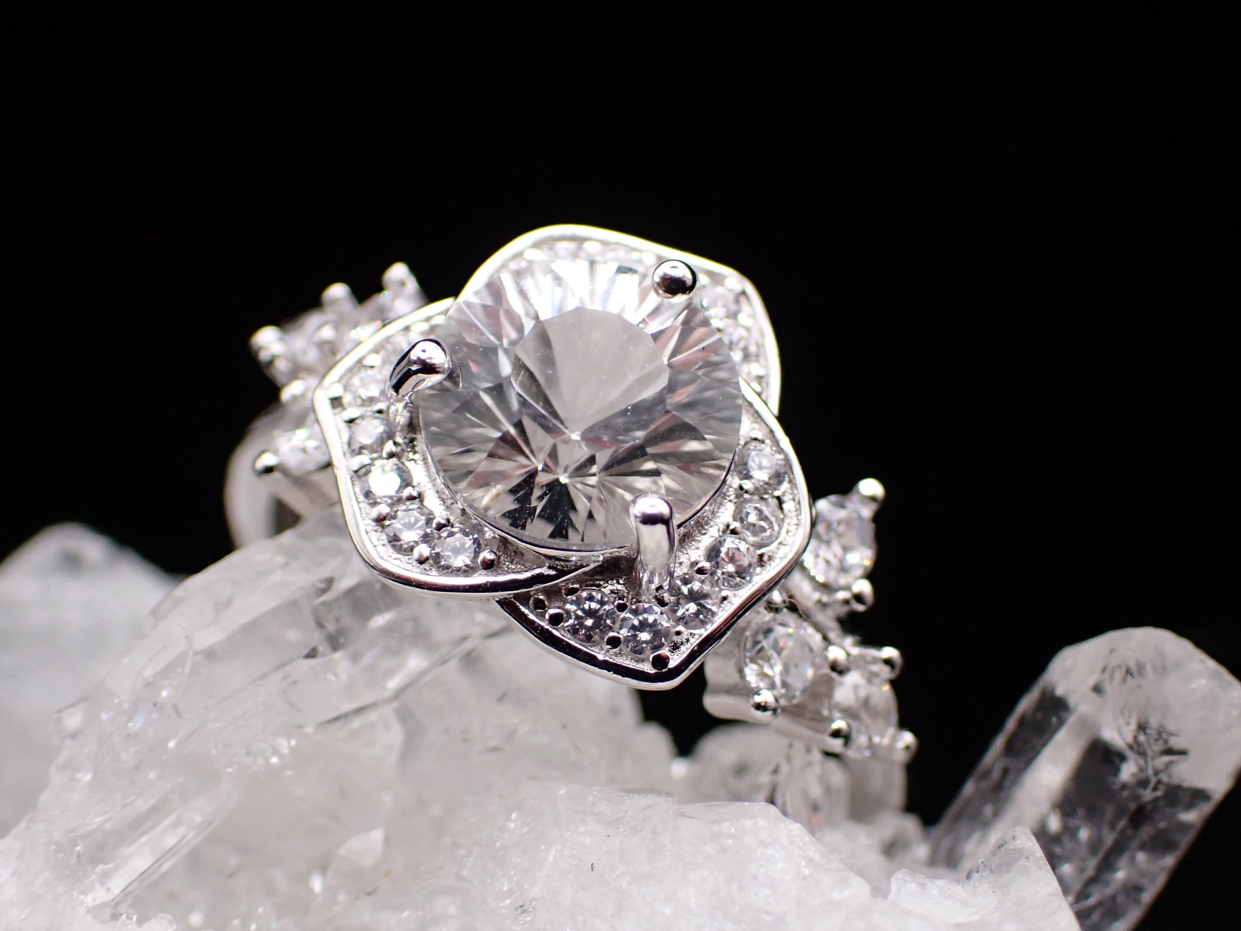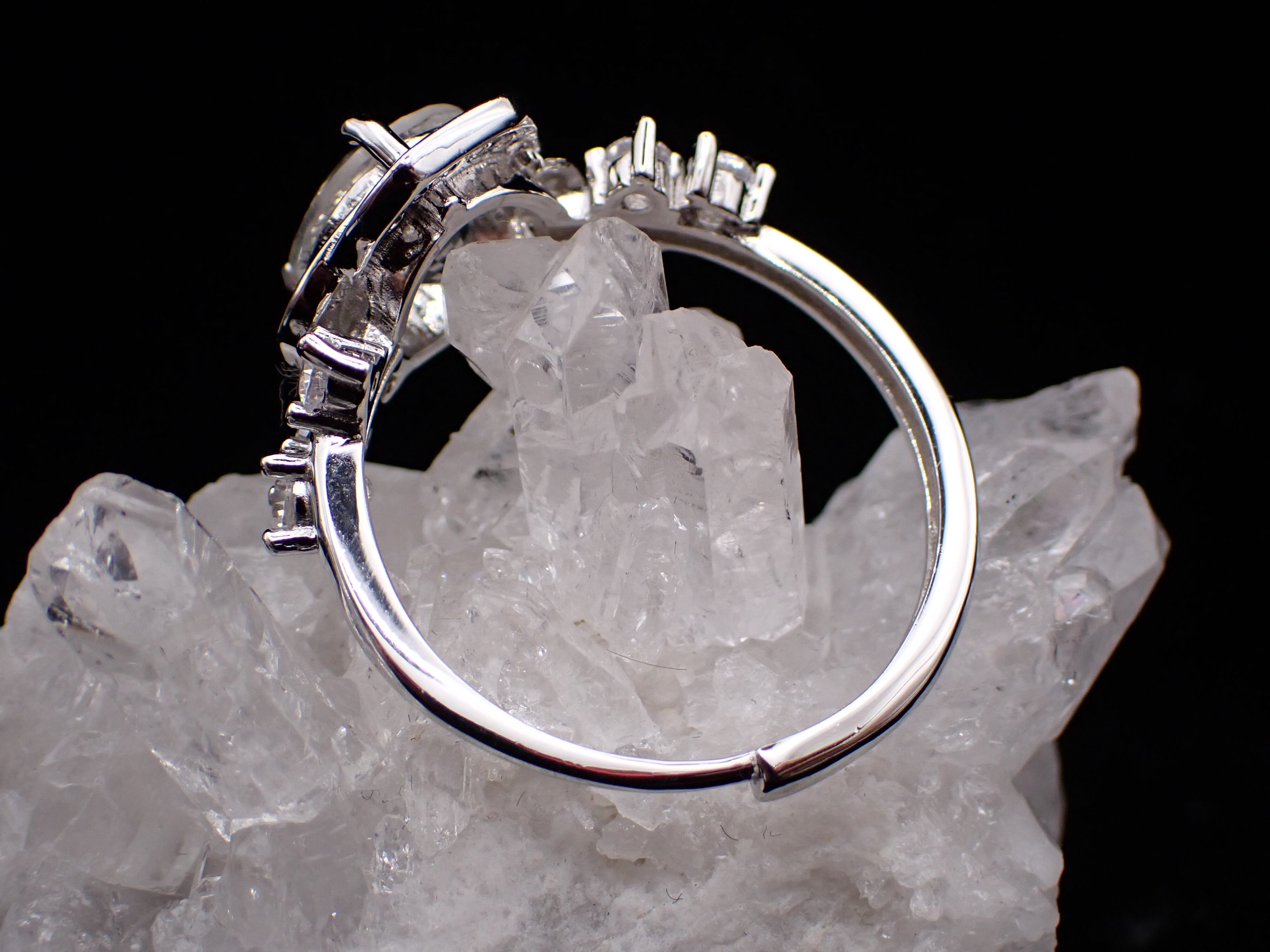 美しいジルコニアの中に8mmの大きなコンケーブカットのホワイトトパーズが豪華に輝きます。