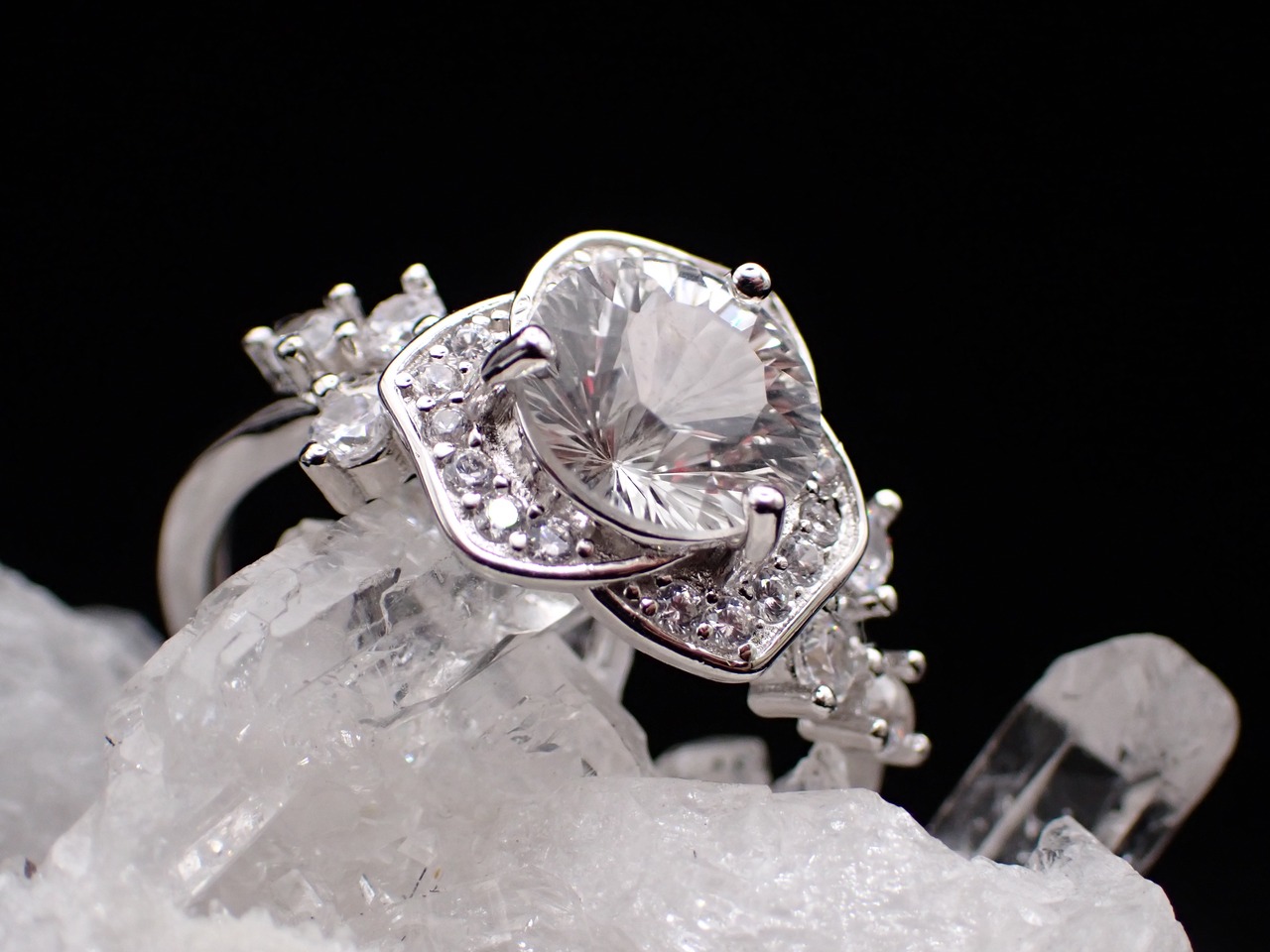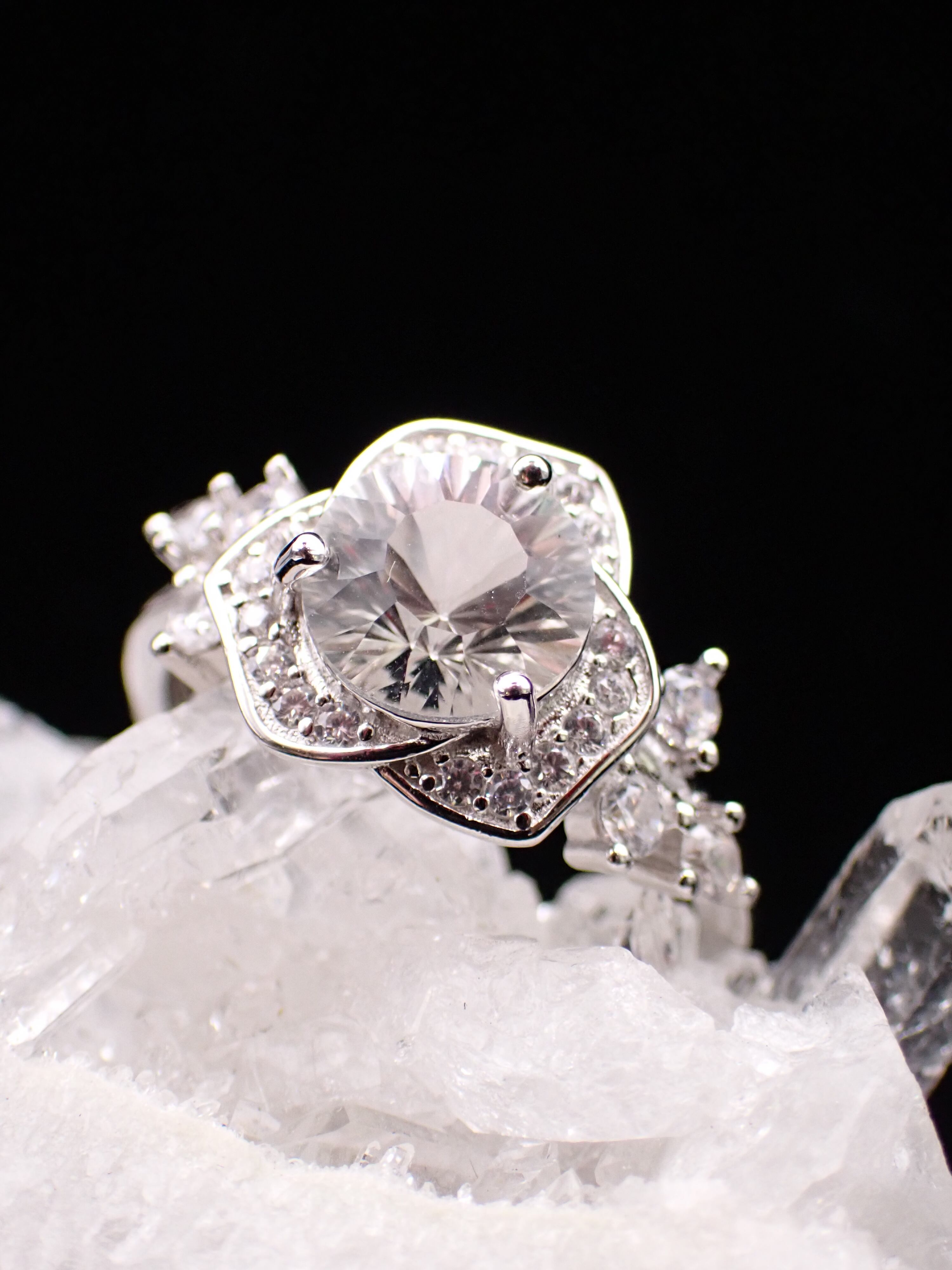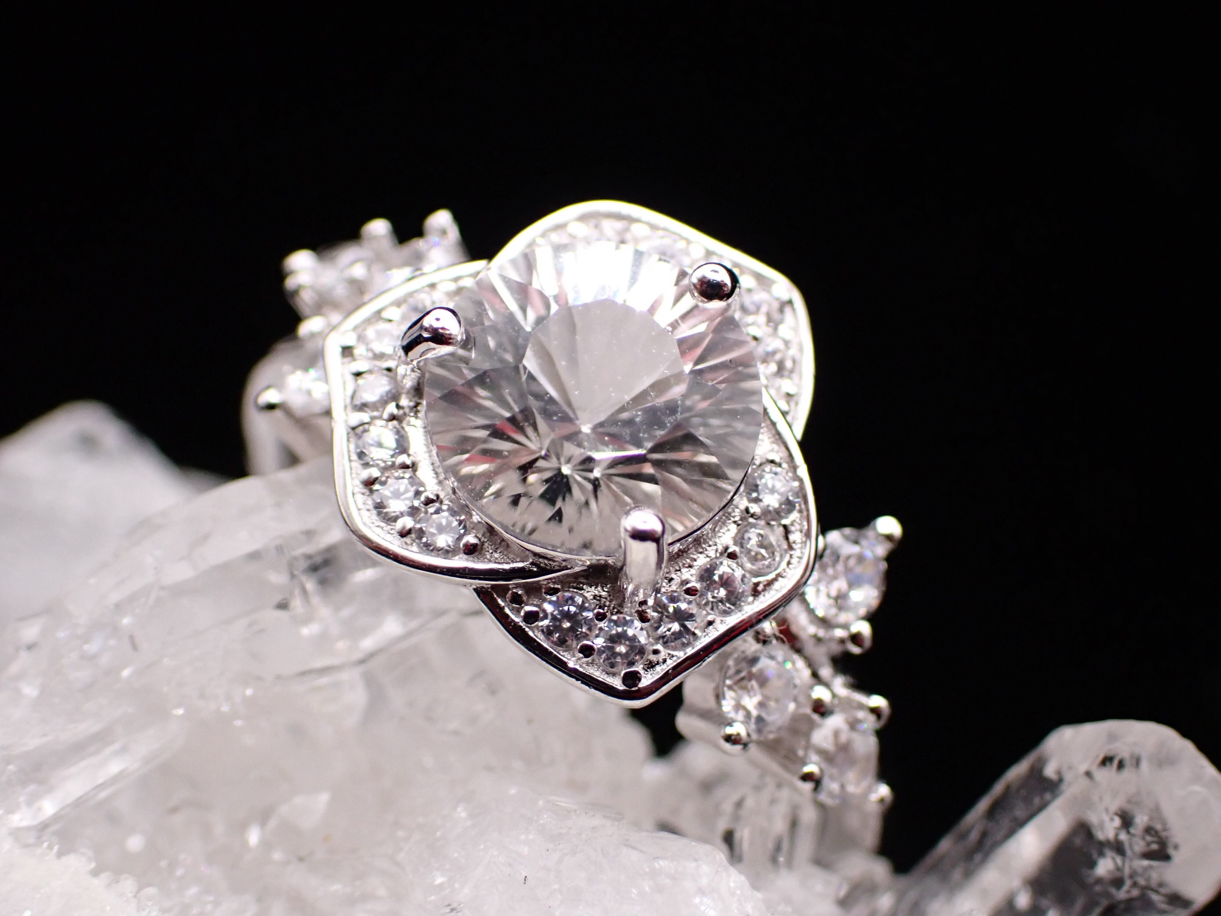 美しいジルコニアの中に8mmの大きなコンケーブカットのホワイトトパーズが豪華に輝きます。