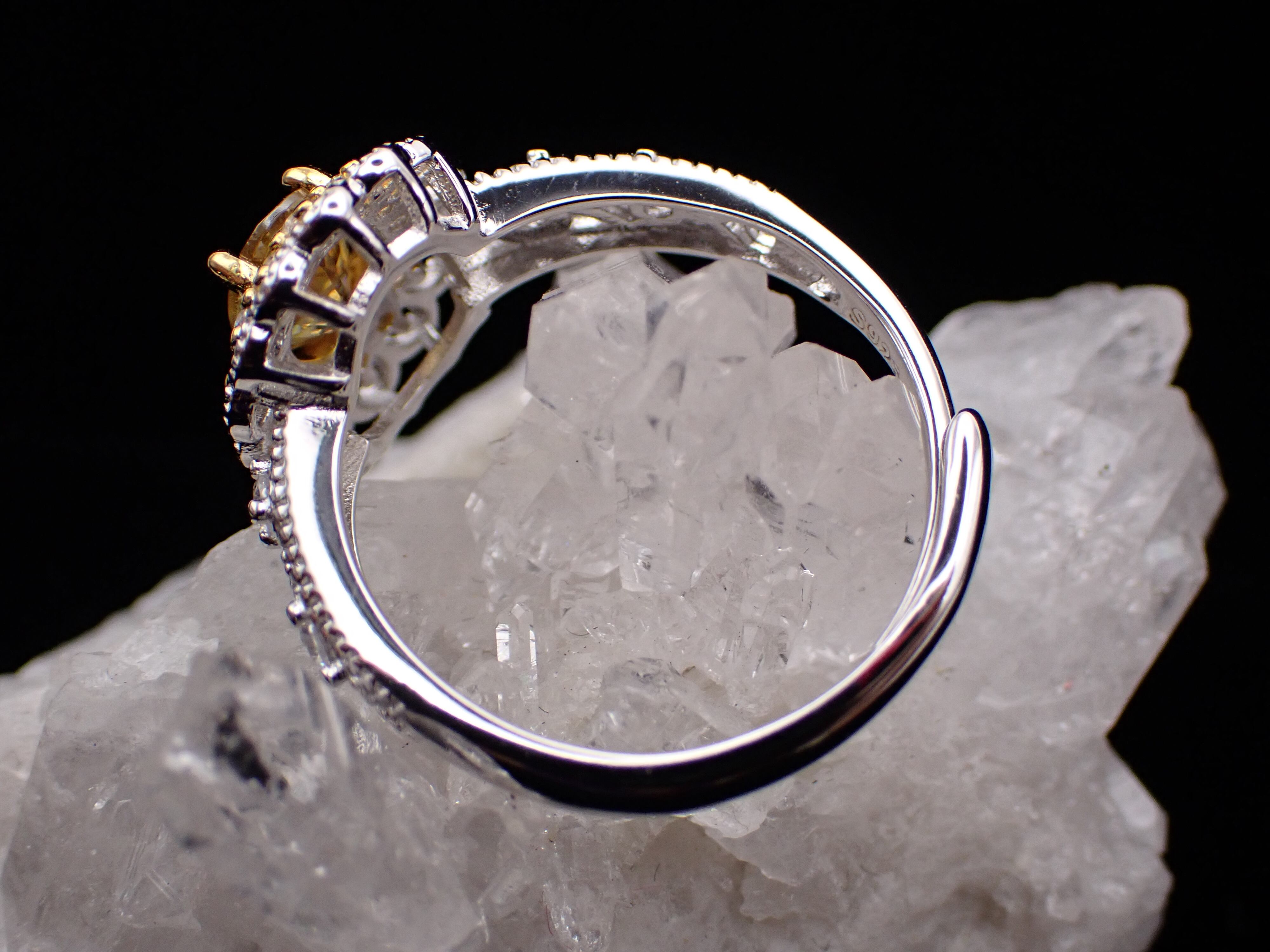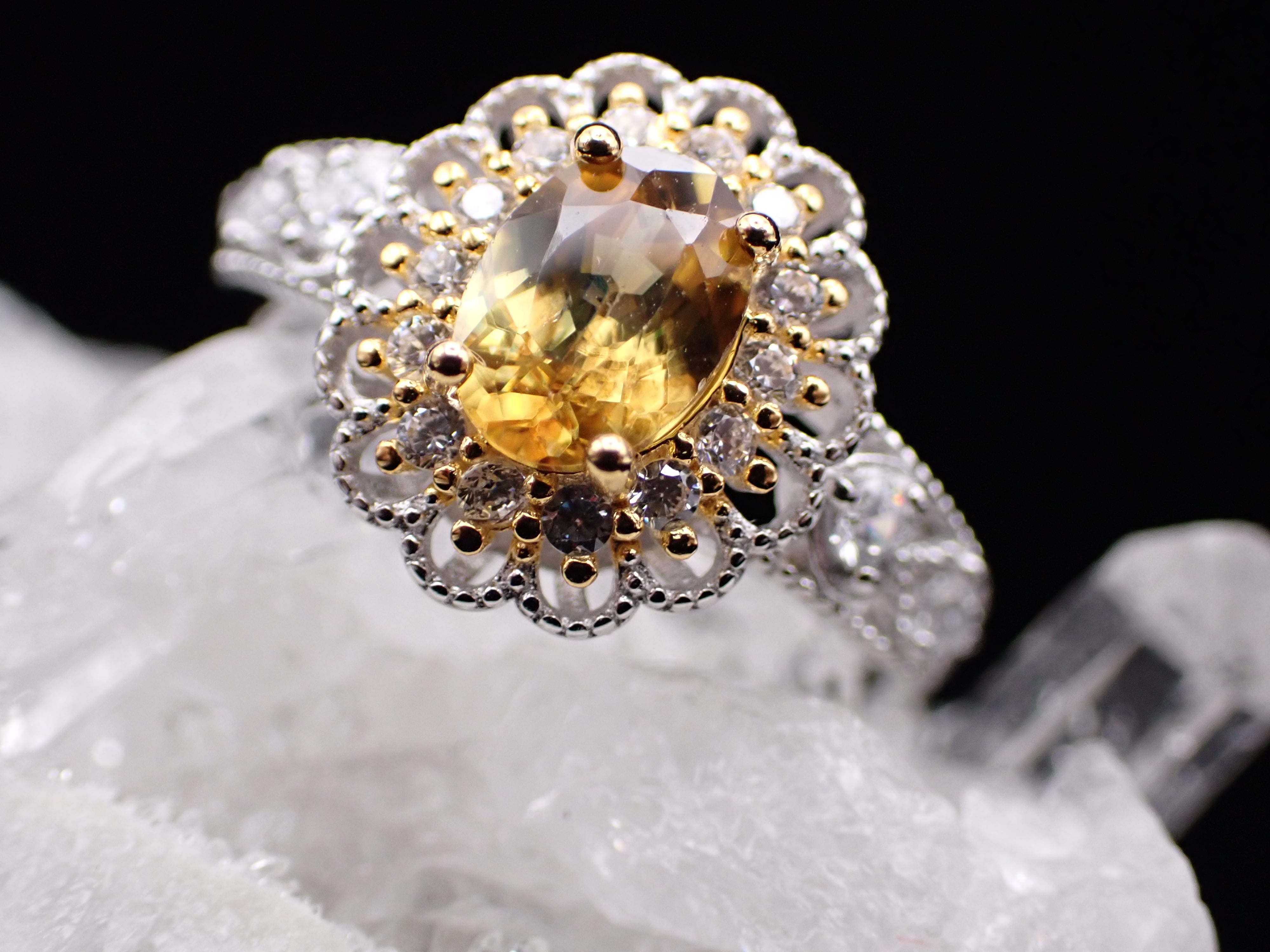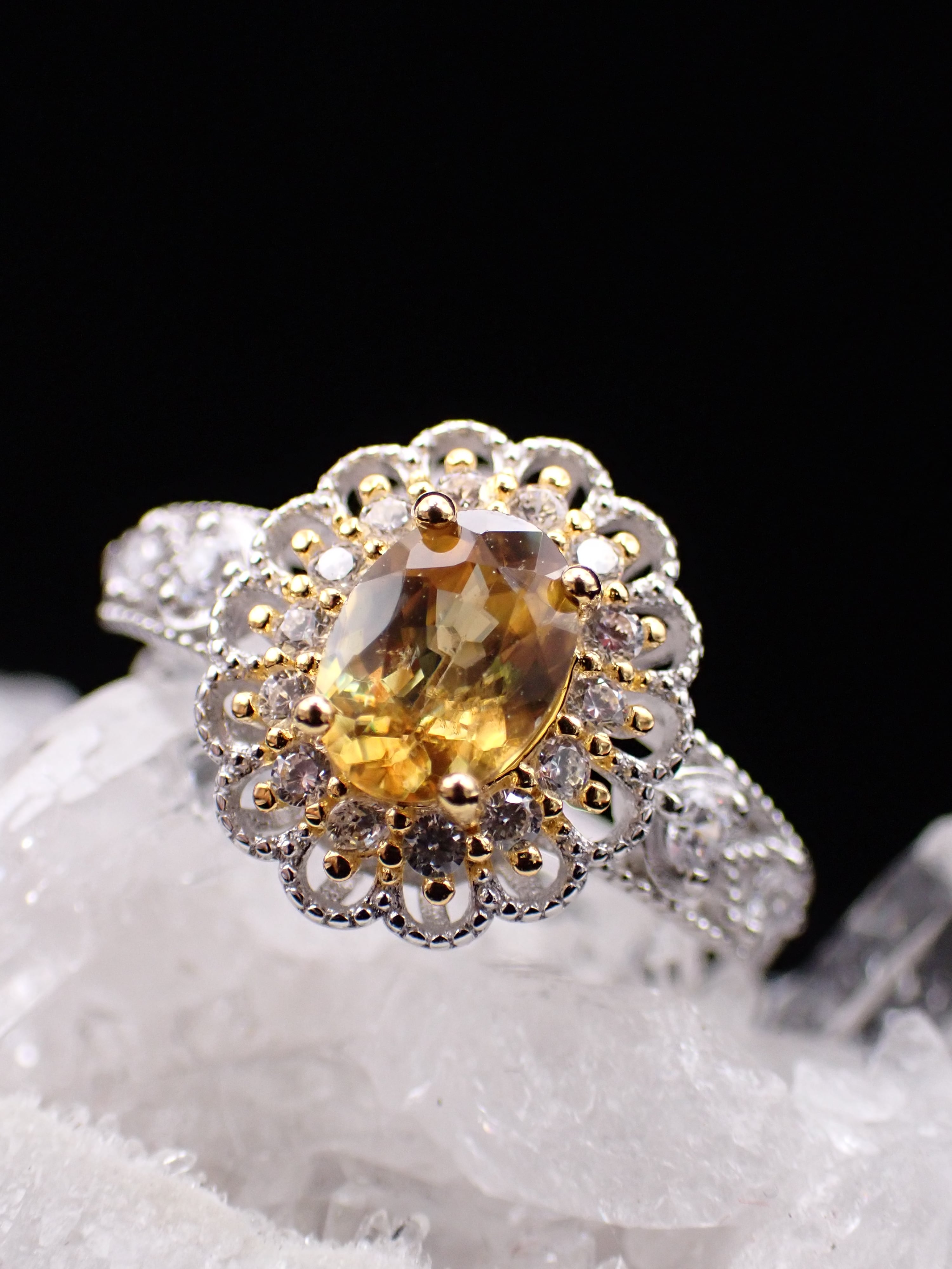 可愛らしく花開くジルコニアたちがキラキラと輝き、スフェーンの輝きを引き立てます。