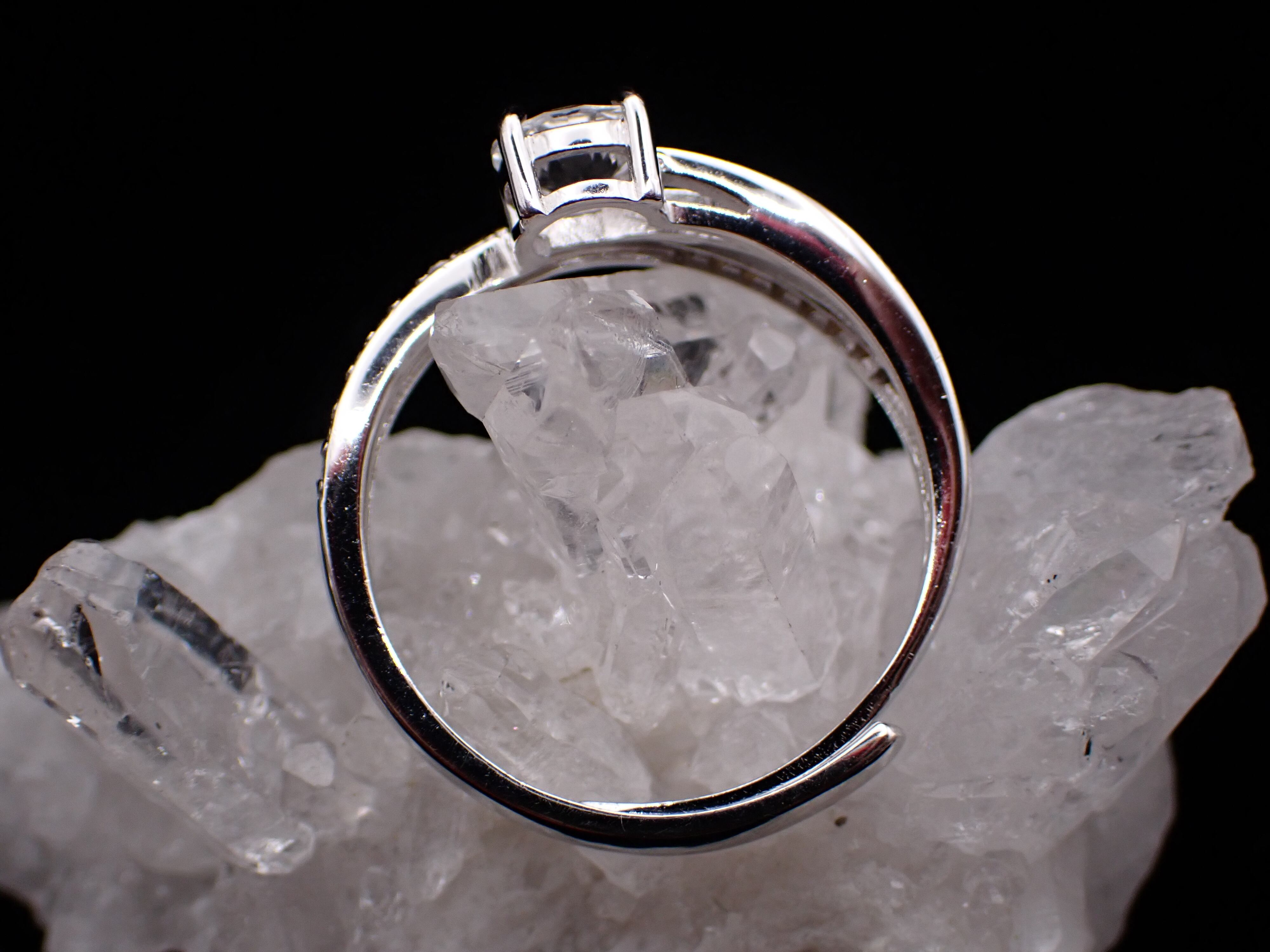 しっかりと輝きを楽しめる美しいコンケーブカットの入ったホワイトトパーズで、一つで主役になれる豪華なリングです。