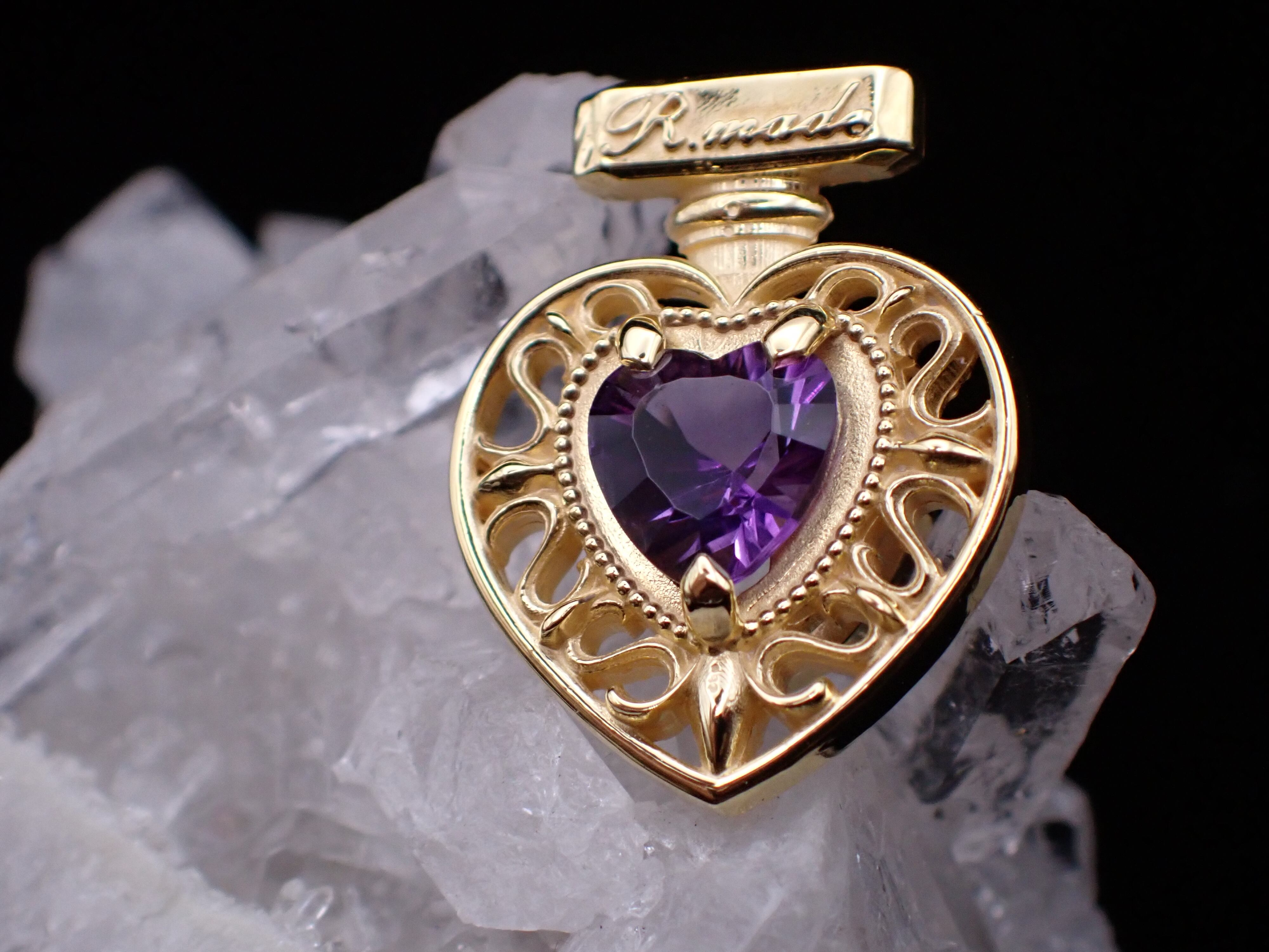 【 R.nouveau 】Heart香水瓶 コンケーブアメジスト ペンダントYG