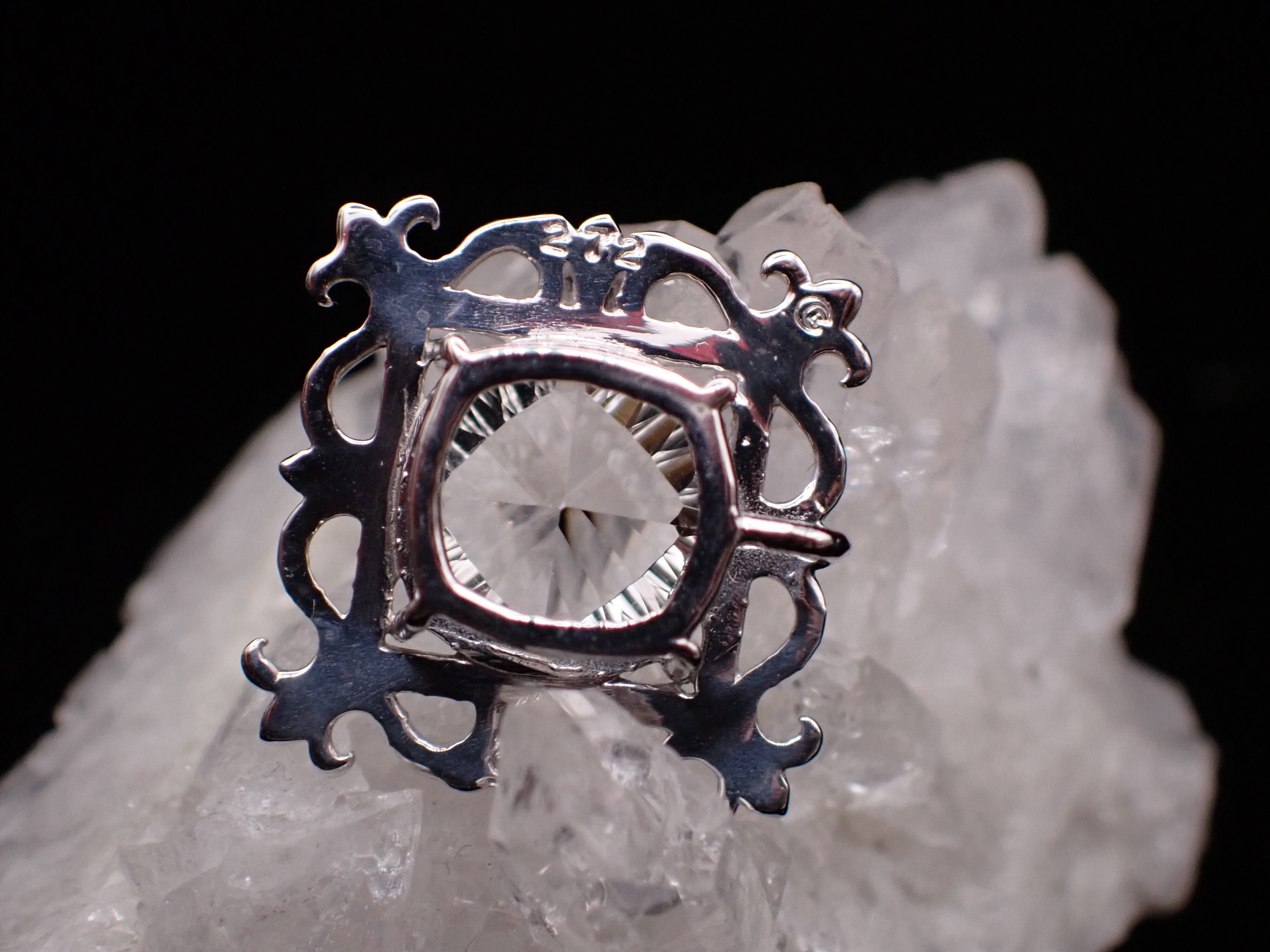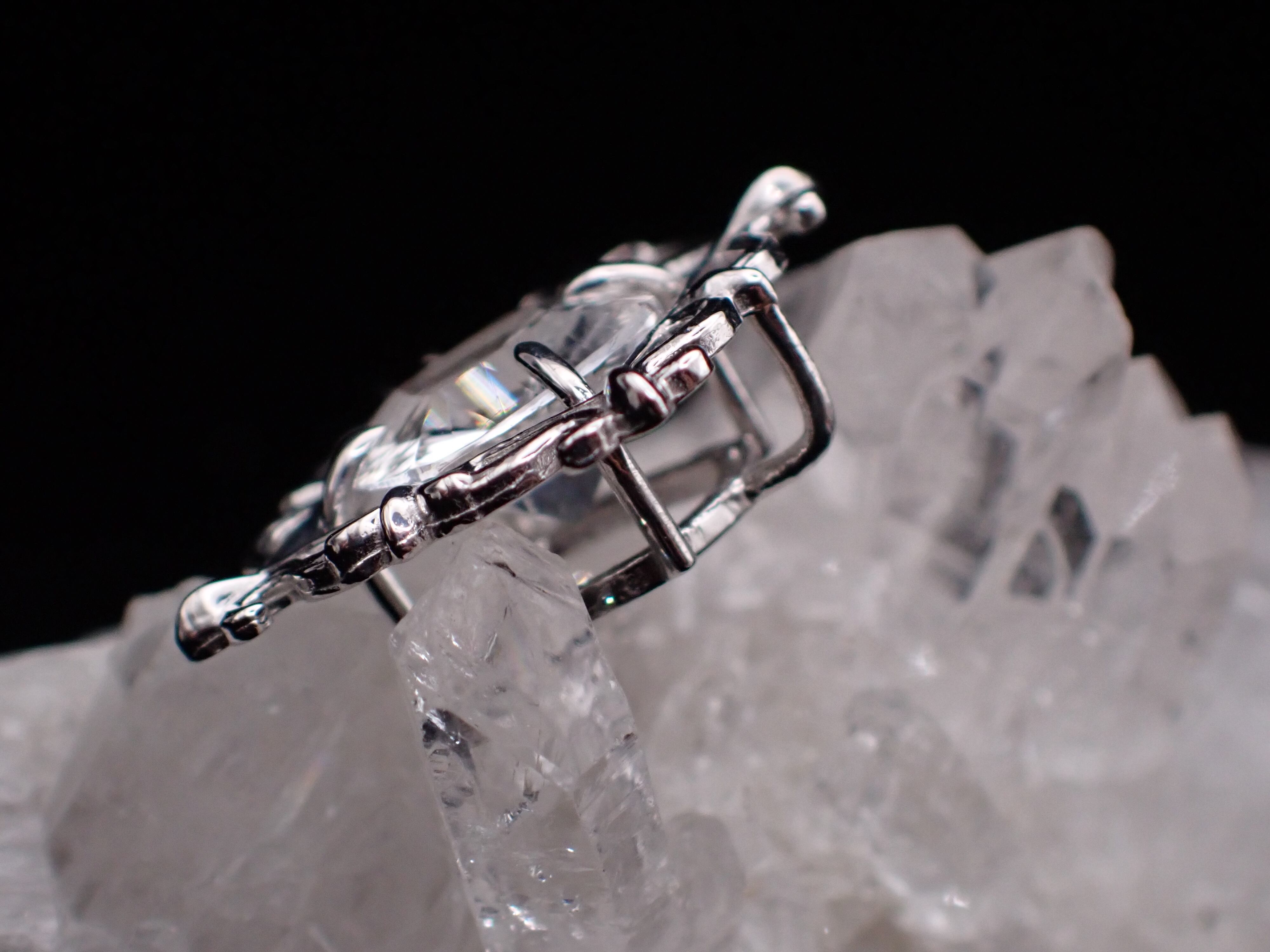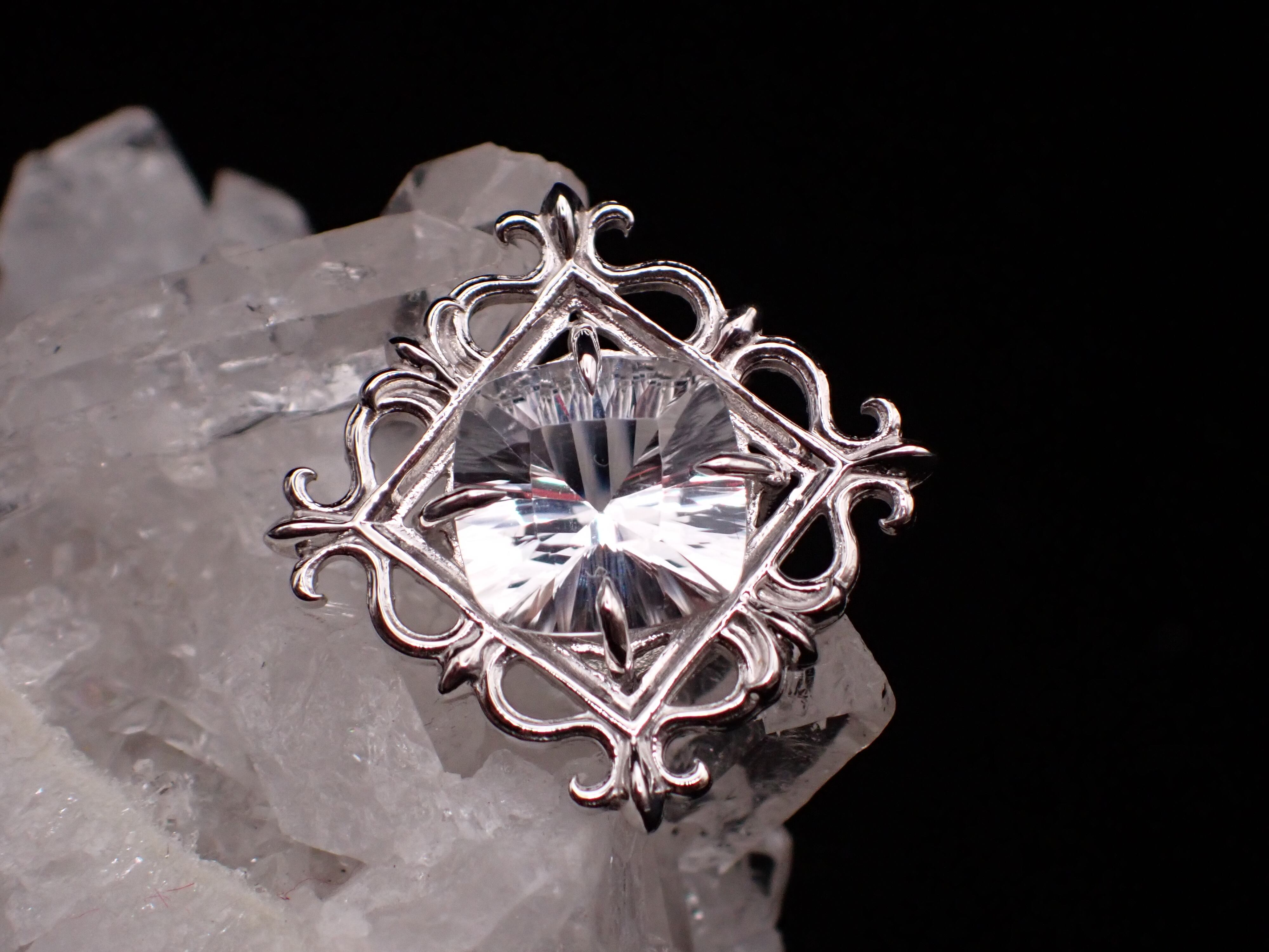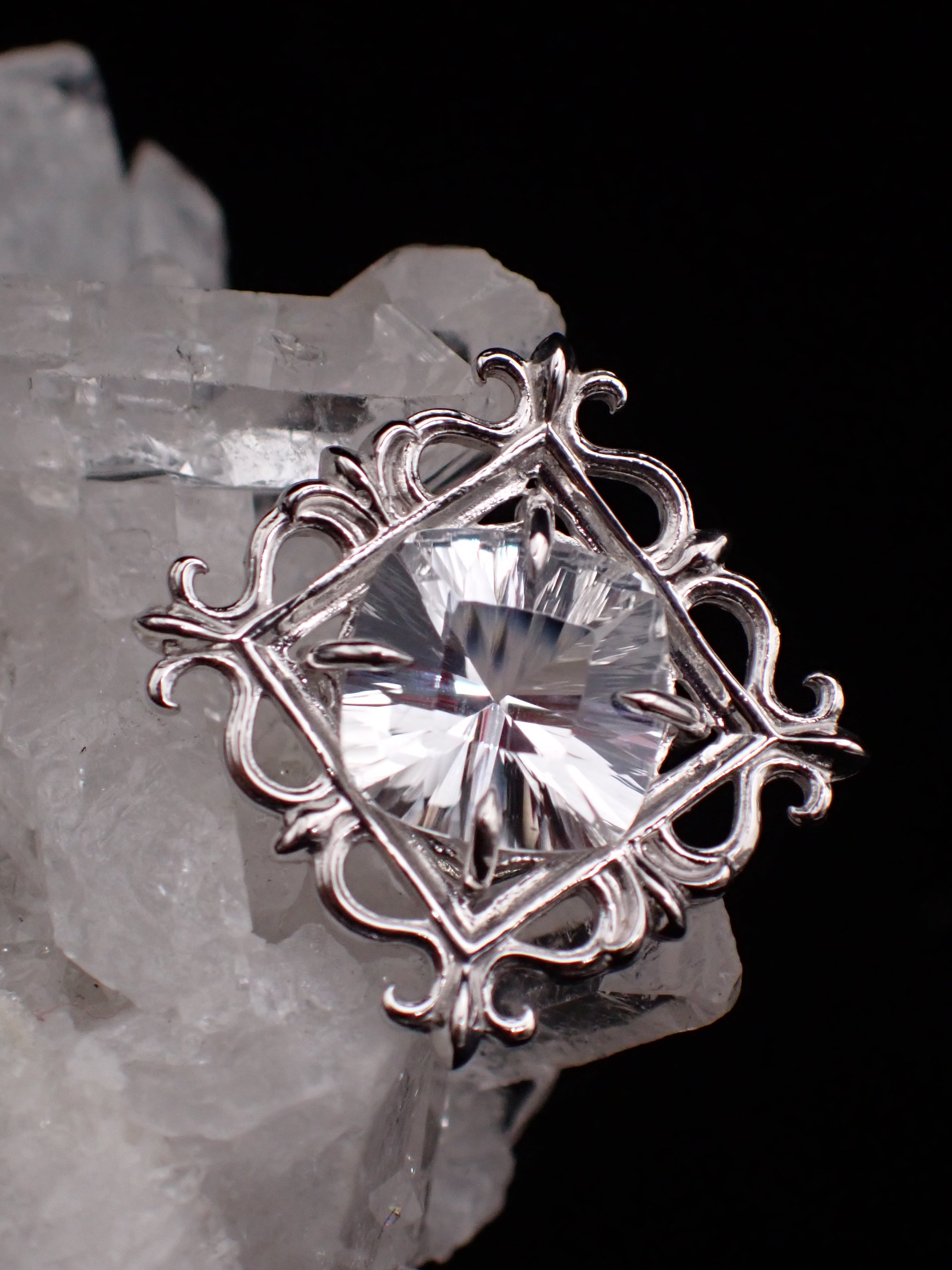 まるで石を絵画のように、美しい額縁の中へ、コンケーブカットのホワイトトパーズを納めました。