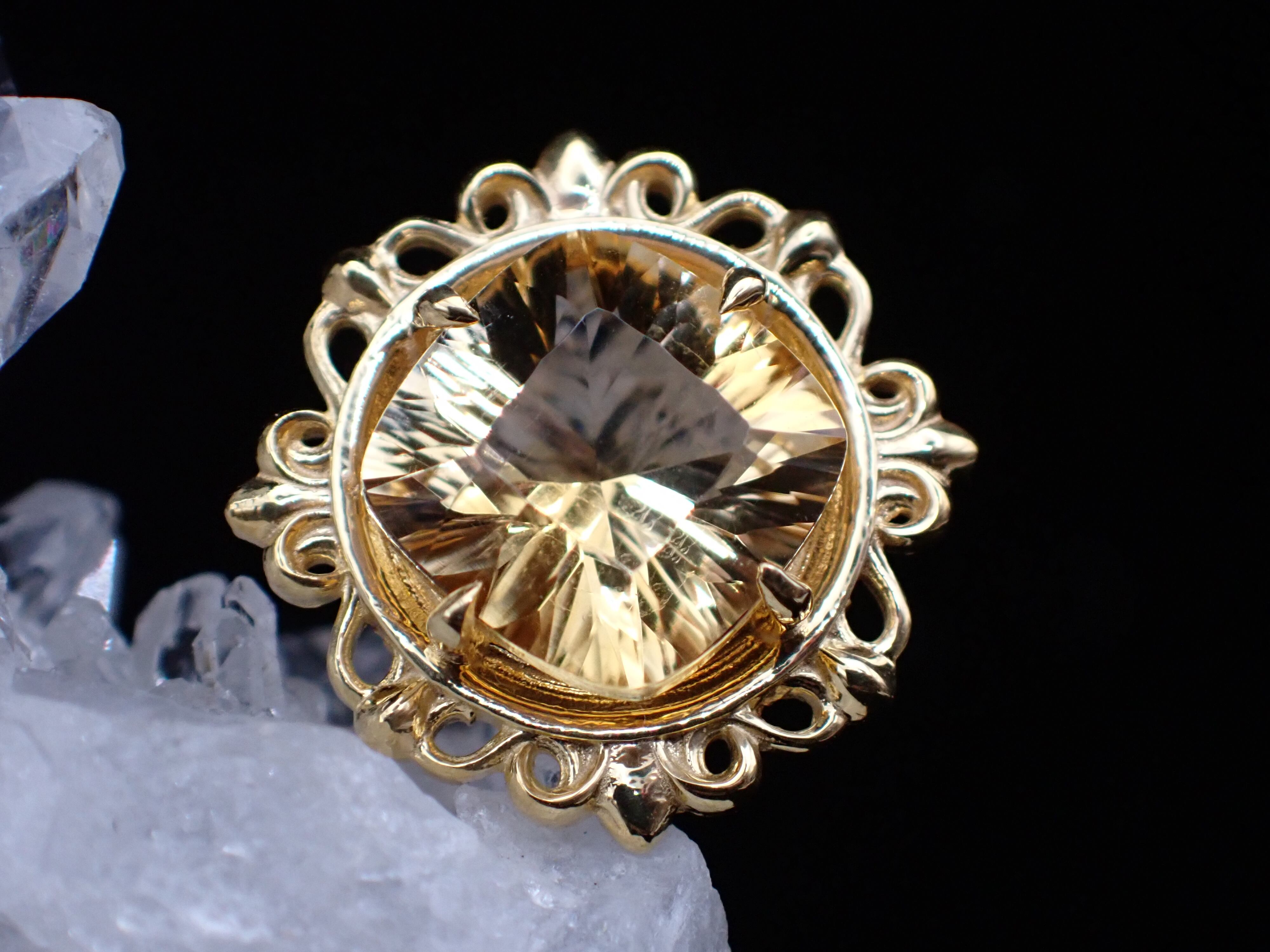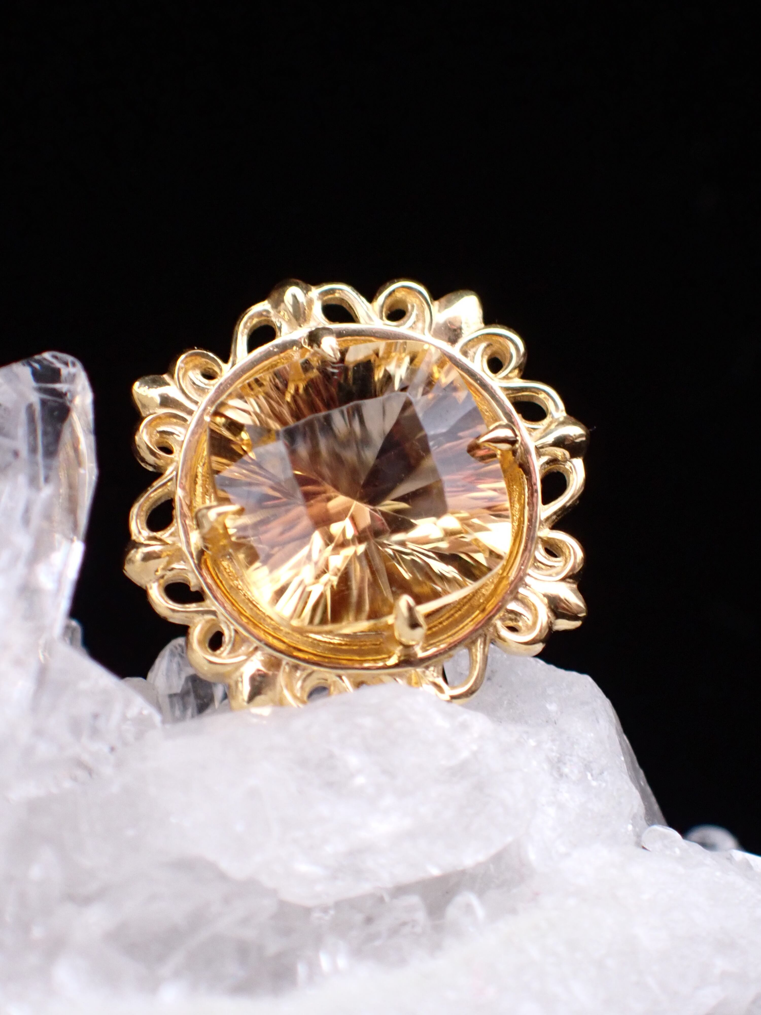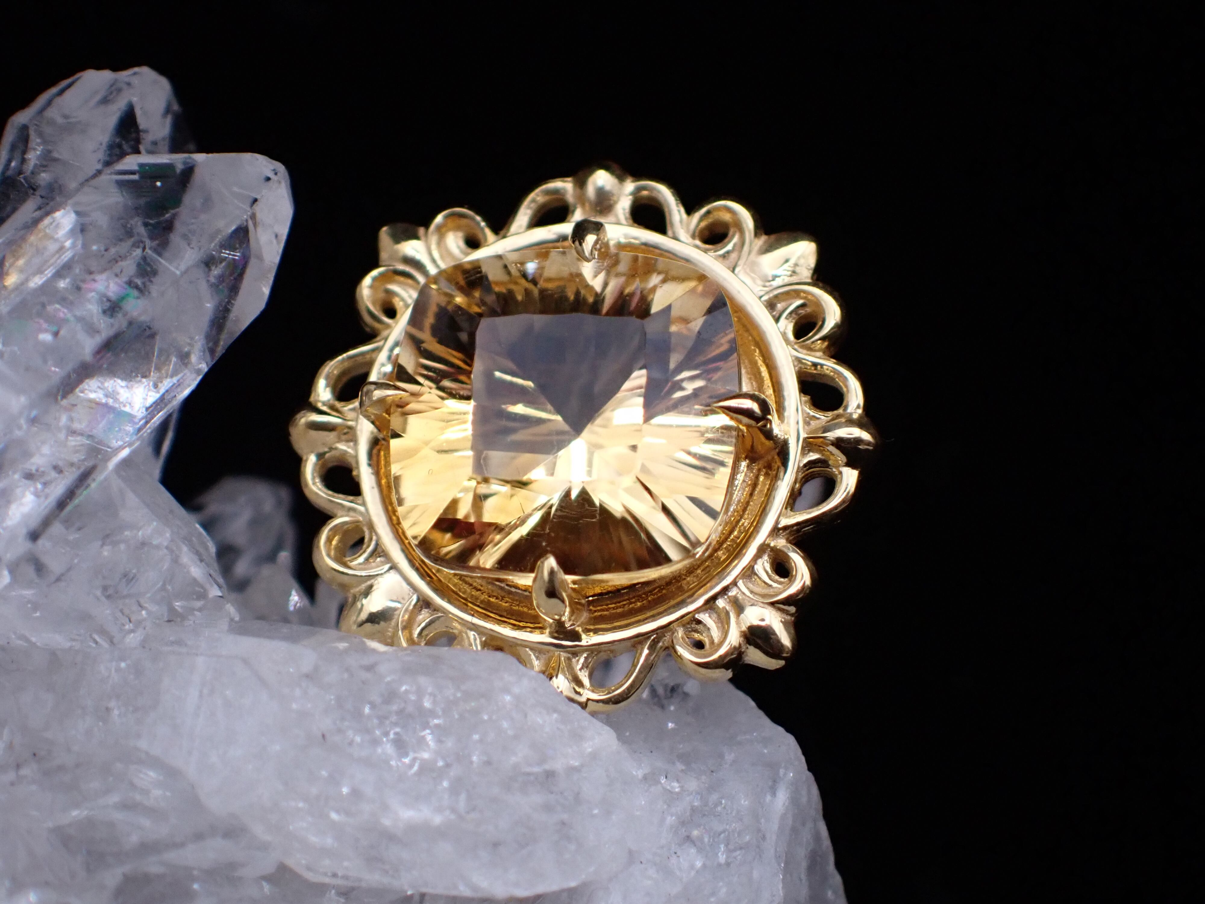 まるで石を絵画のように、美しい額縁の中へ、コンケーブカットのシトリンを納めました。