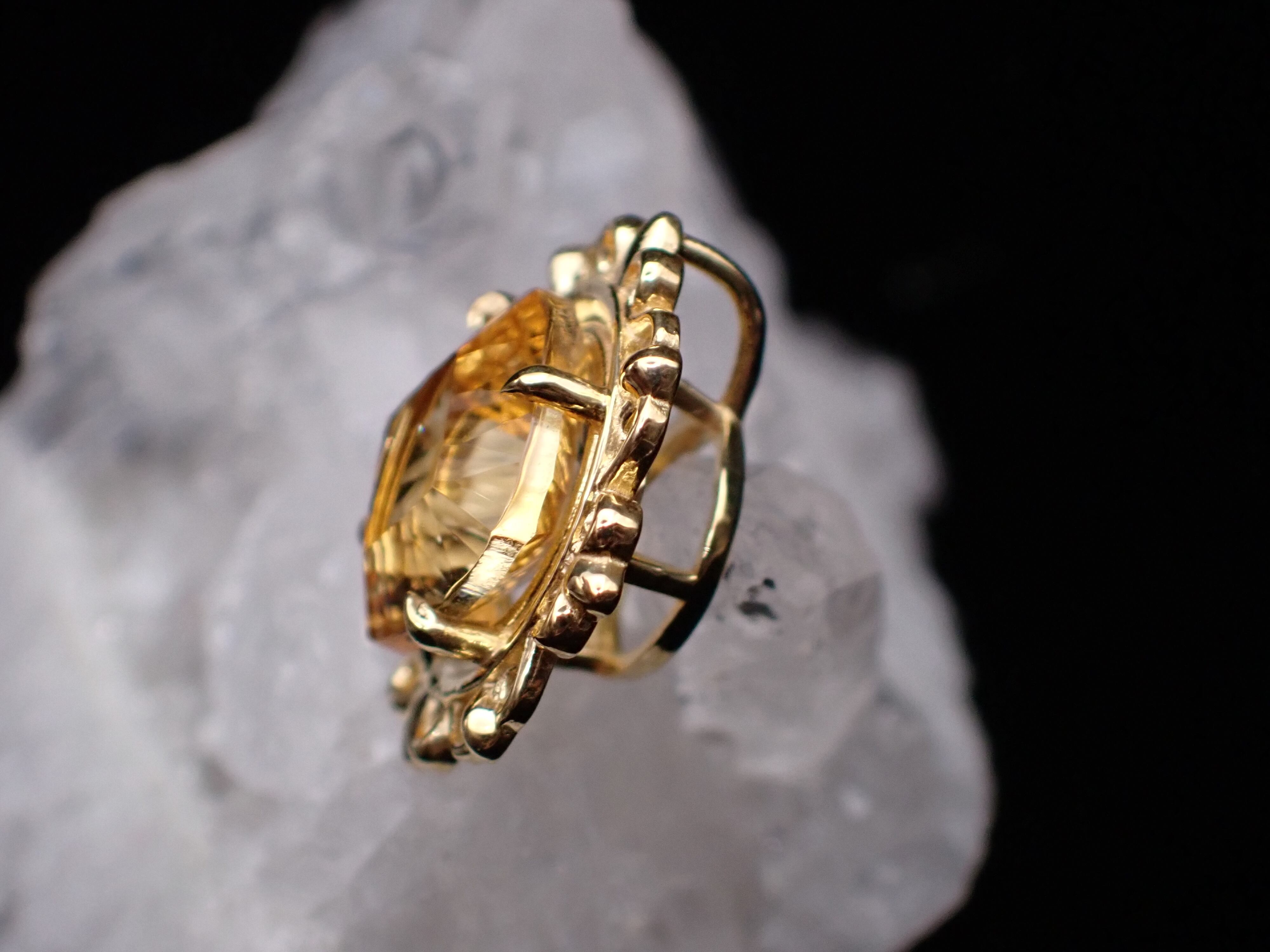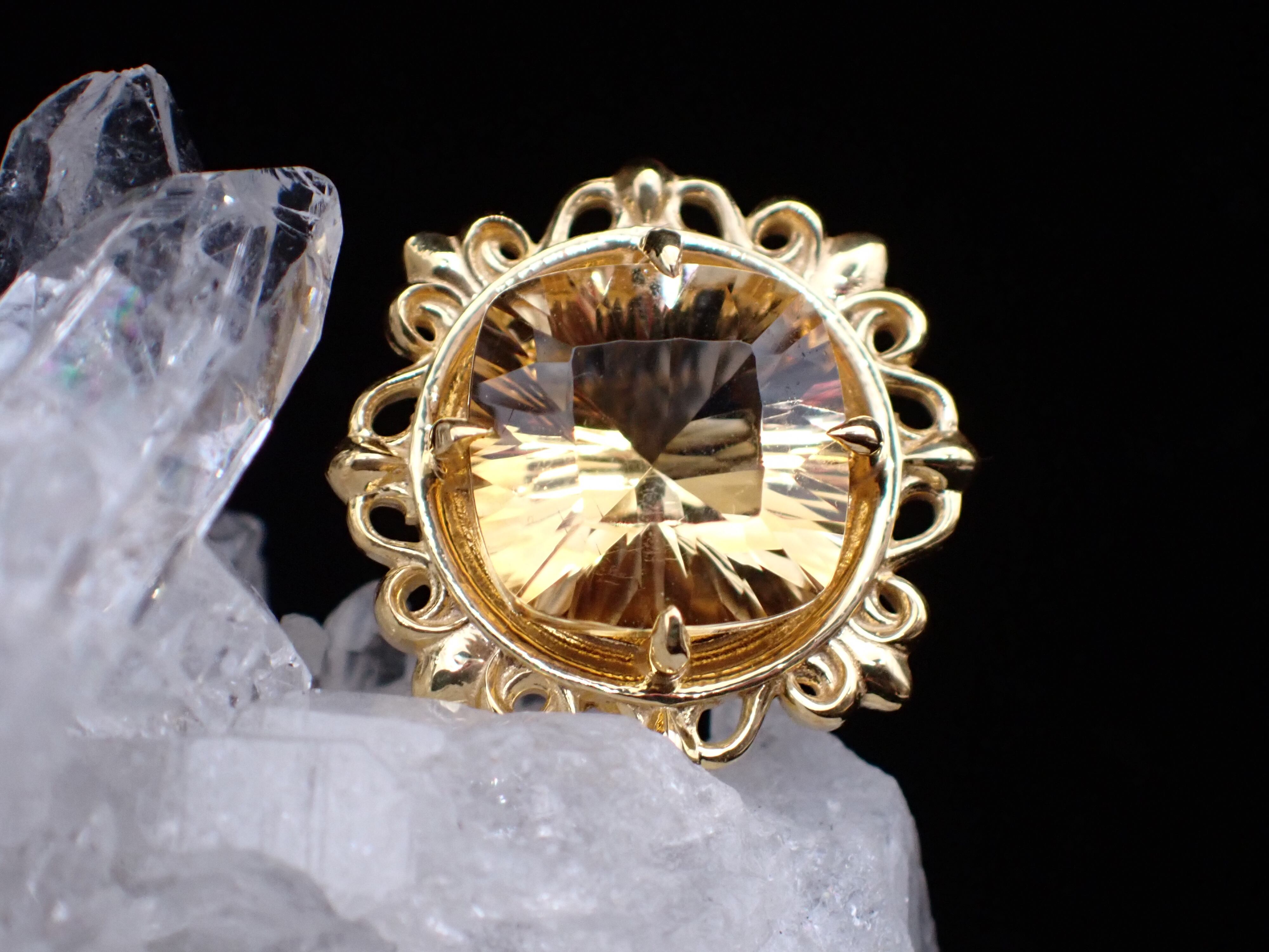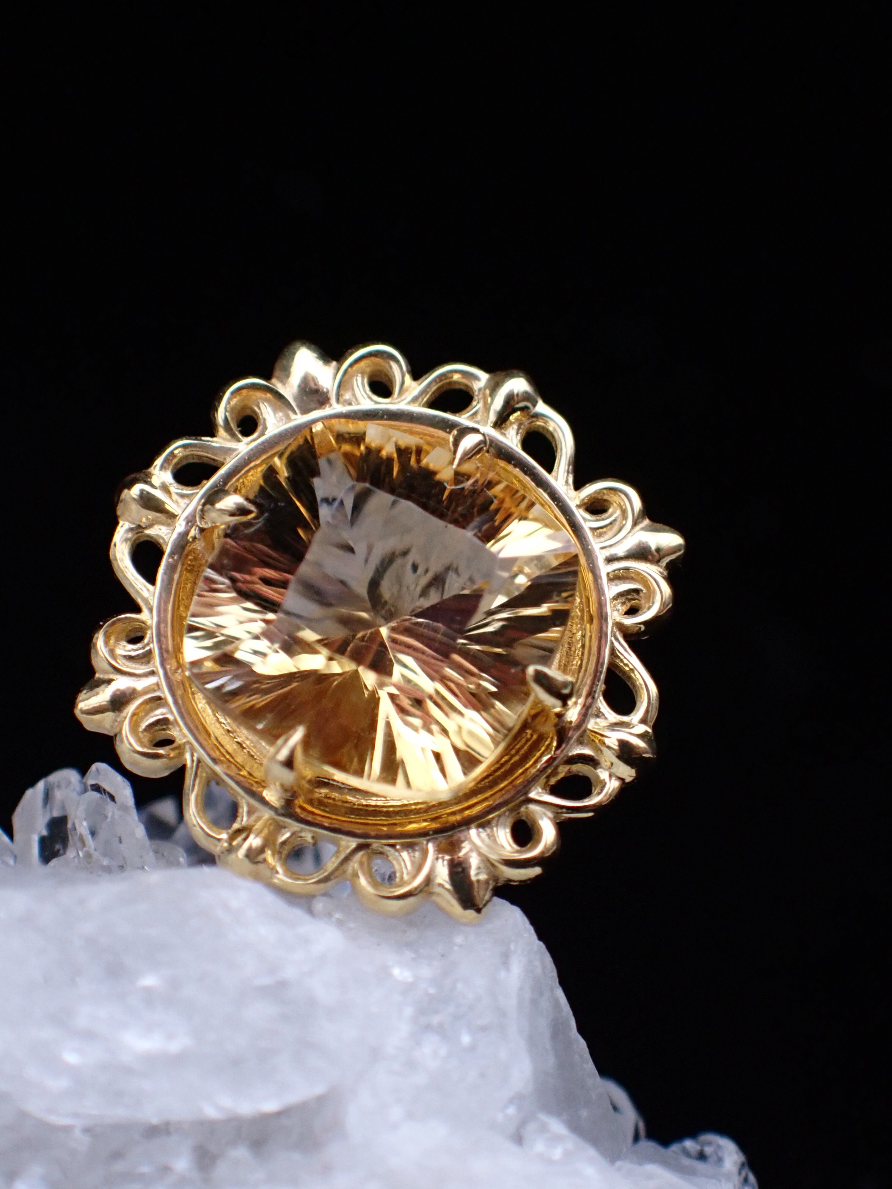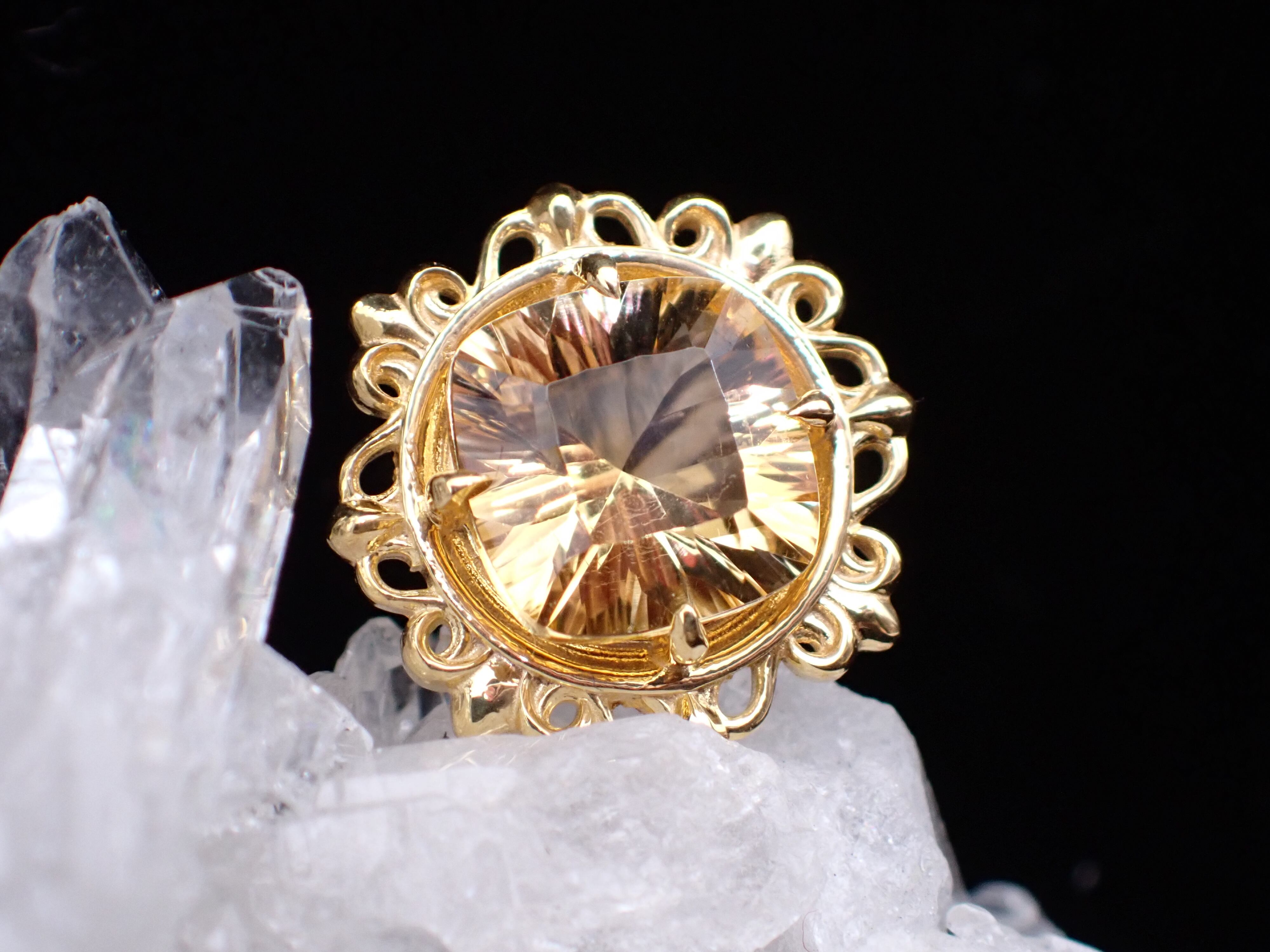 まるで石を絵画のように、美しい額縁の中へ、コンケーブカットのシトリンを納めました。