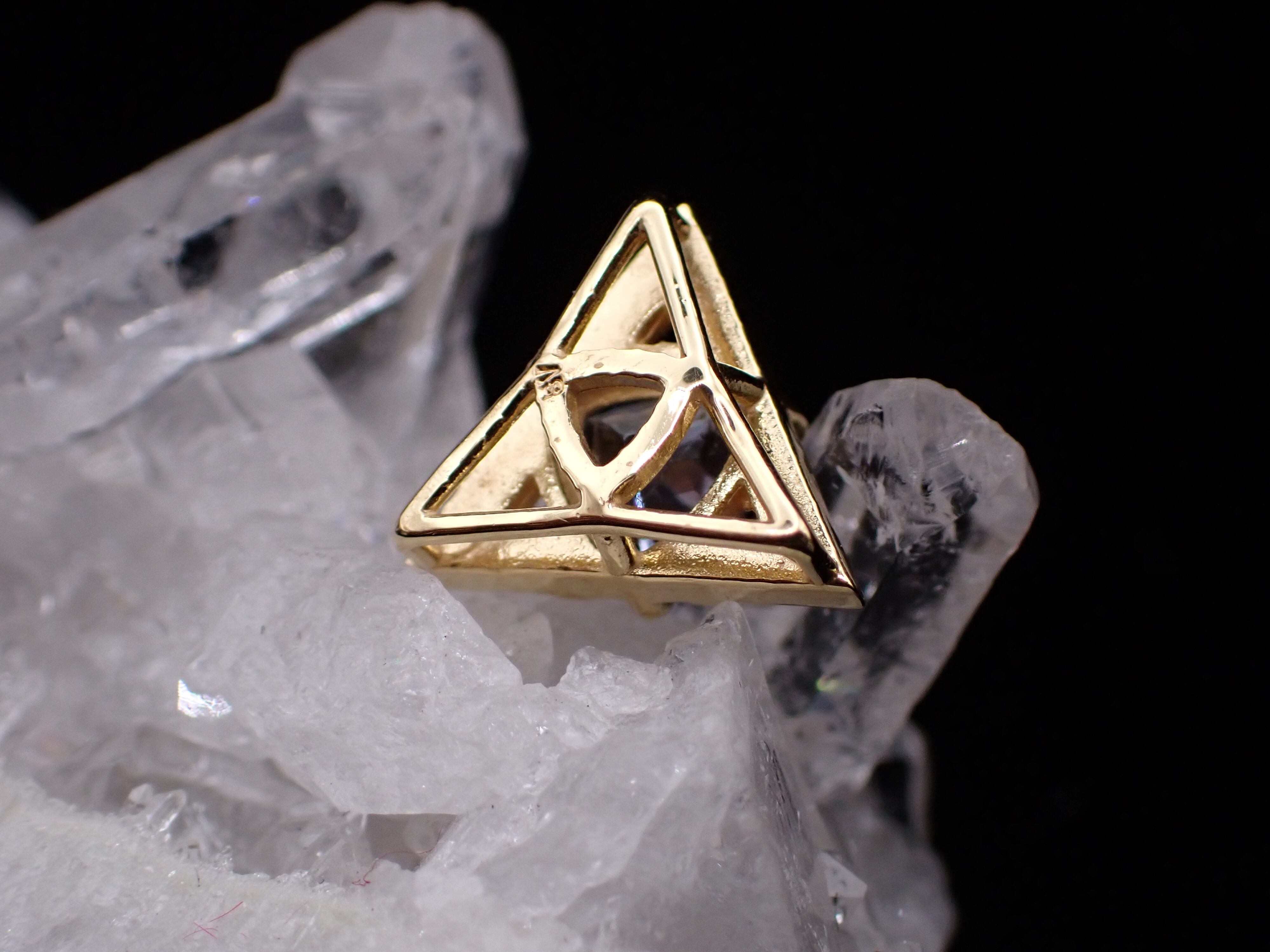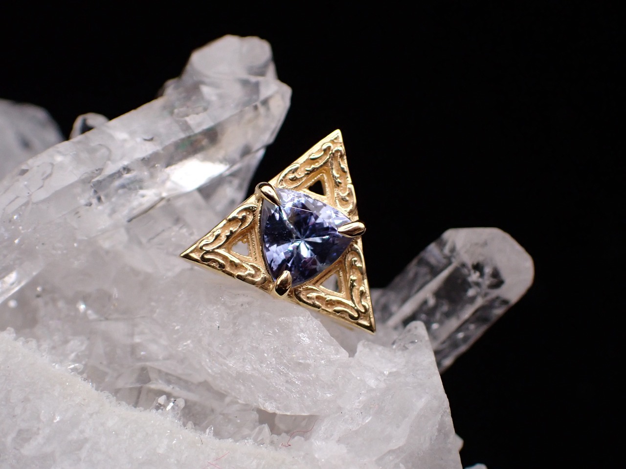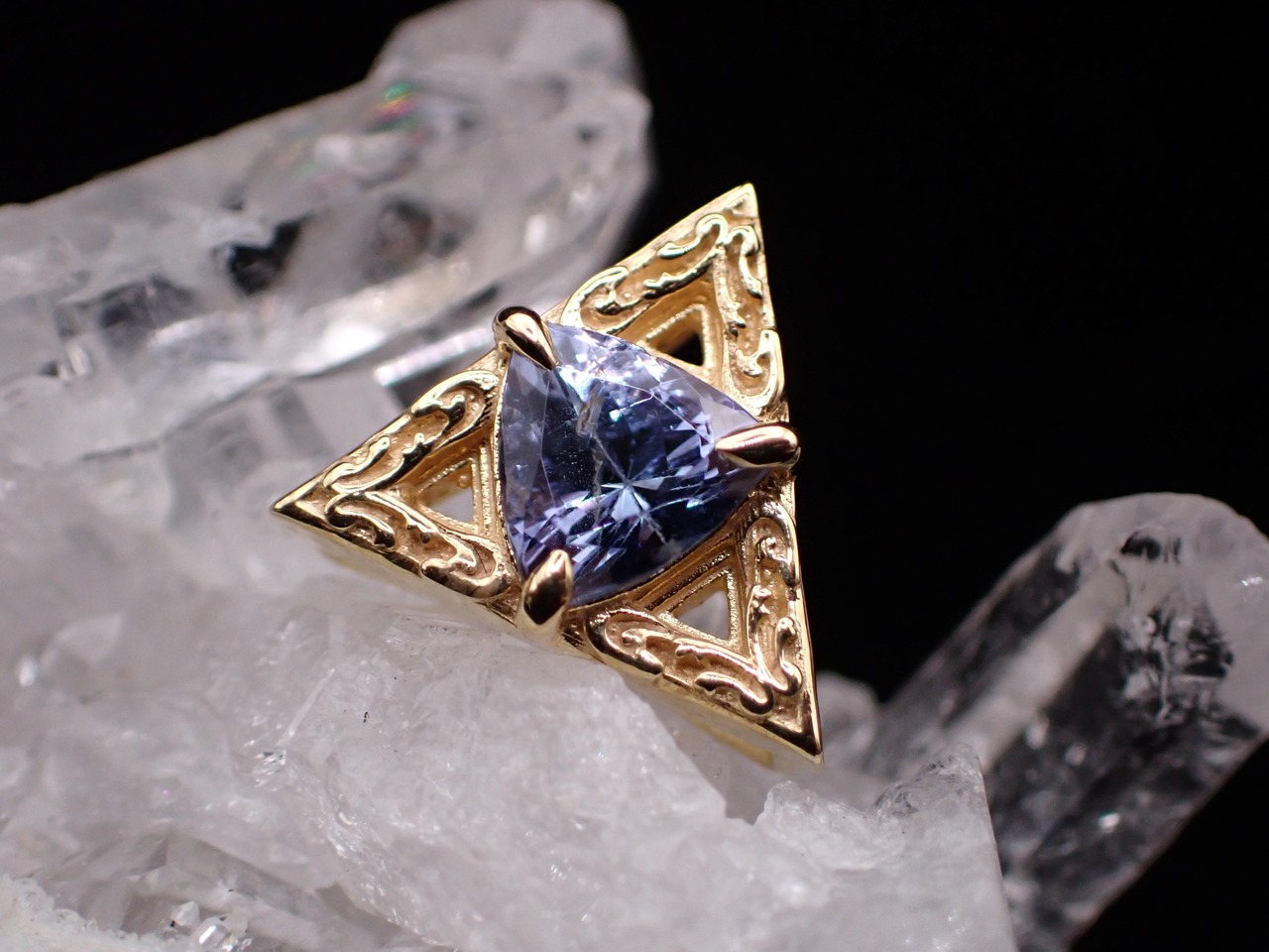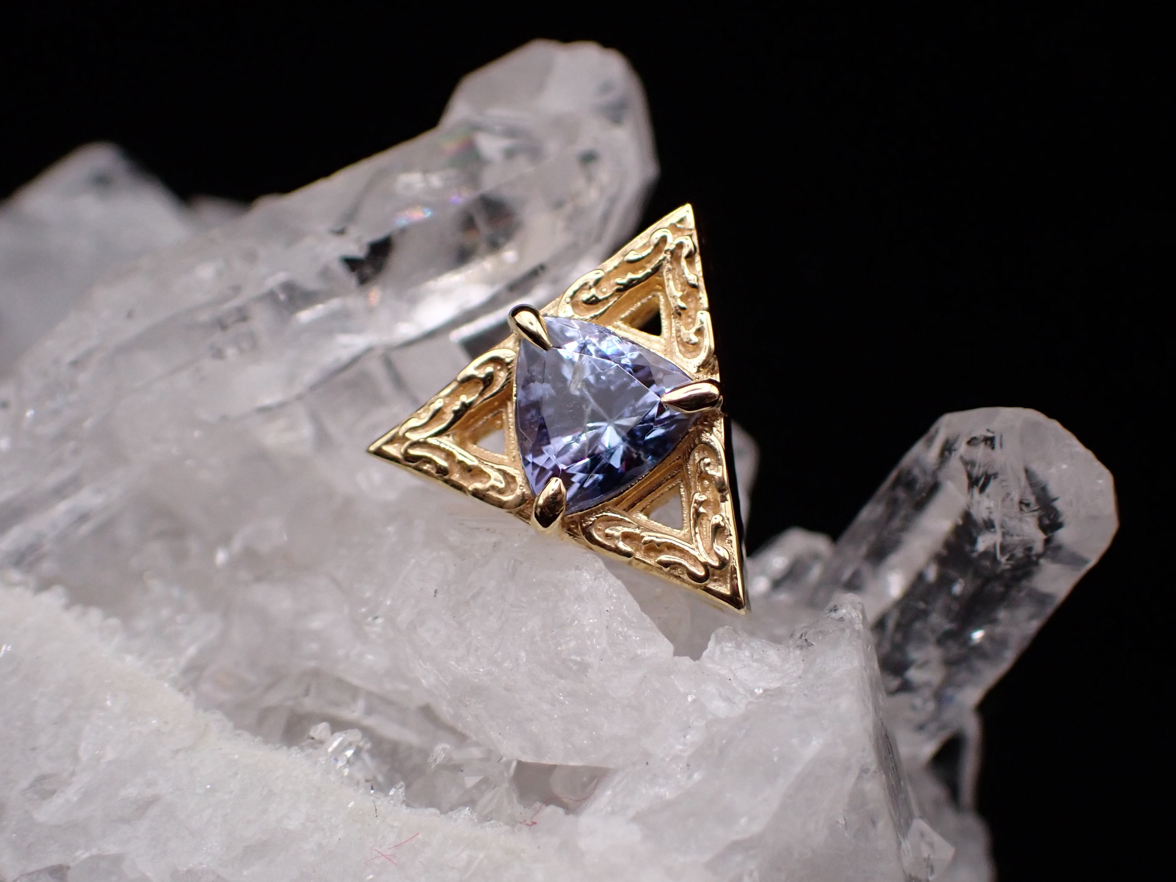 まるで絵画のように美しい三角の額縁に、澄んだゾイサイトを納めました。