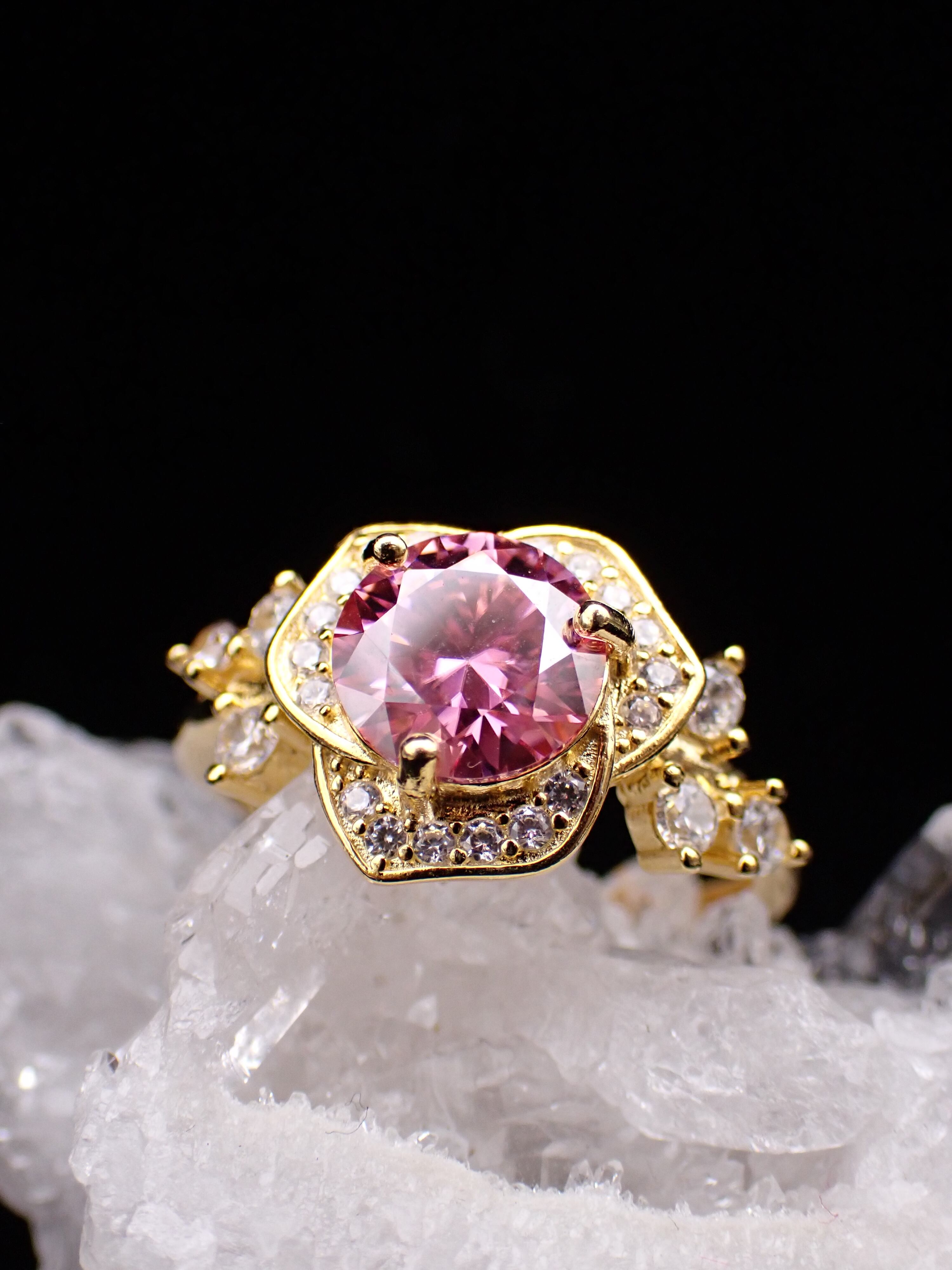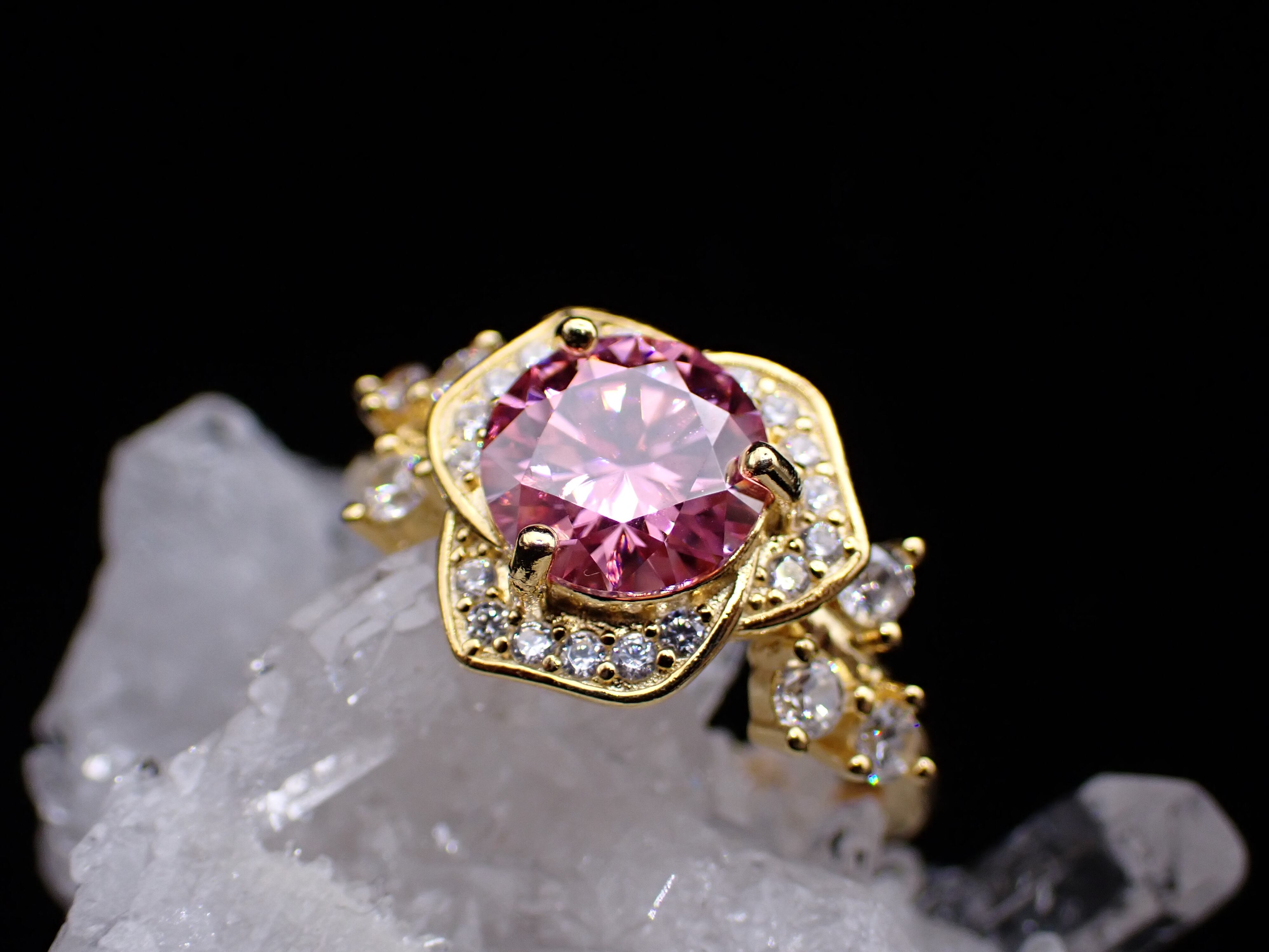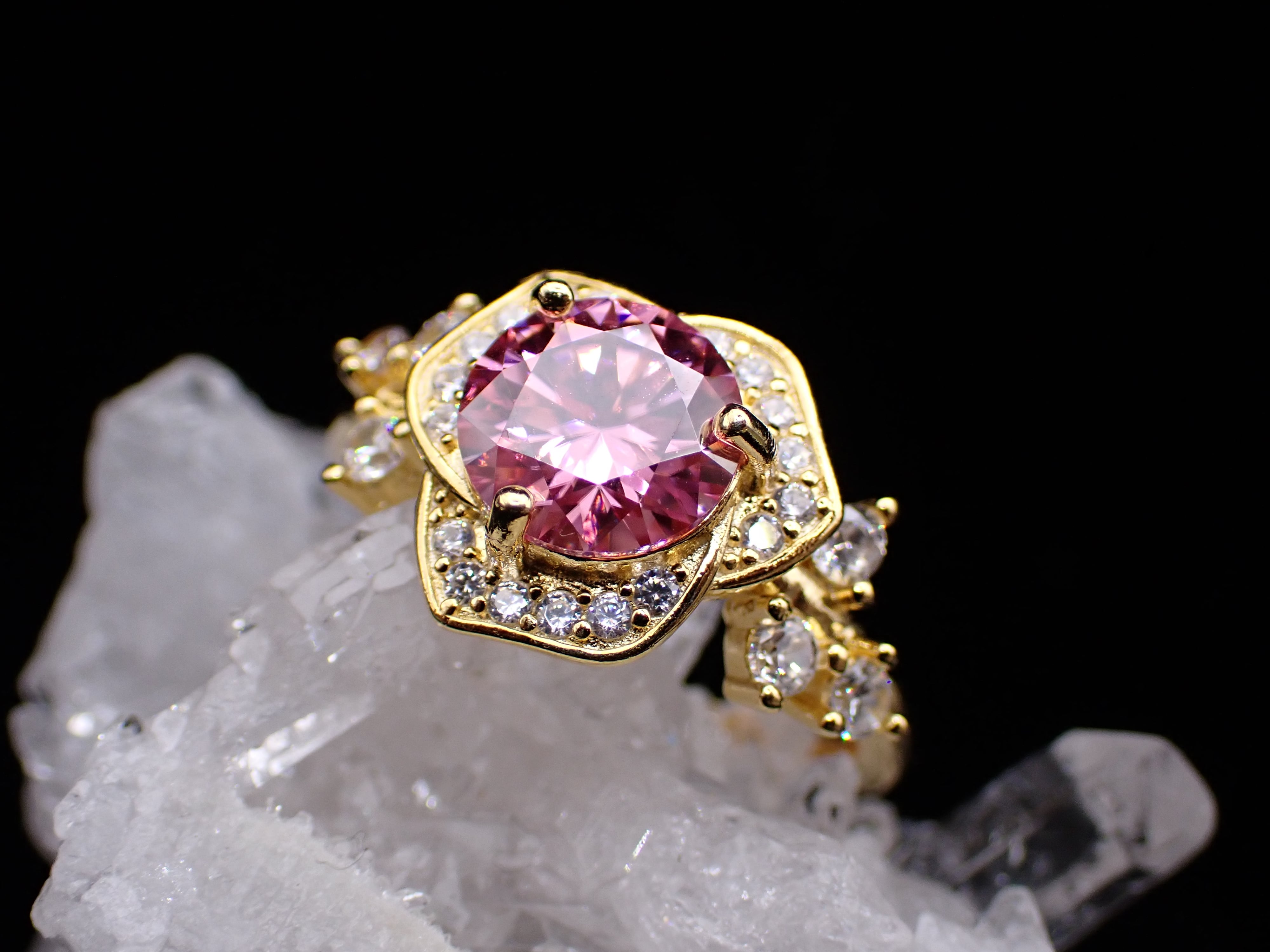 薔薇ring ピンクモアッサナイト フリーサイズリングYG
