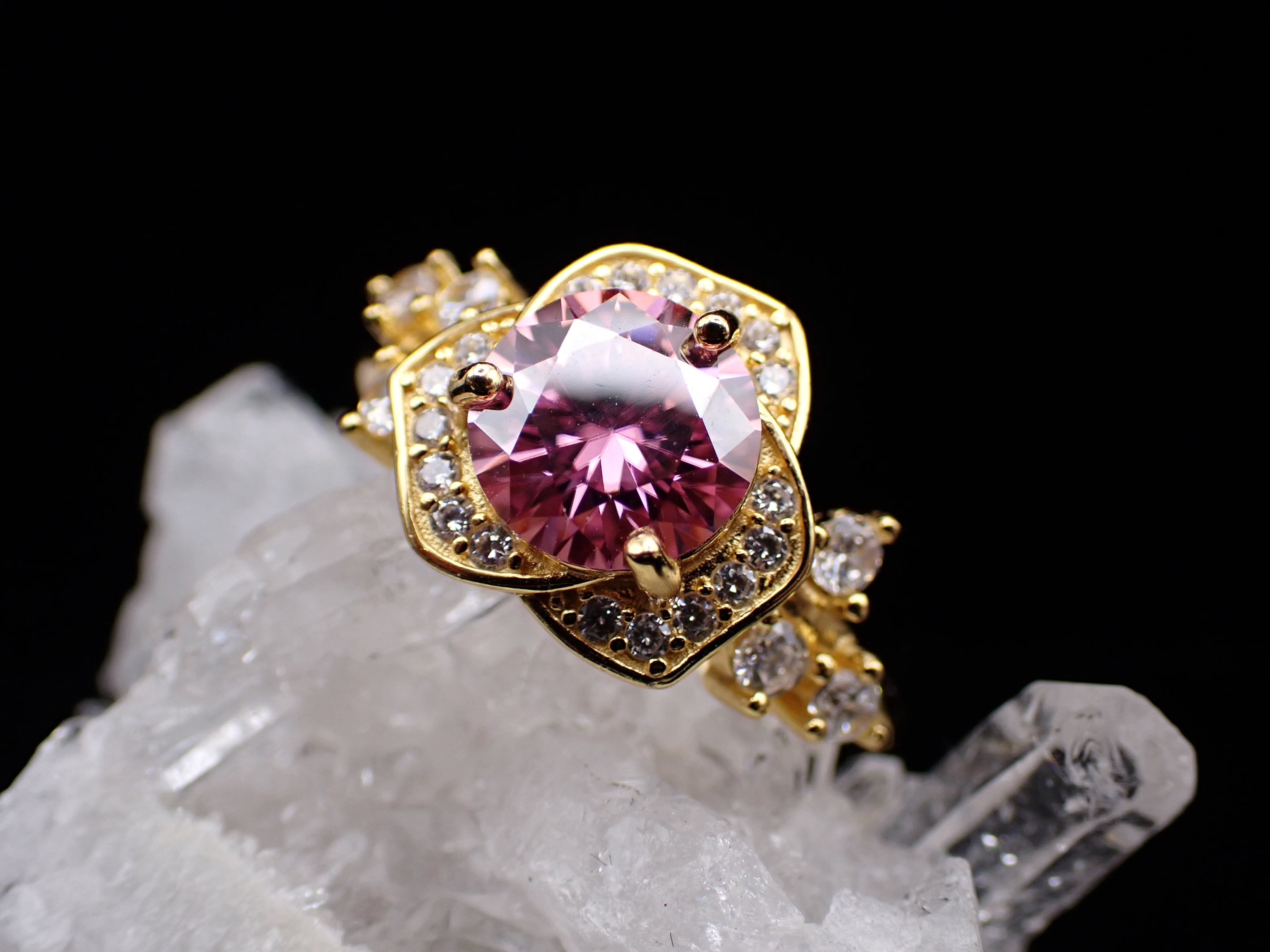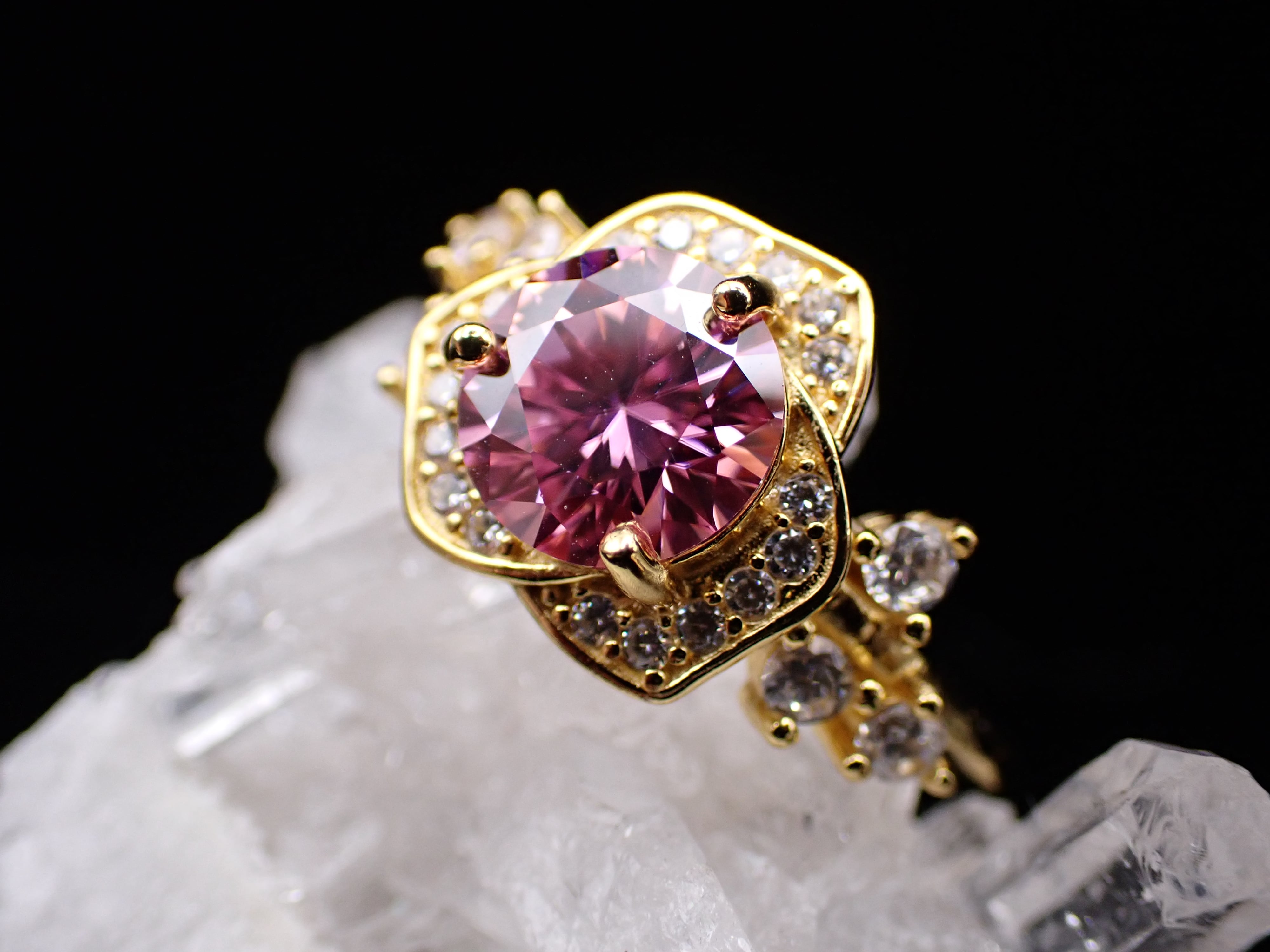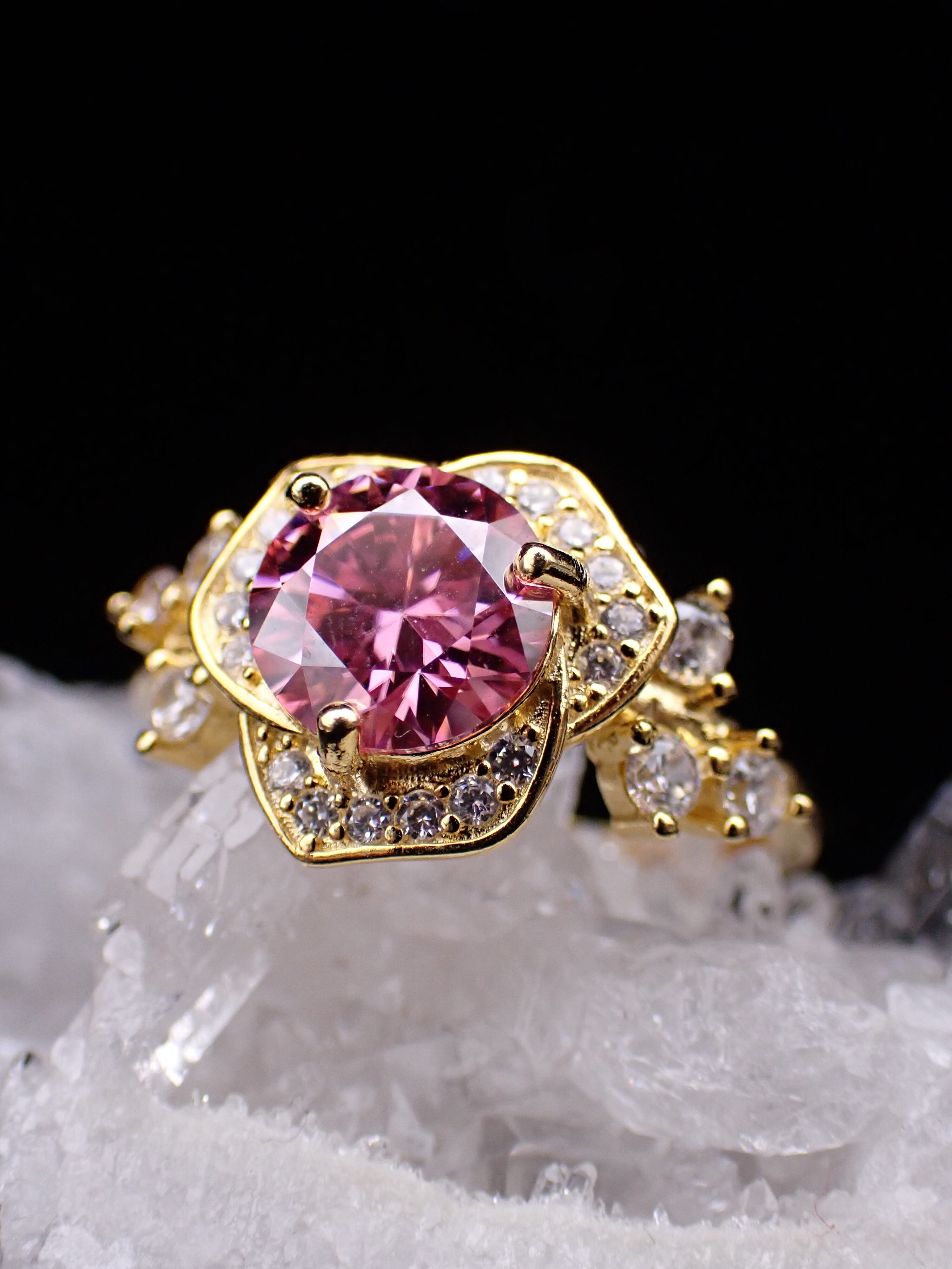 薔薇ring ピンクモアッサナイト フリーサイズリングYG