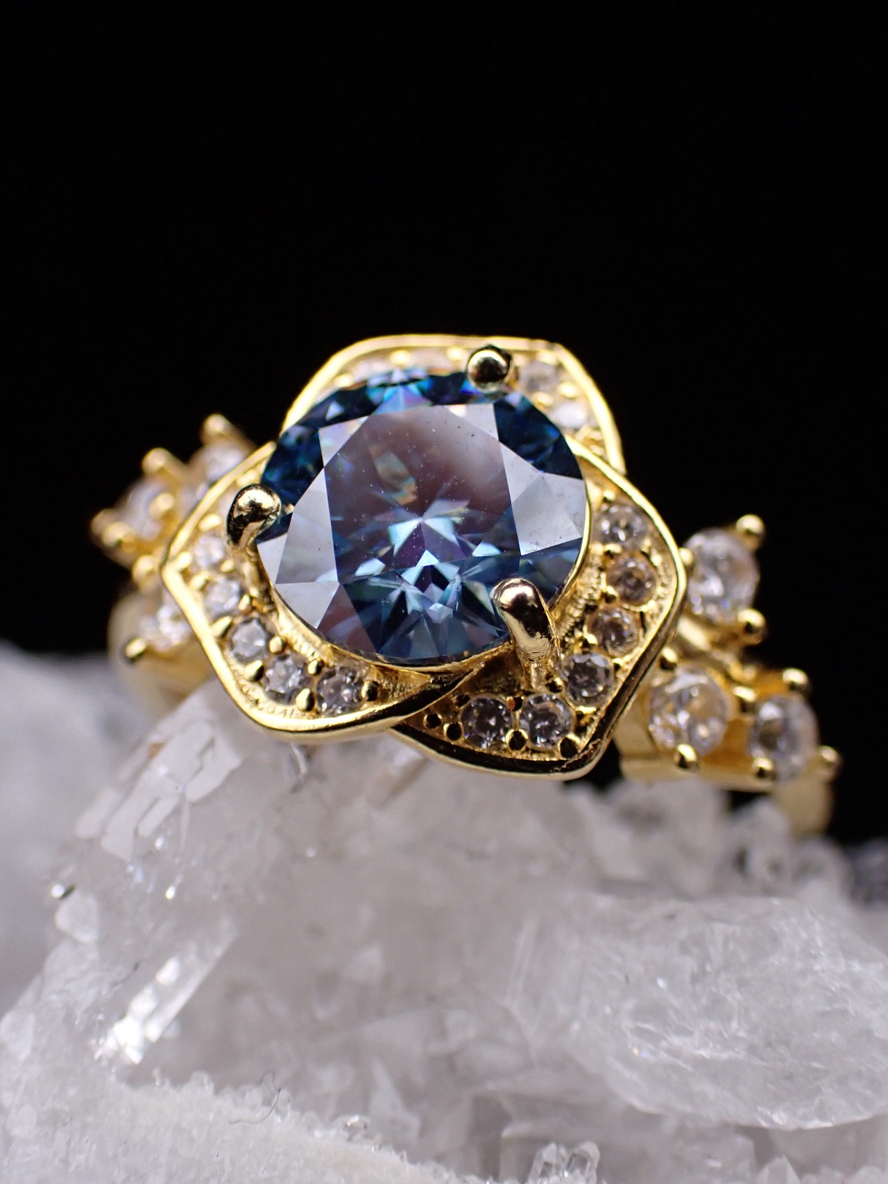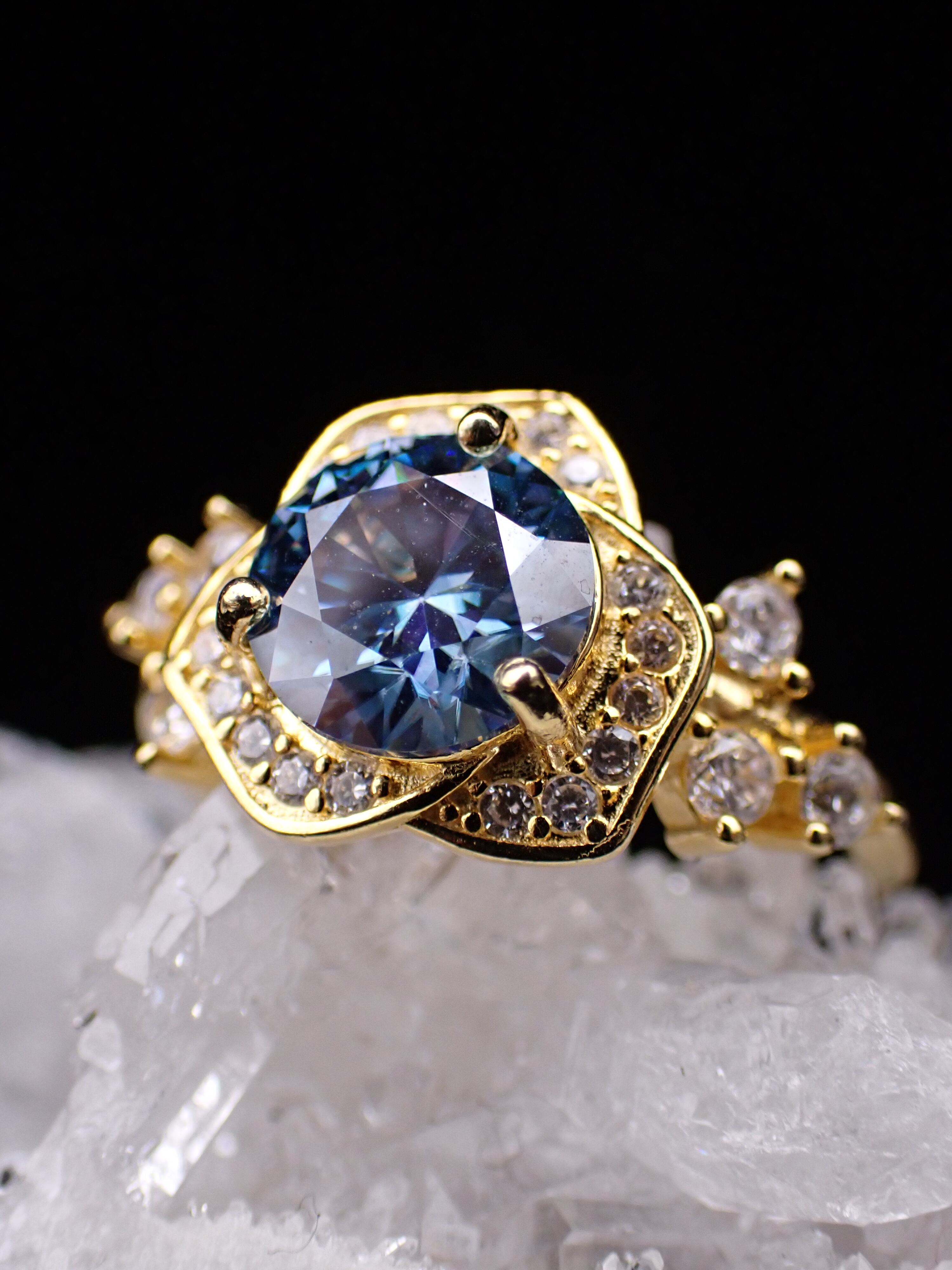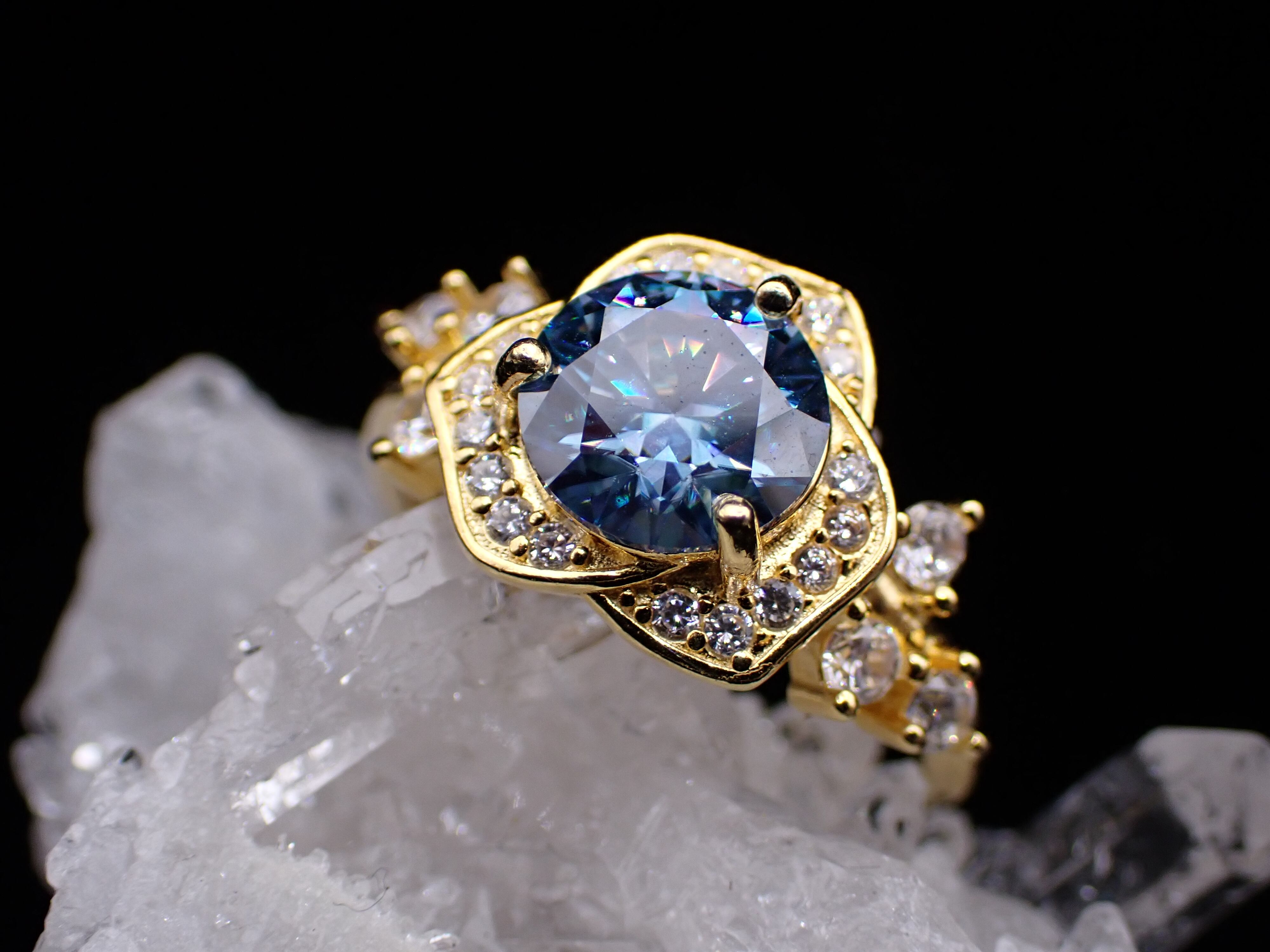 薔薇ring ブルーモアッサナイト フリーサイズリングYG