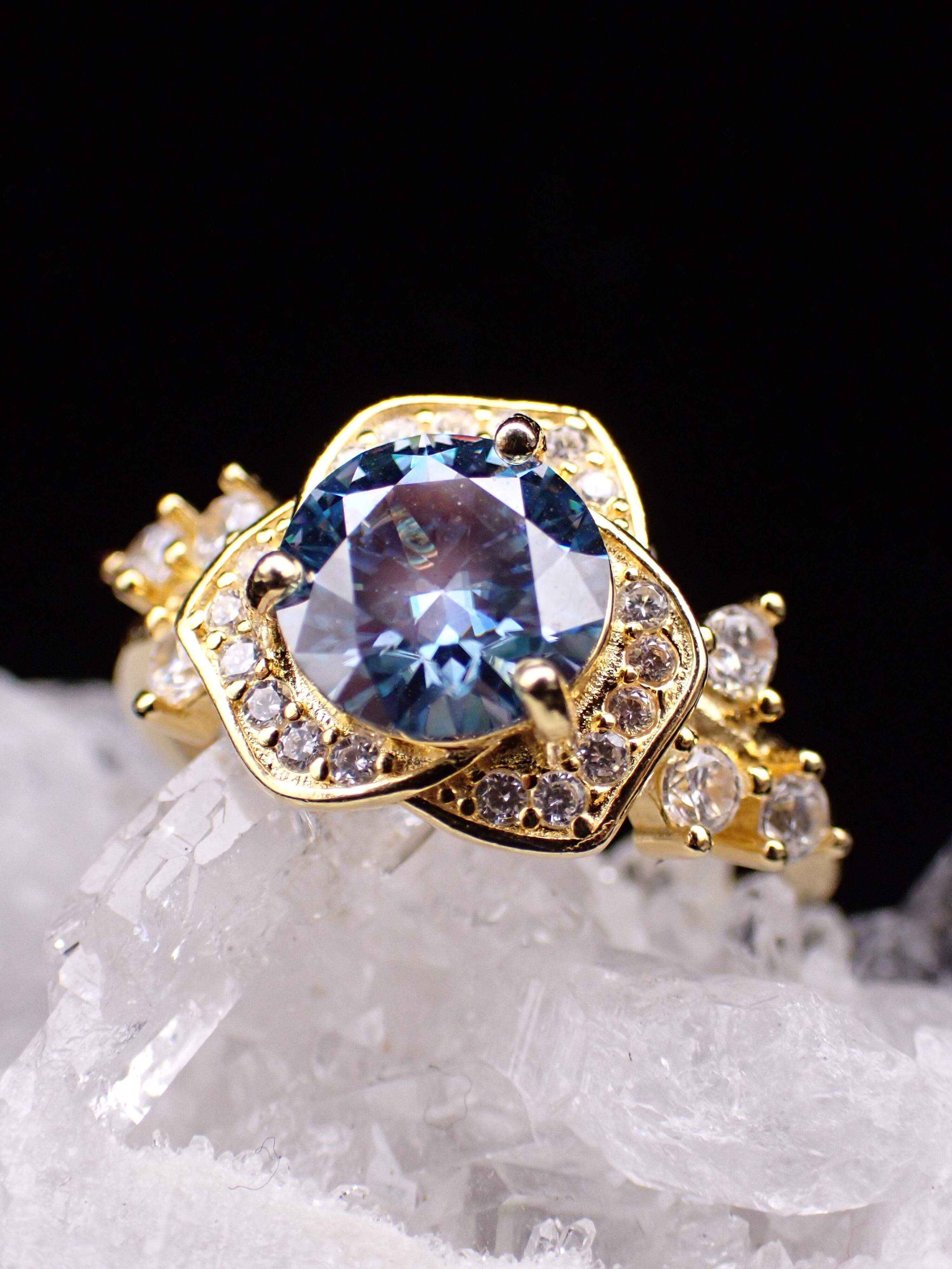 美しいジルコニアの中に8mmの大きな合成モアッサナイトが豪華に輝きます。