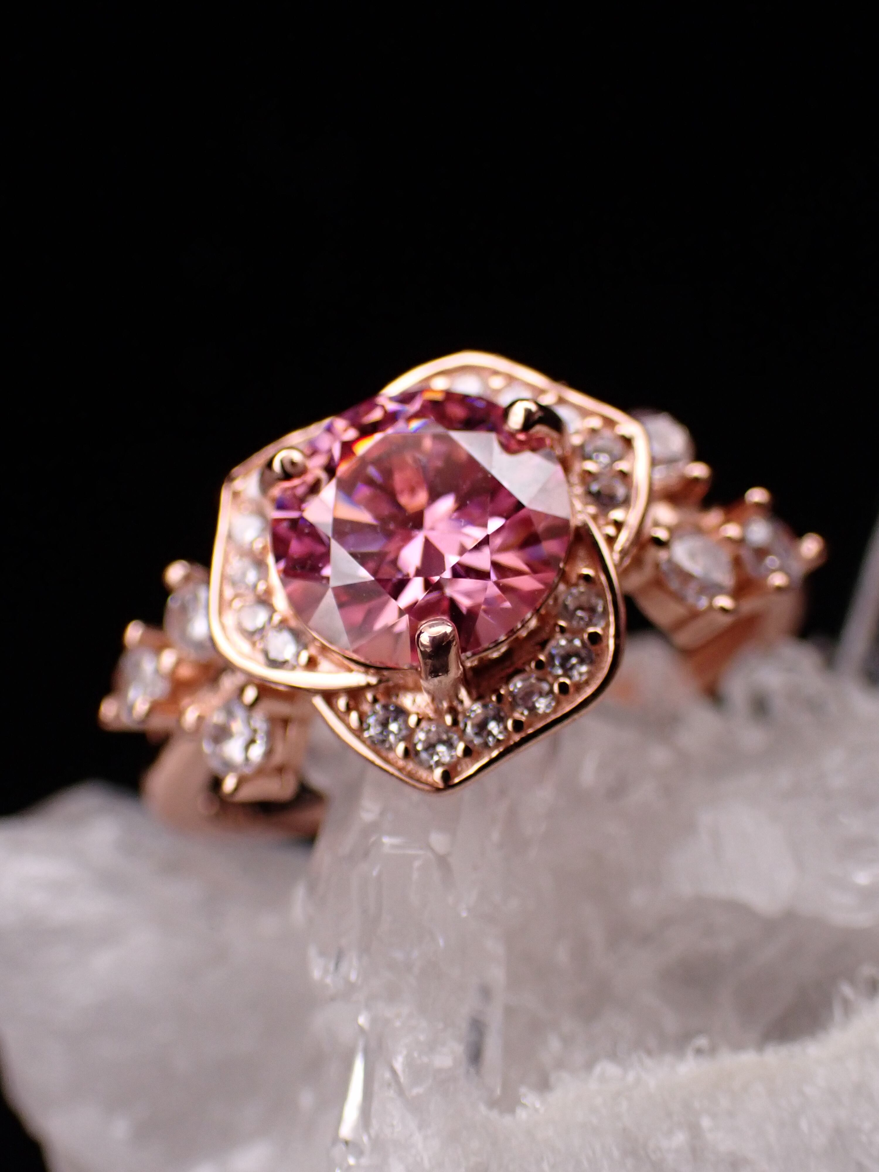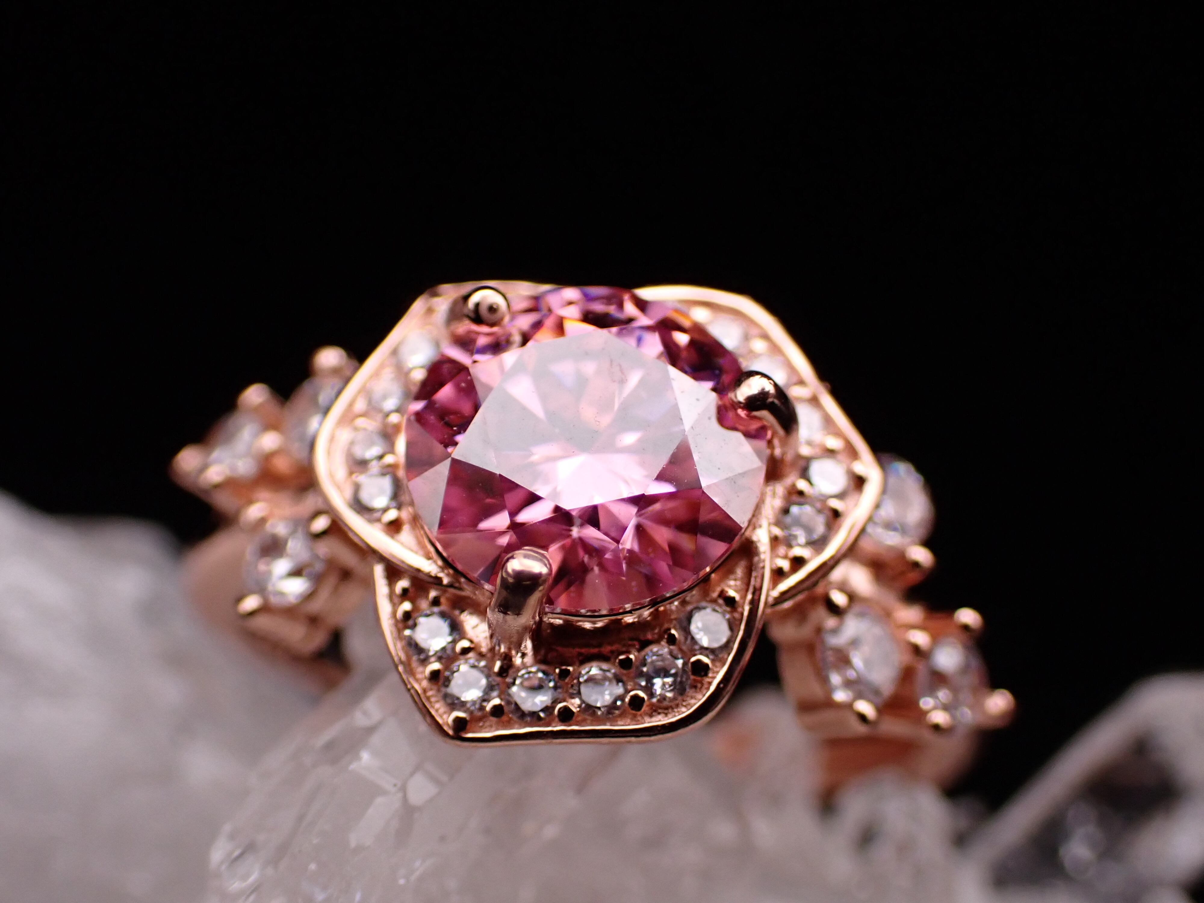 薔薇ring ピンクモアッサナイト フリーサイズリングPG