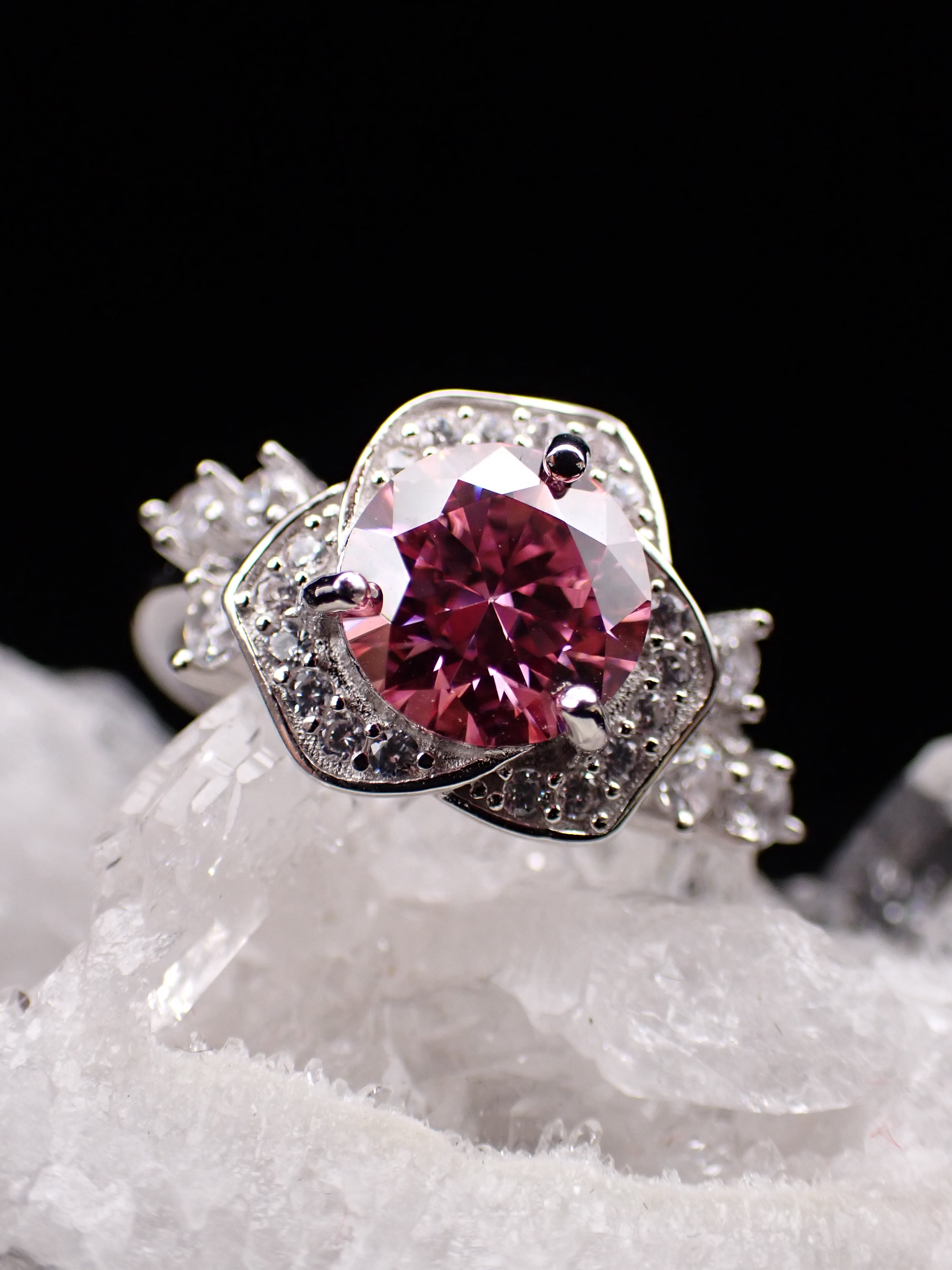 薔薇ring ピンクモアッサナイト フリーサイズリングSV