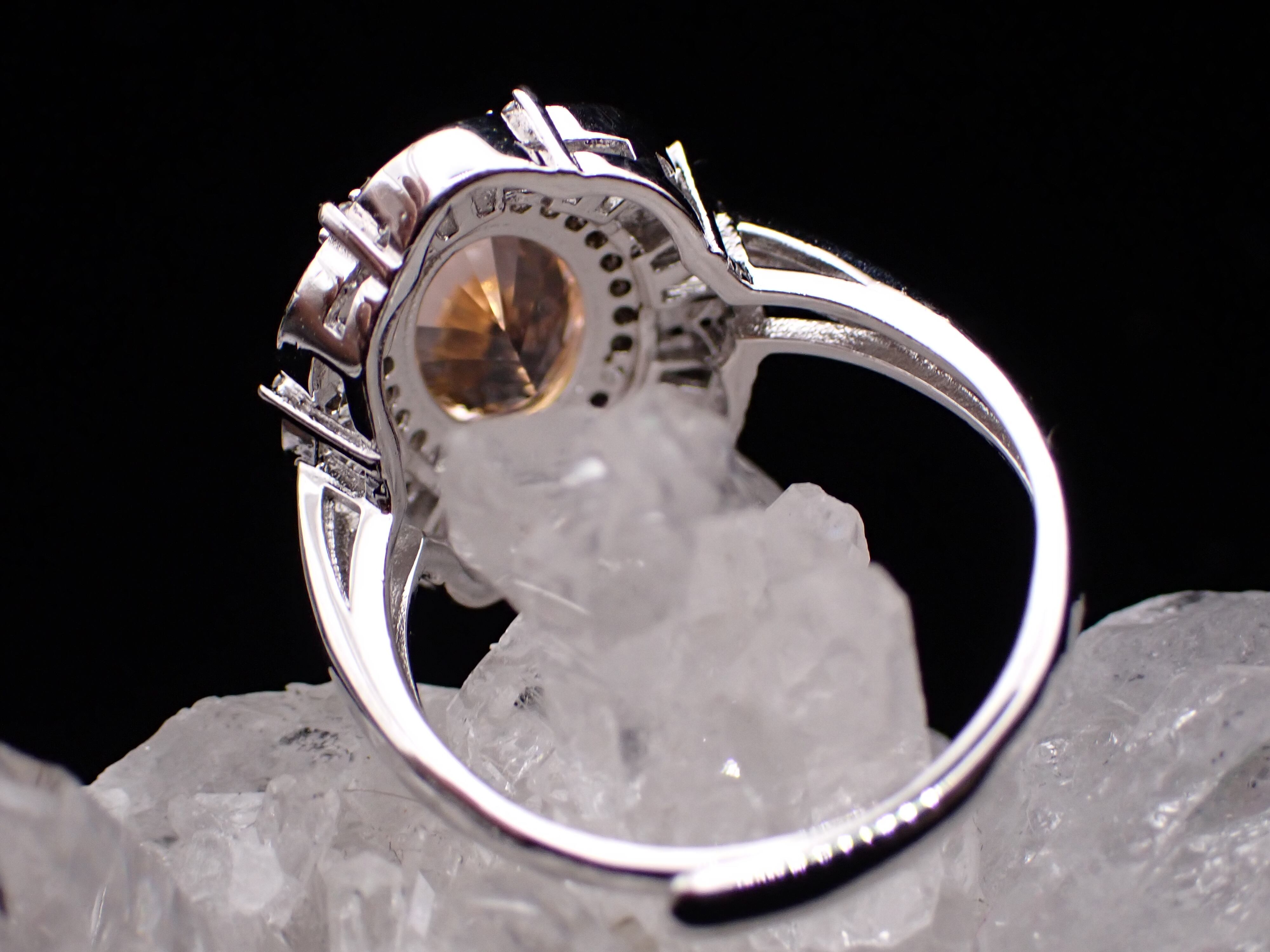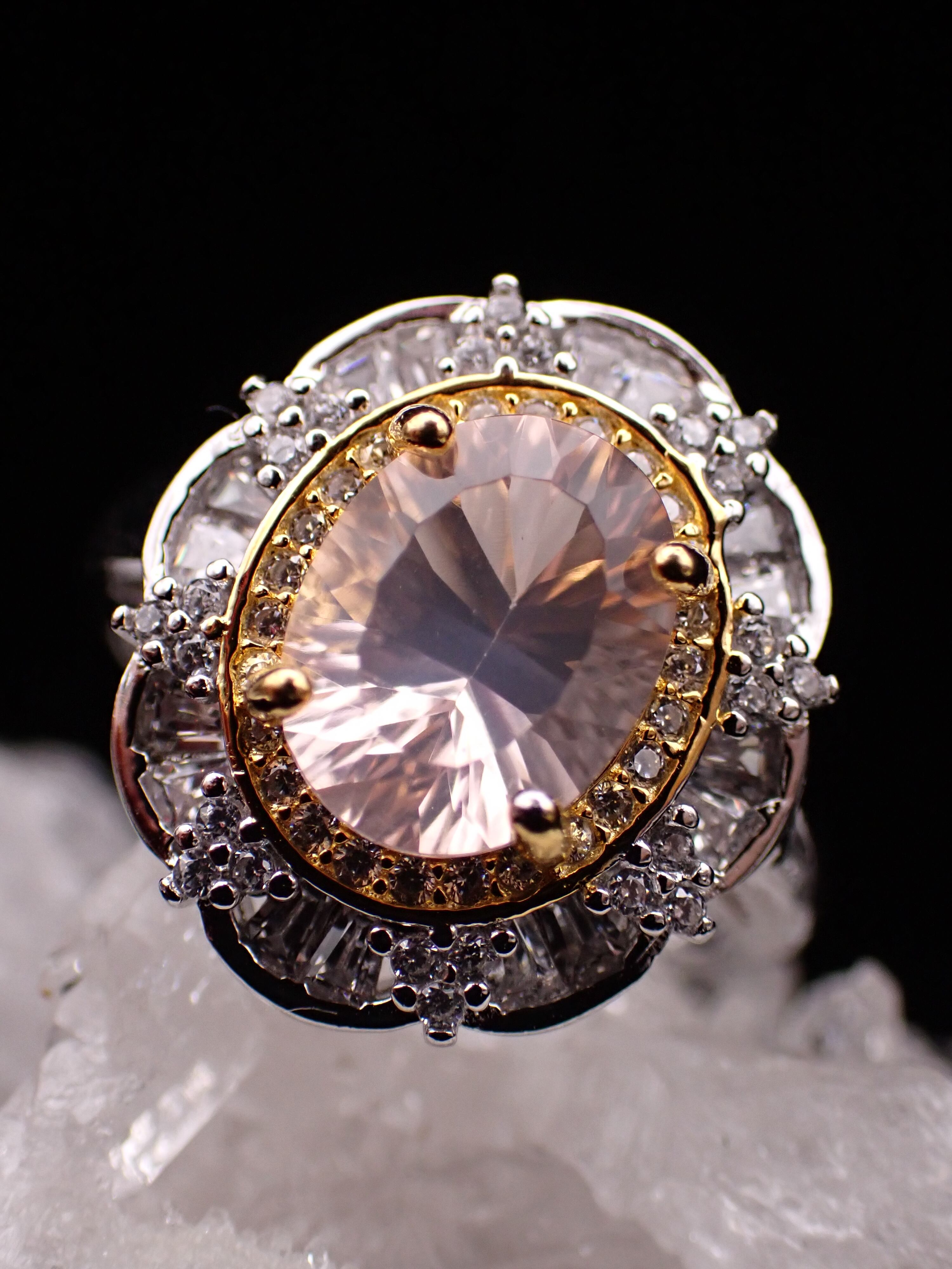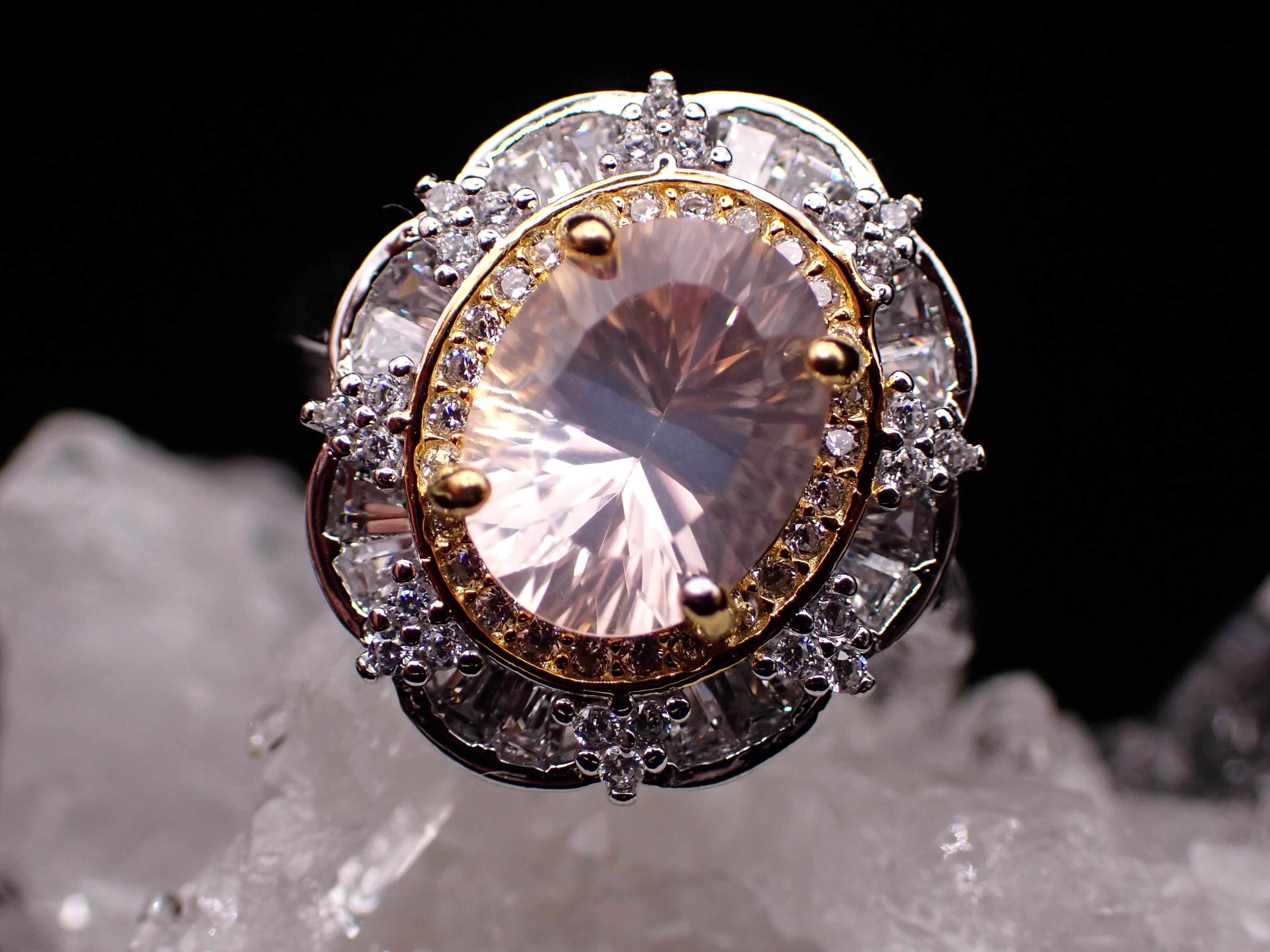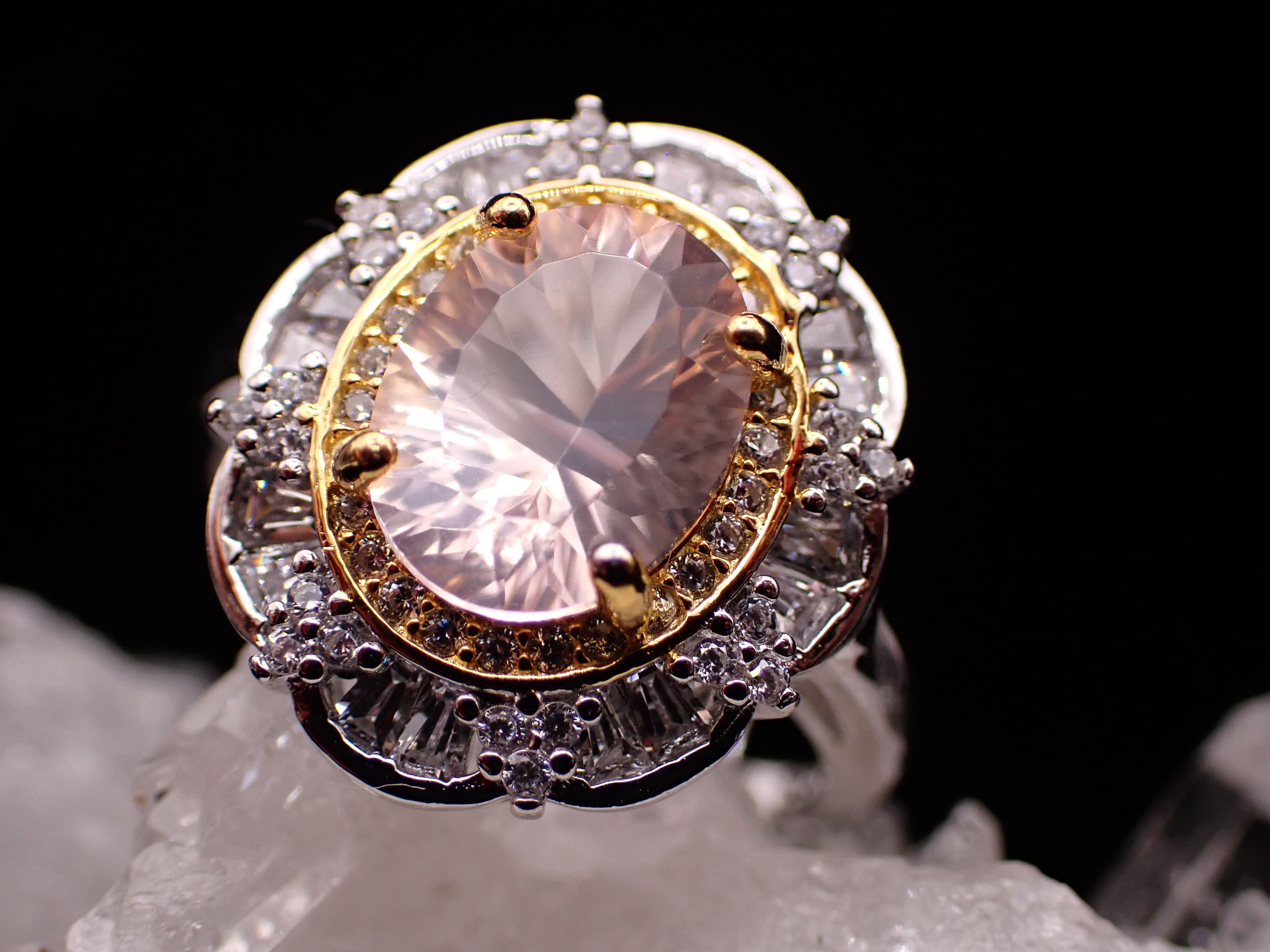 取り巻きのジルコニアたちがキラキラと輝き、ローズクォーツの美しい輝きを引き立てます。