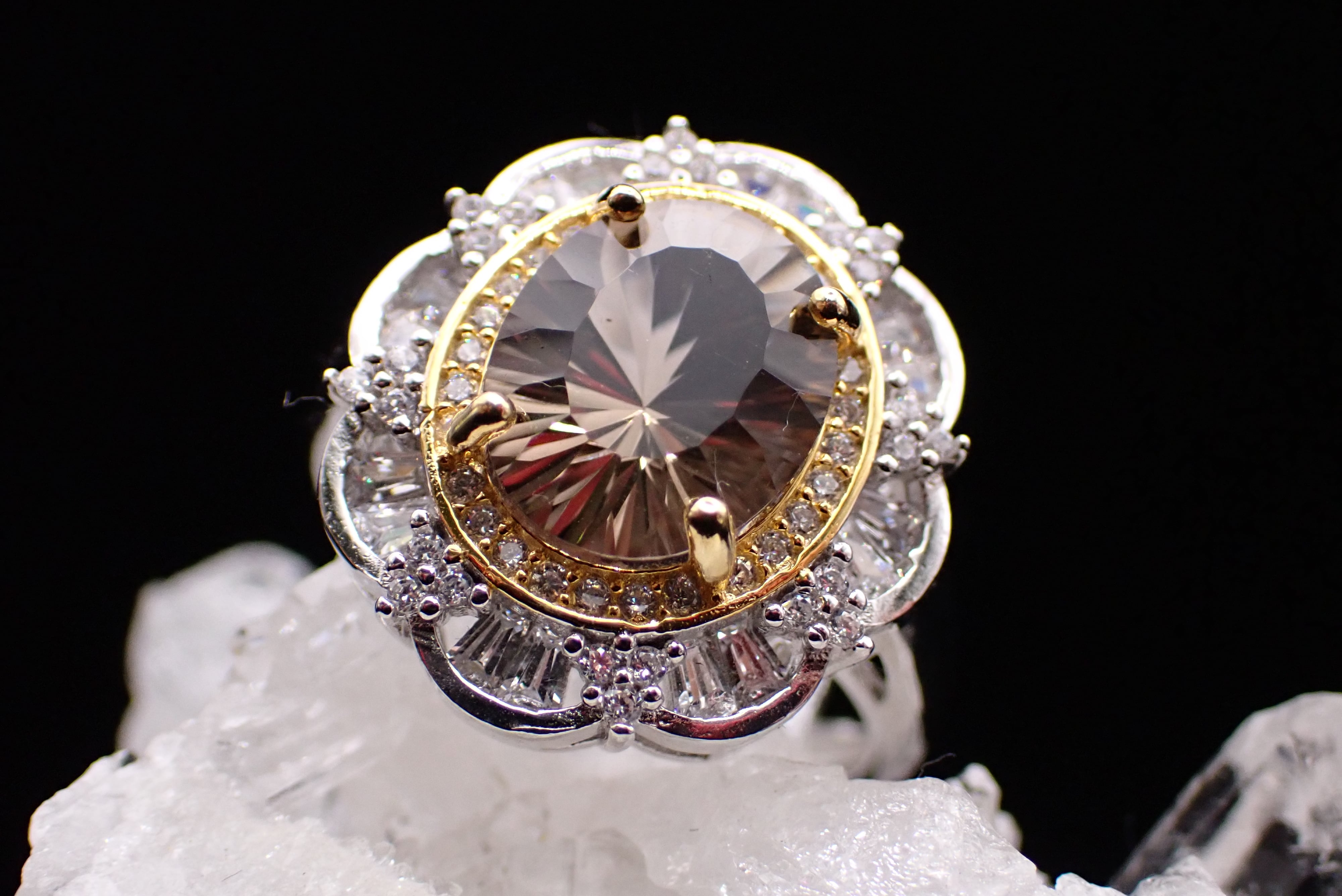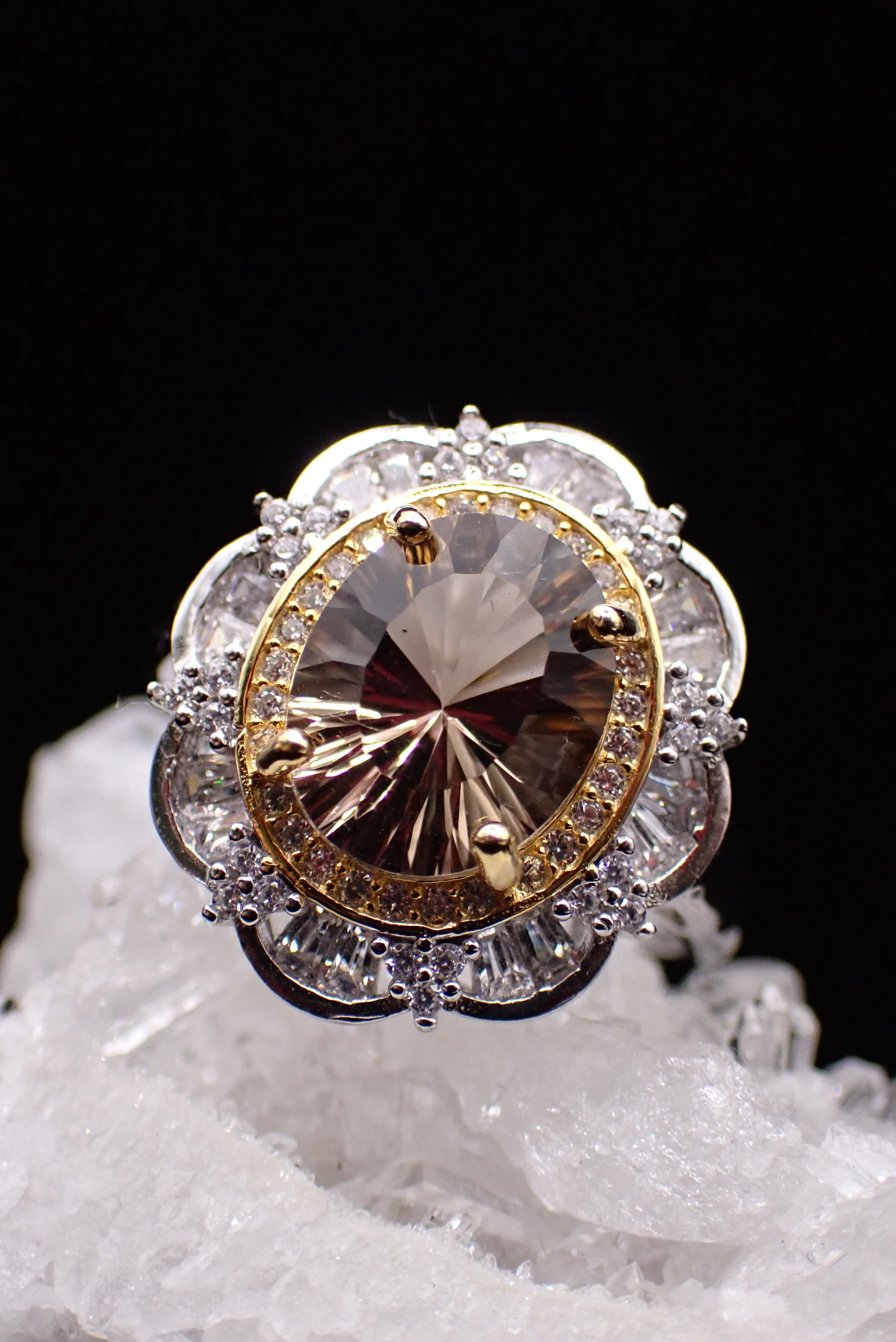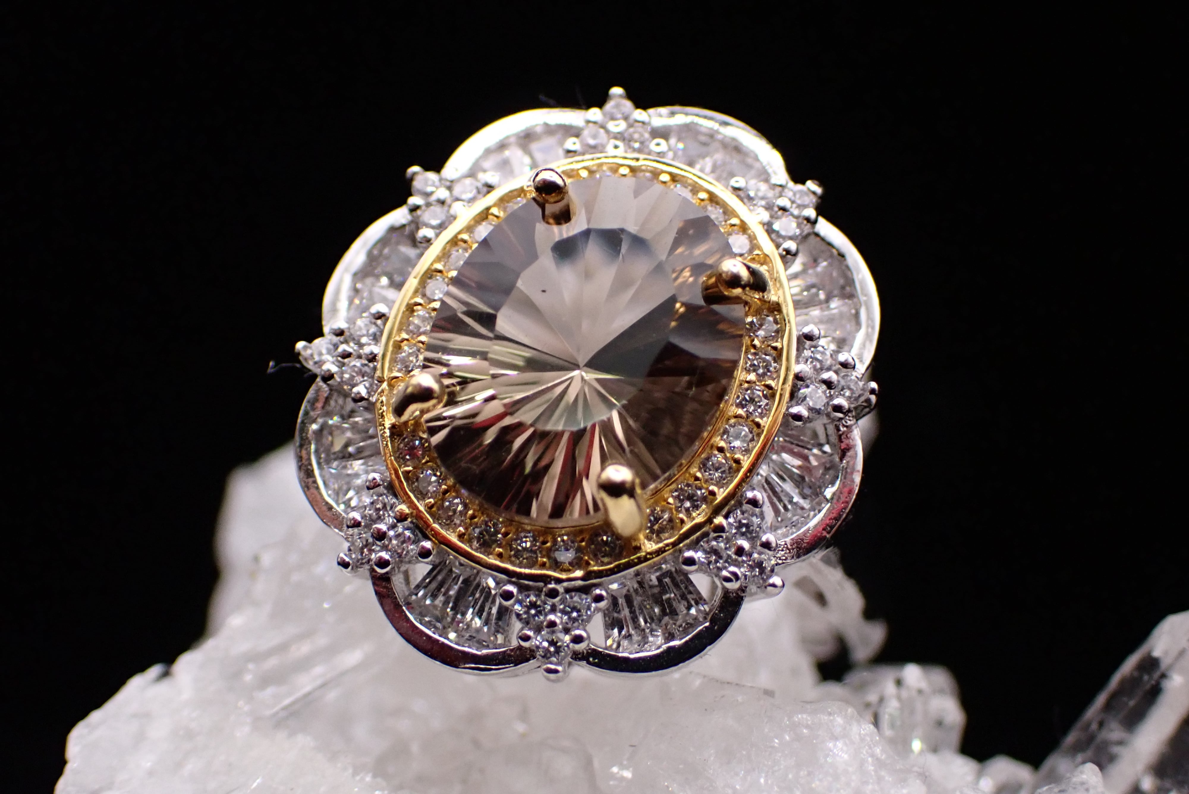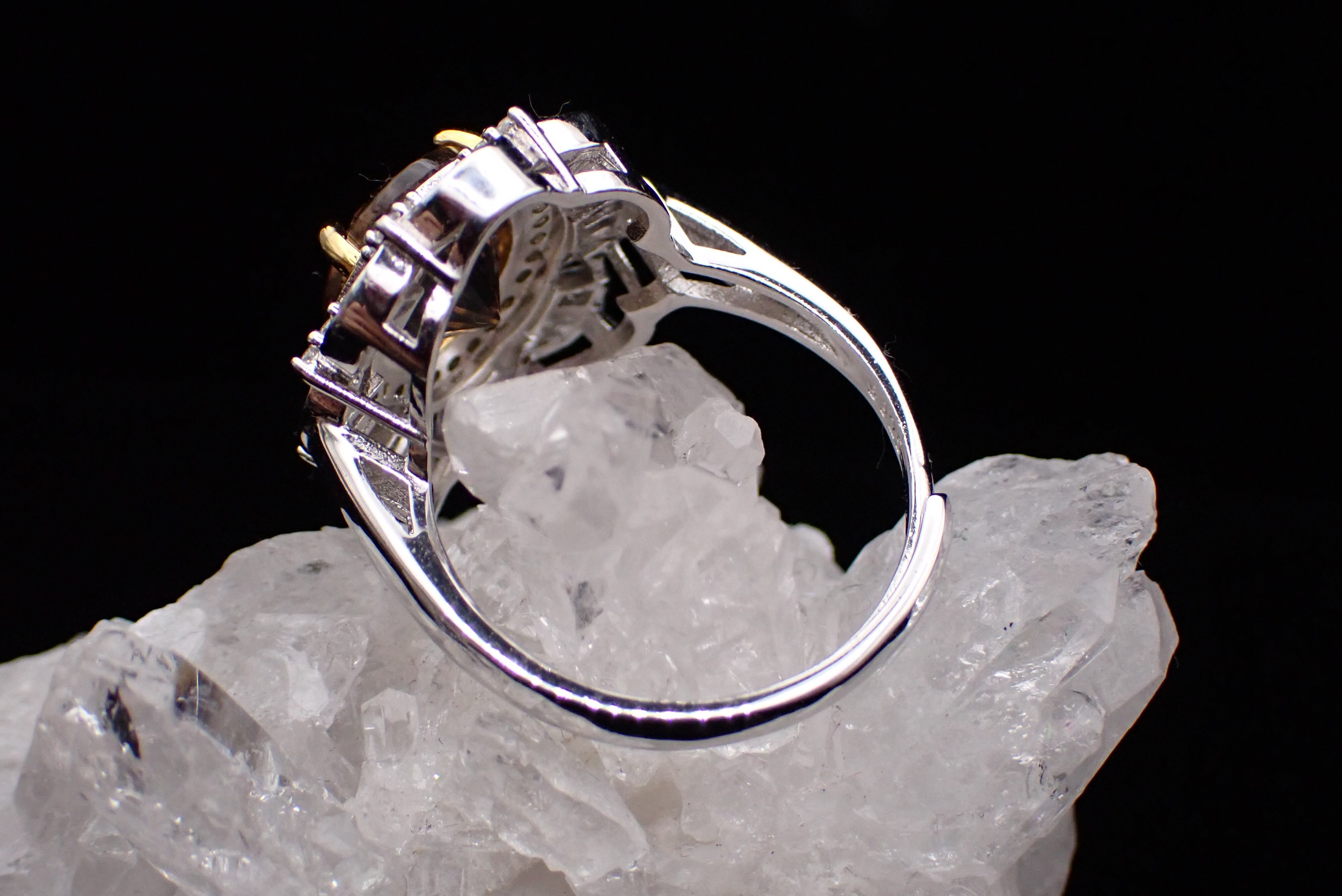 取り巻きのジルコニアたちがキラキラと輝き、スモーキークォーツの美しい輝きを引き立てます。