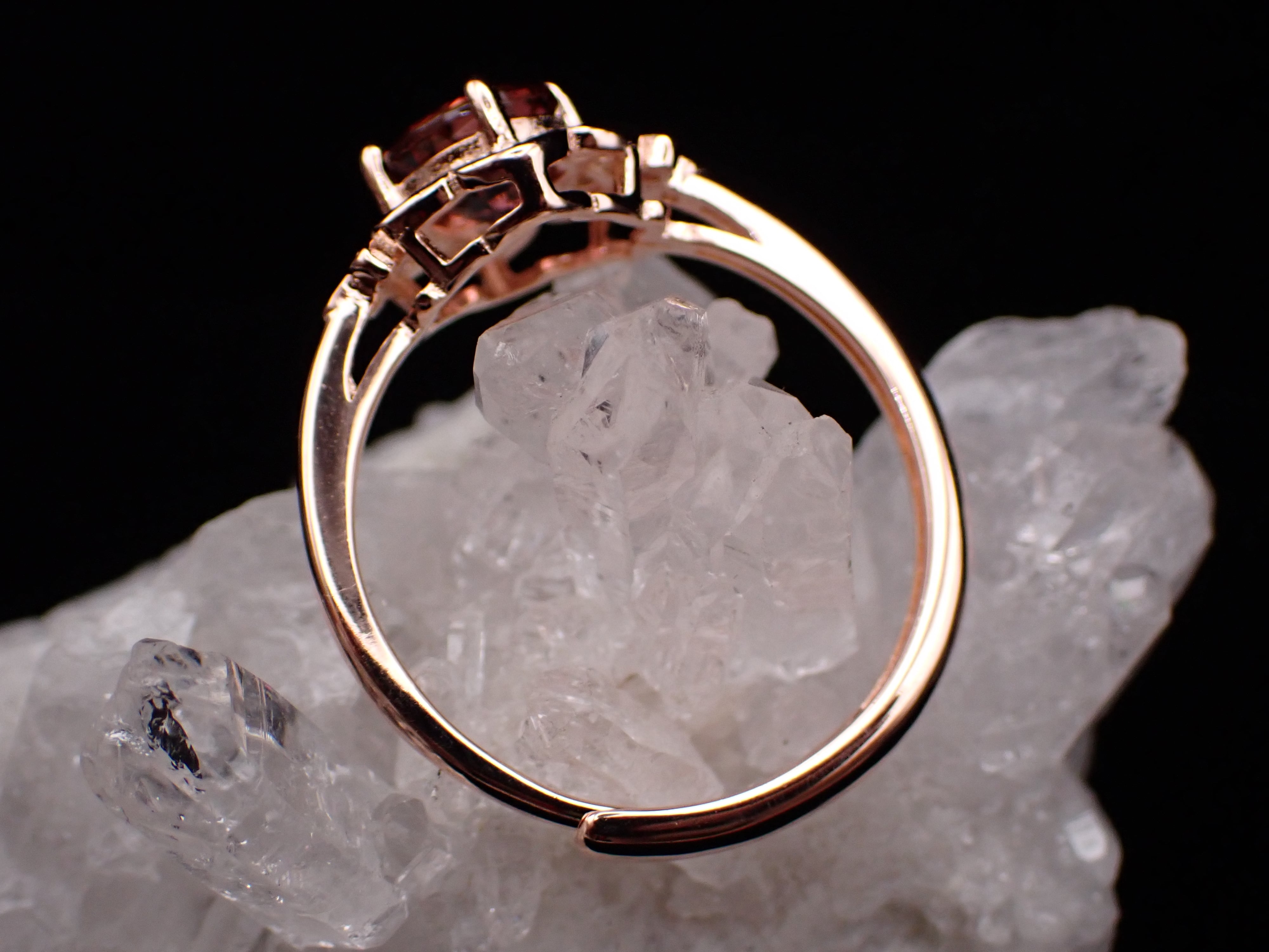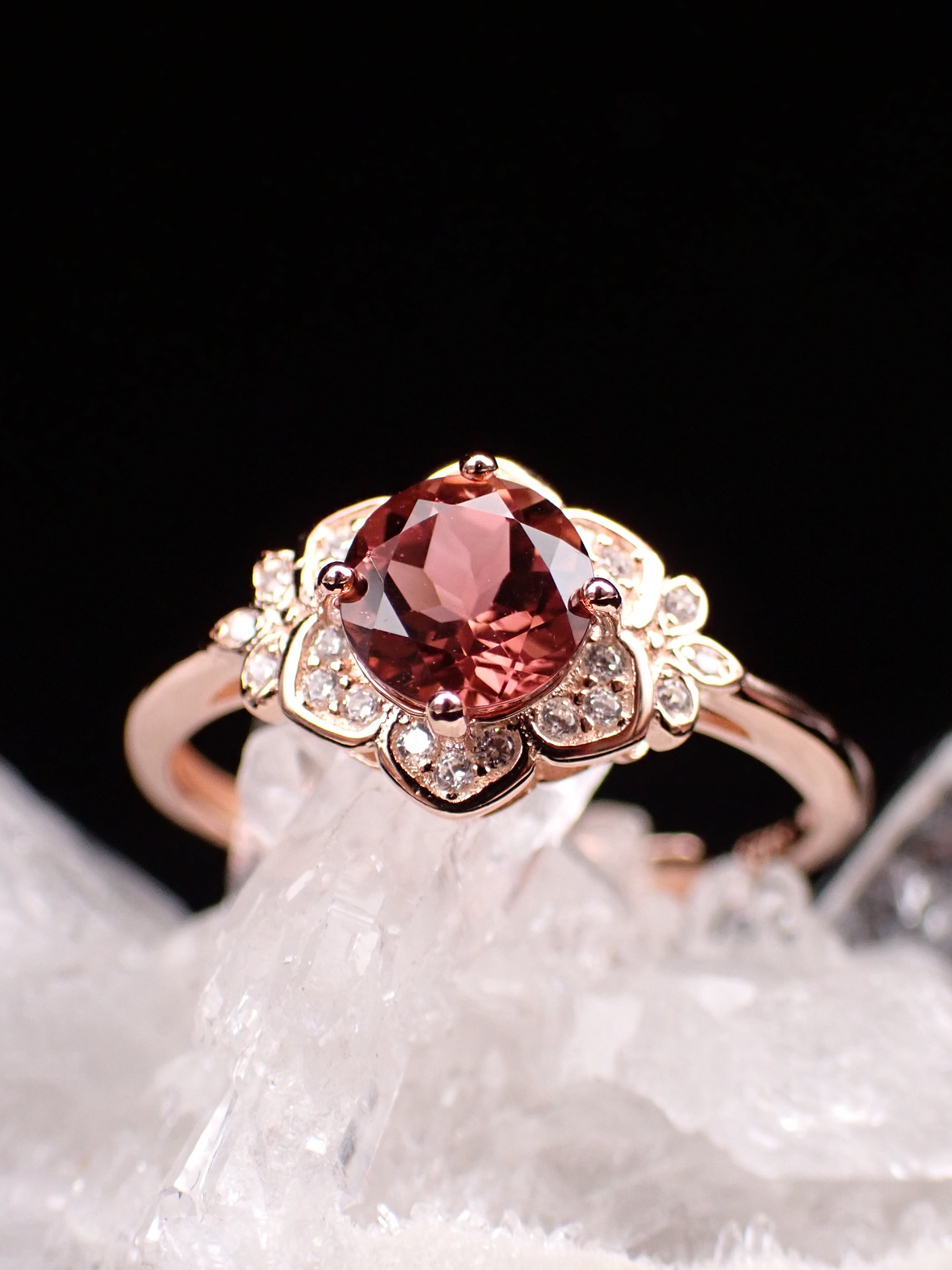 桔梗の花びらの中央に咲き誇る美しいピンクトルマリン。