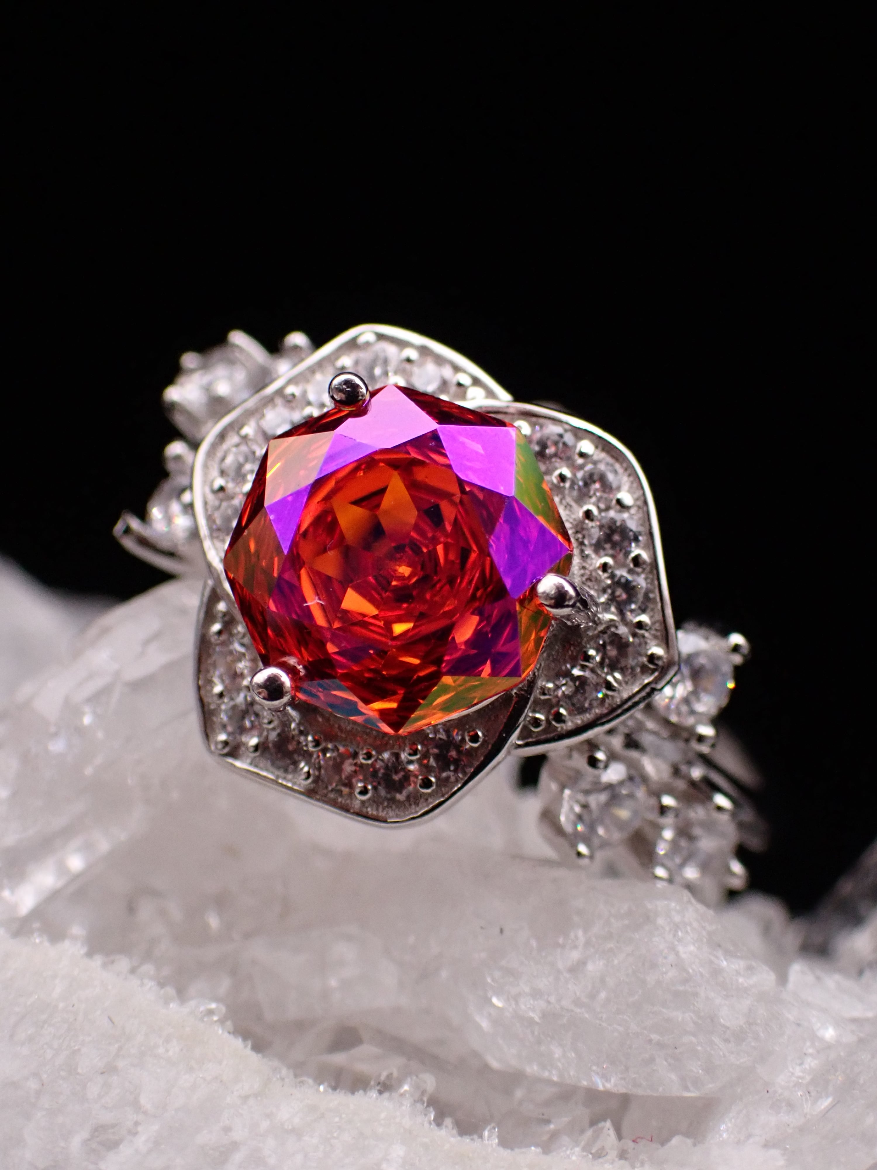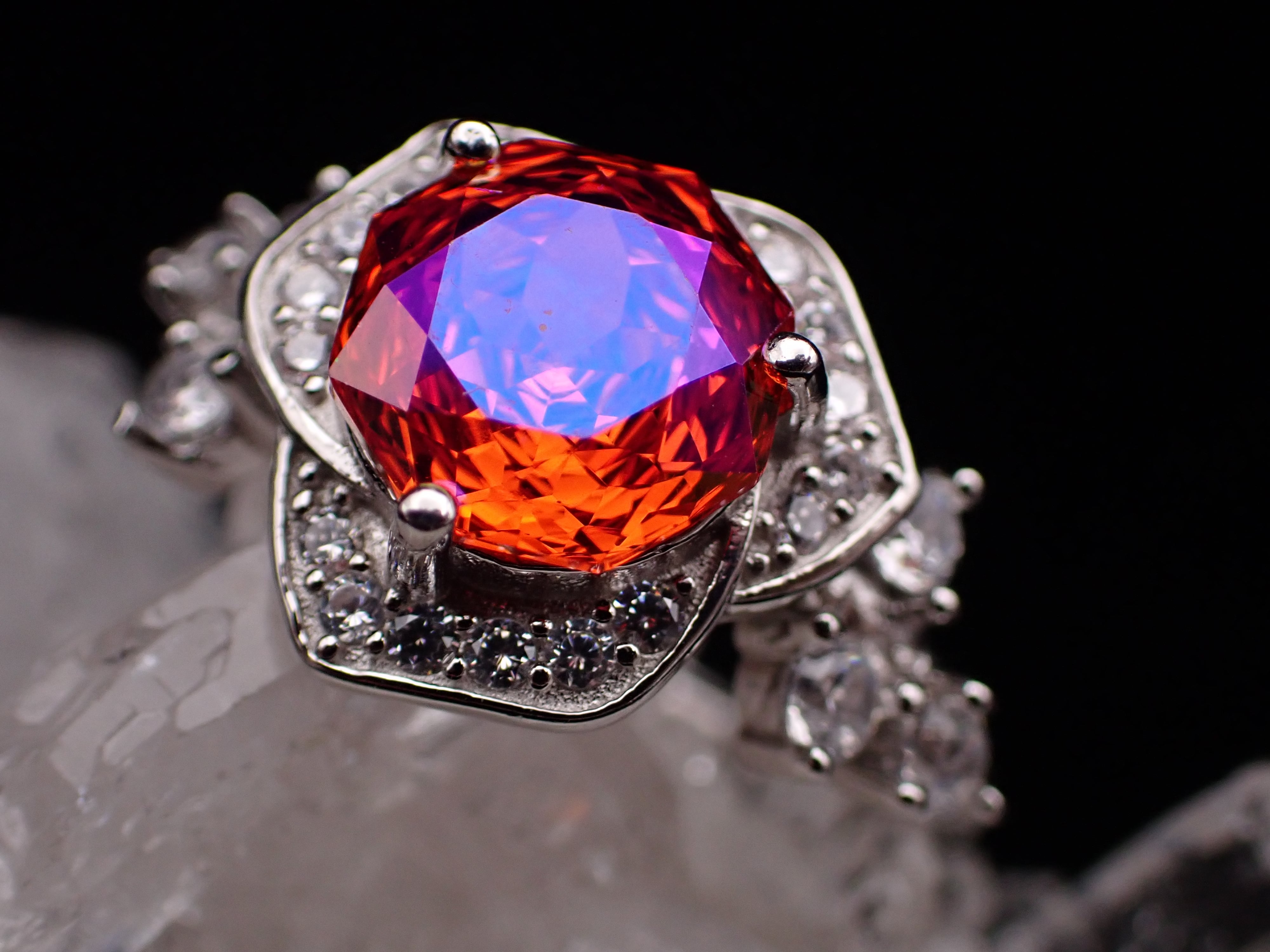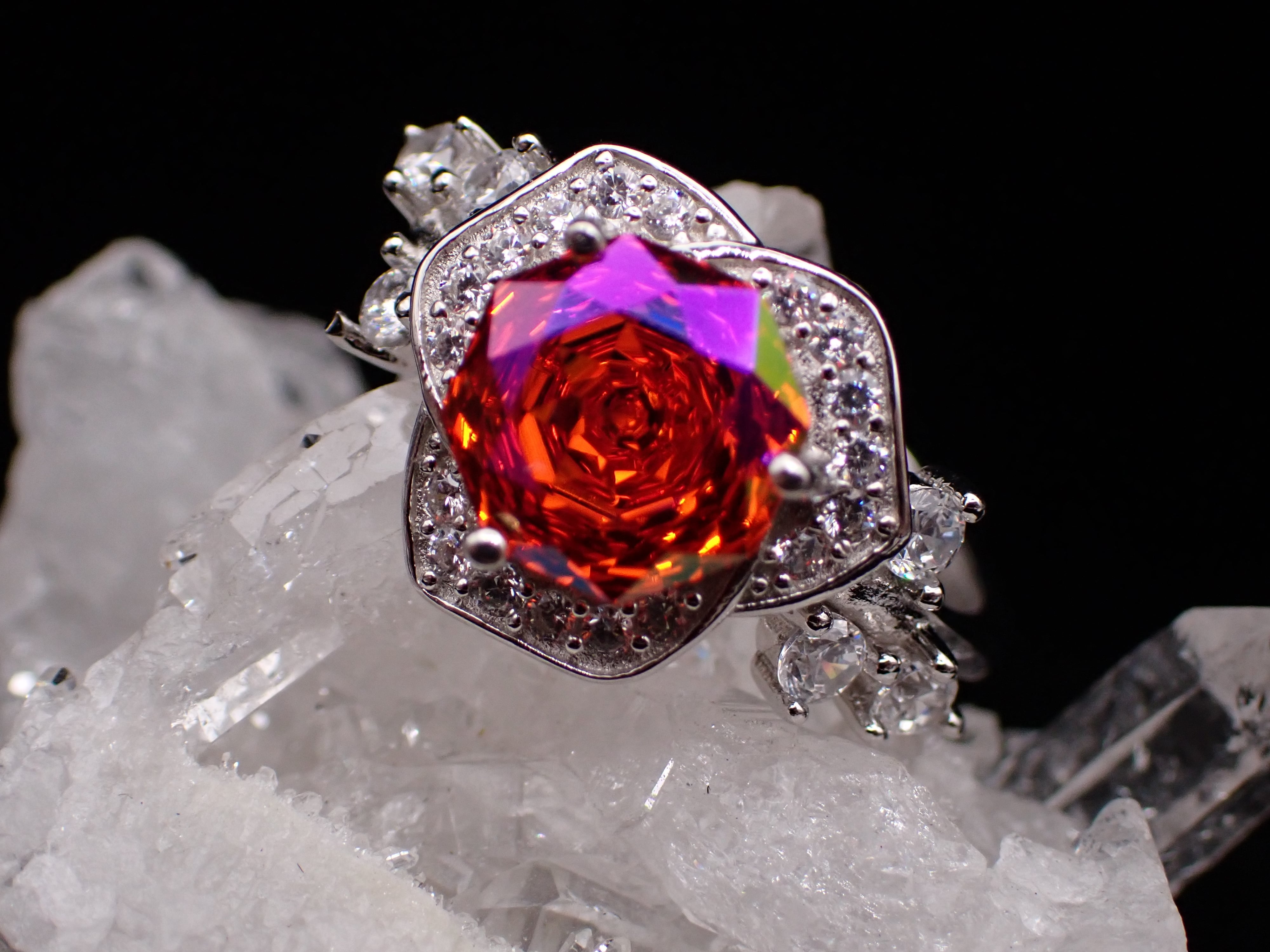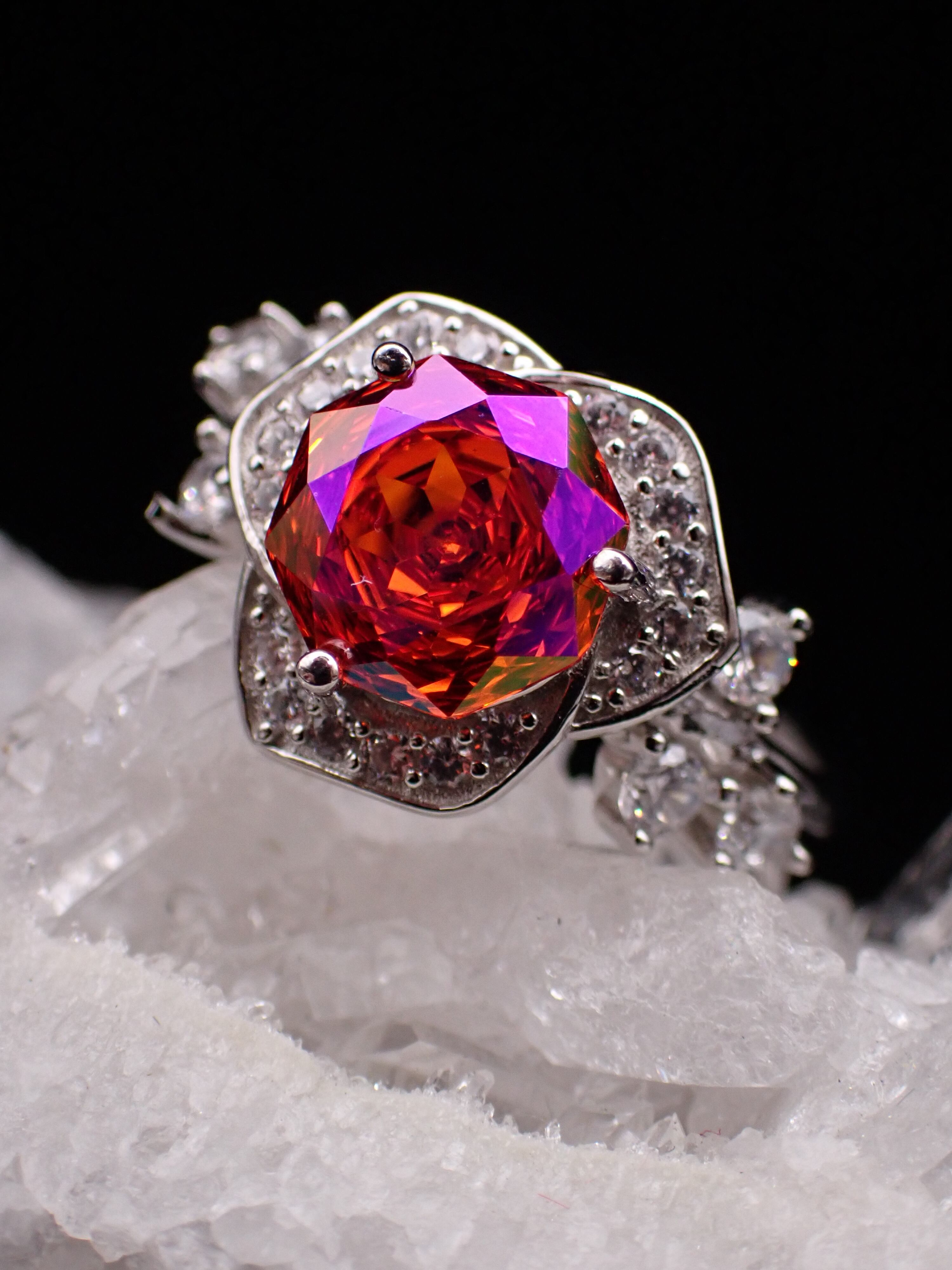 美しいジルコニアの中に8mmの大きな薔薇カットのジルコニアが豪華に輝きます。