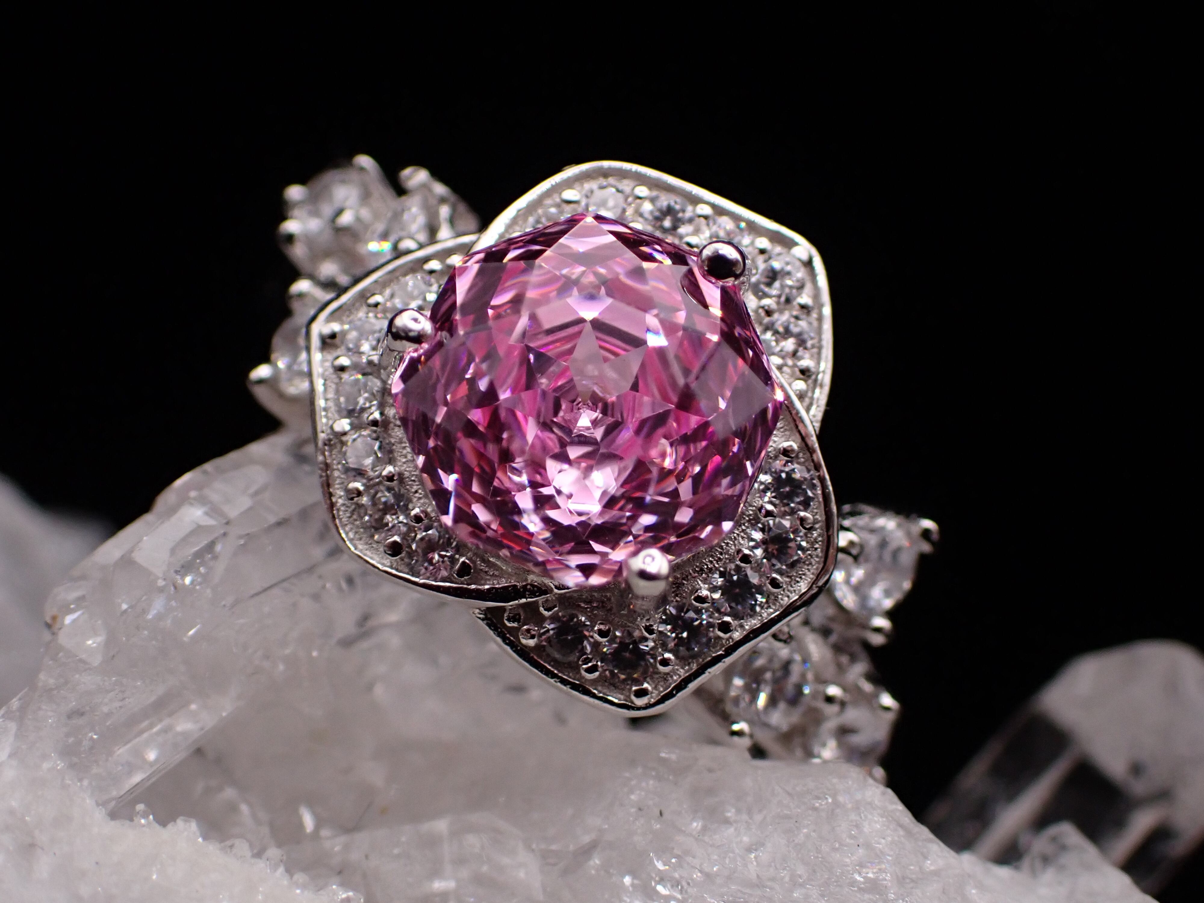 美しいジルコニアの中に8mmの大きな薔薇カットのジルコニアが豪華に輝きます。