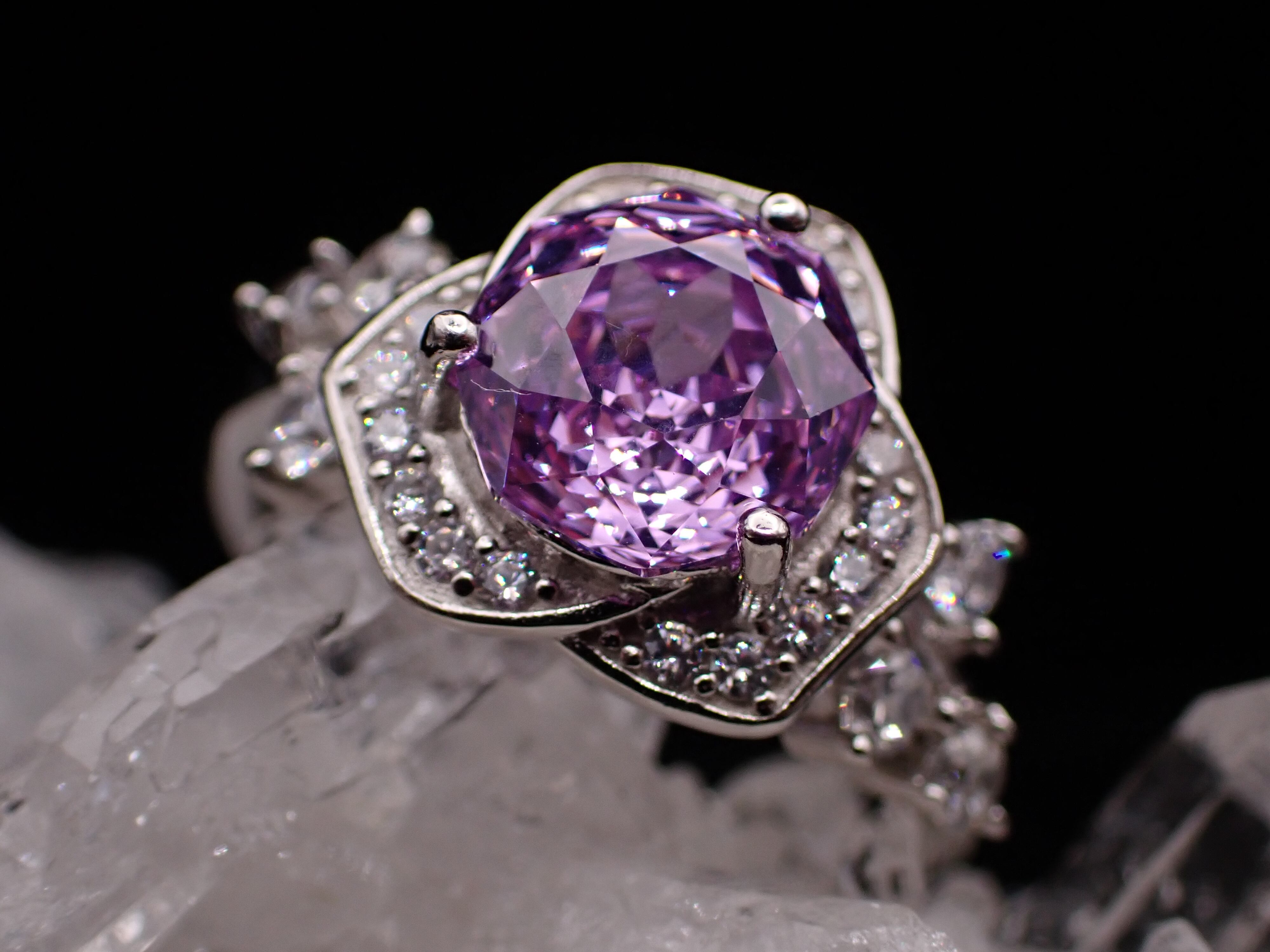 薔薇ring Purple Roseジルコニア フリーサイズリングSV