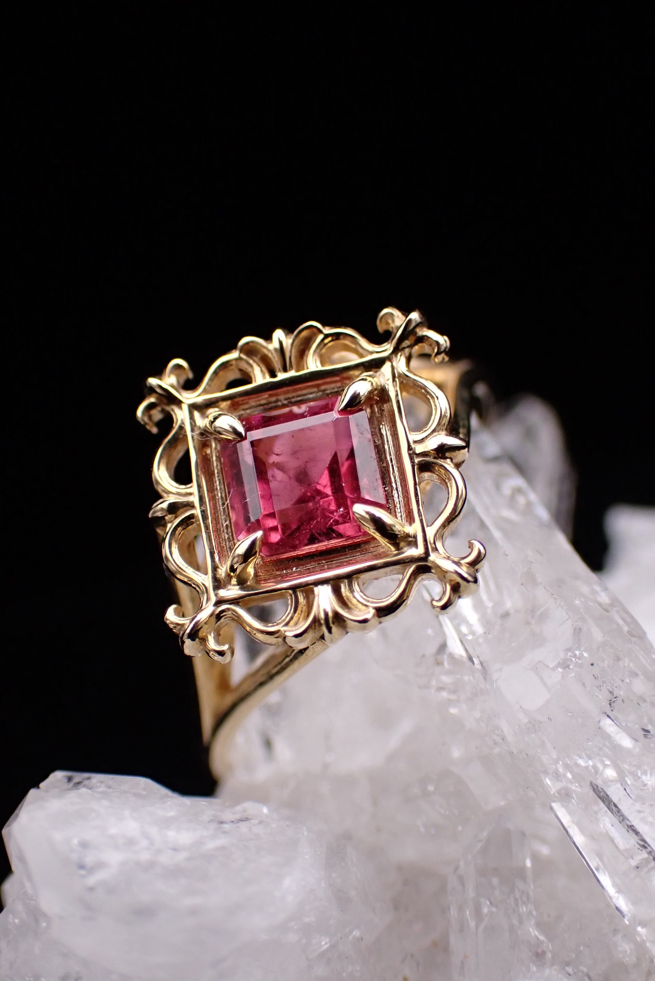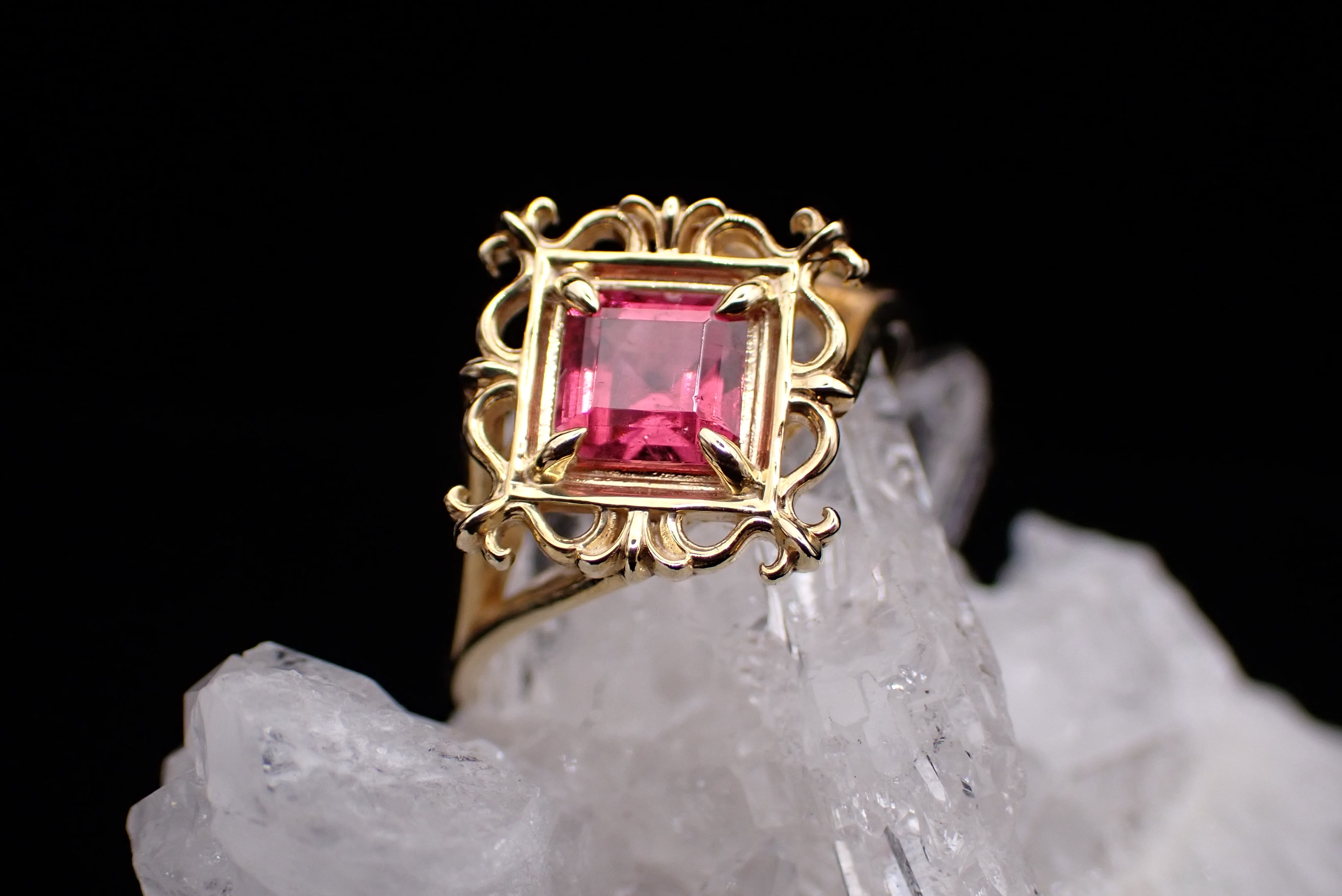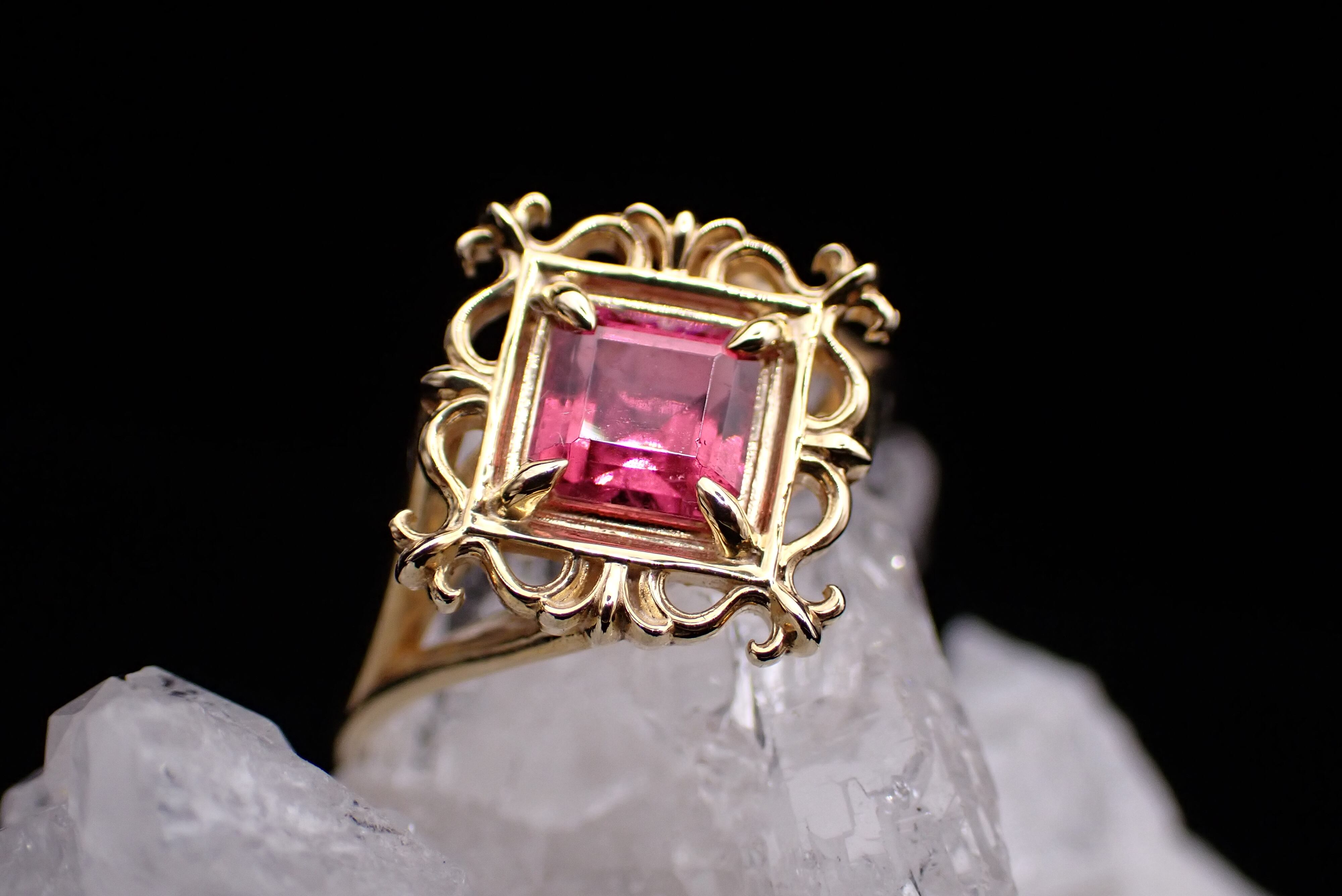 イエローゴールドの高級感と鮮やかなピンクトルマリンがお指を美しく魅せてくれます。