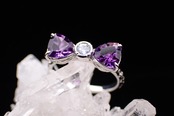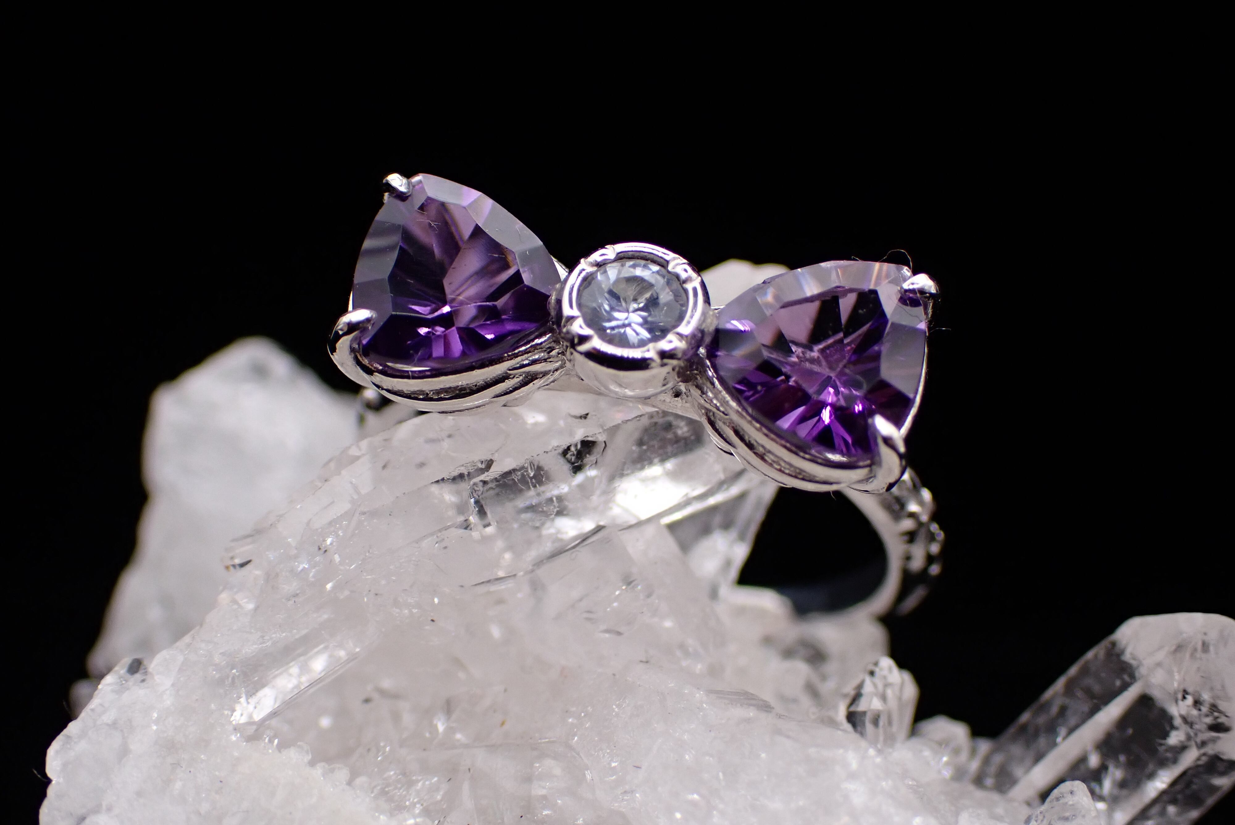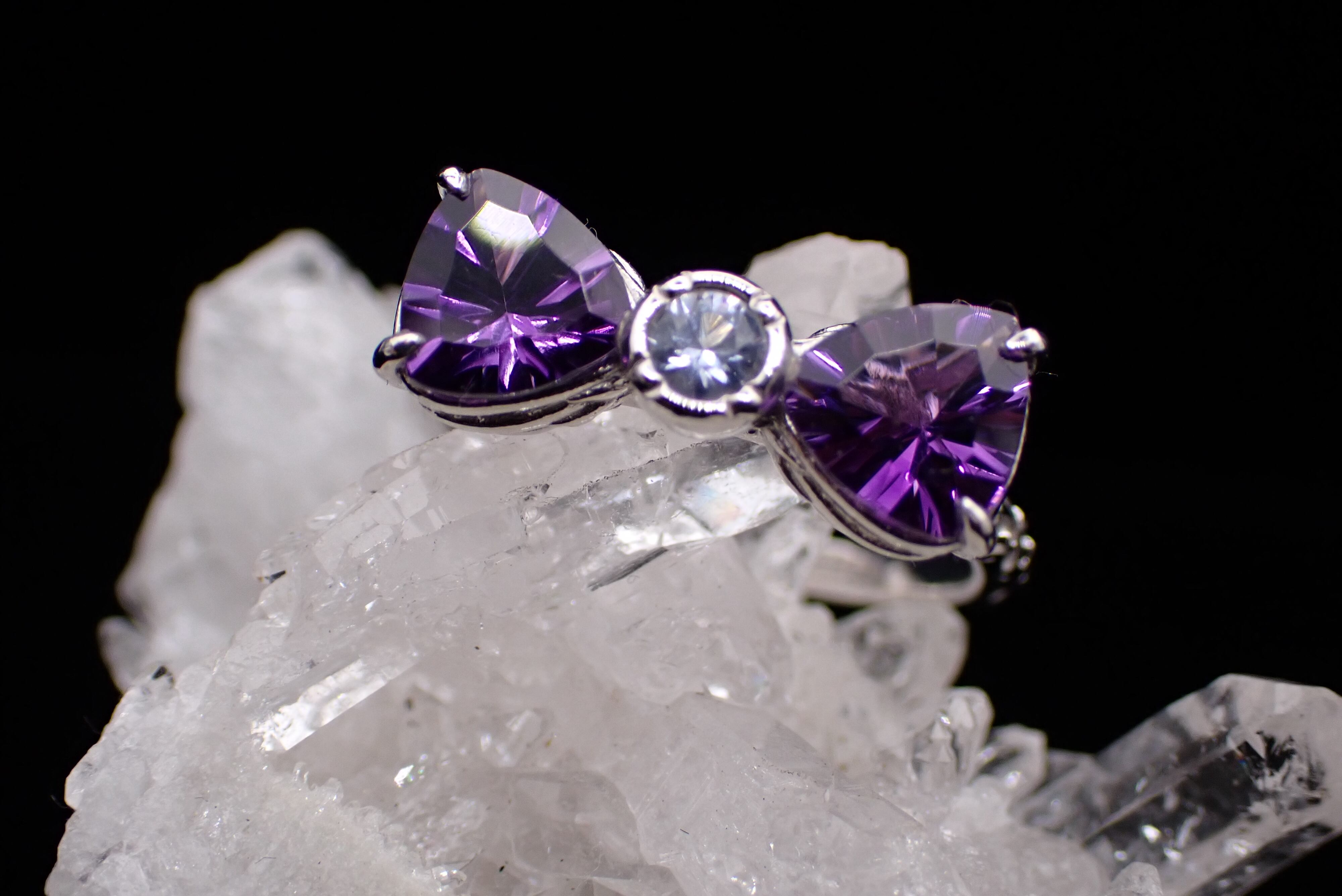 中央はアメジストを引き立てる、coolなカラーのブルーサファイアです。