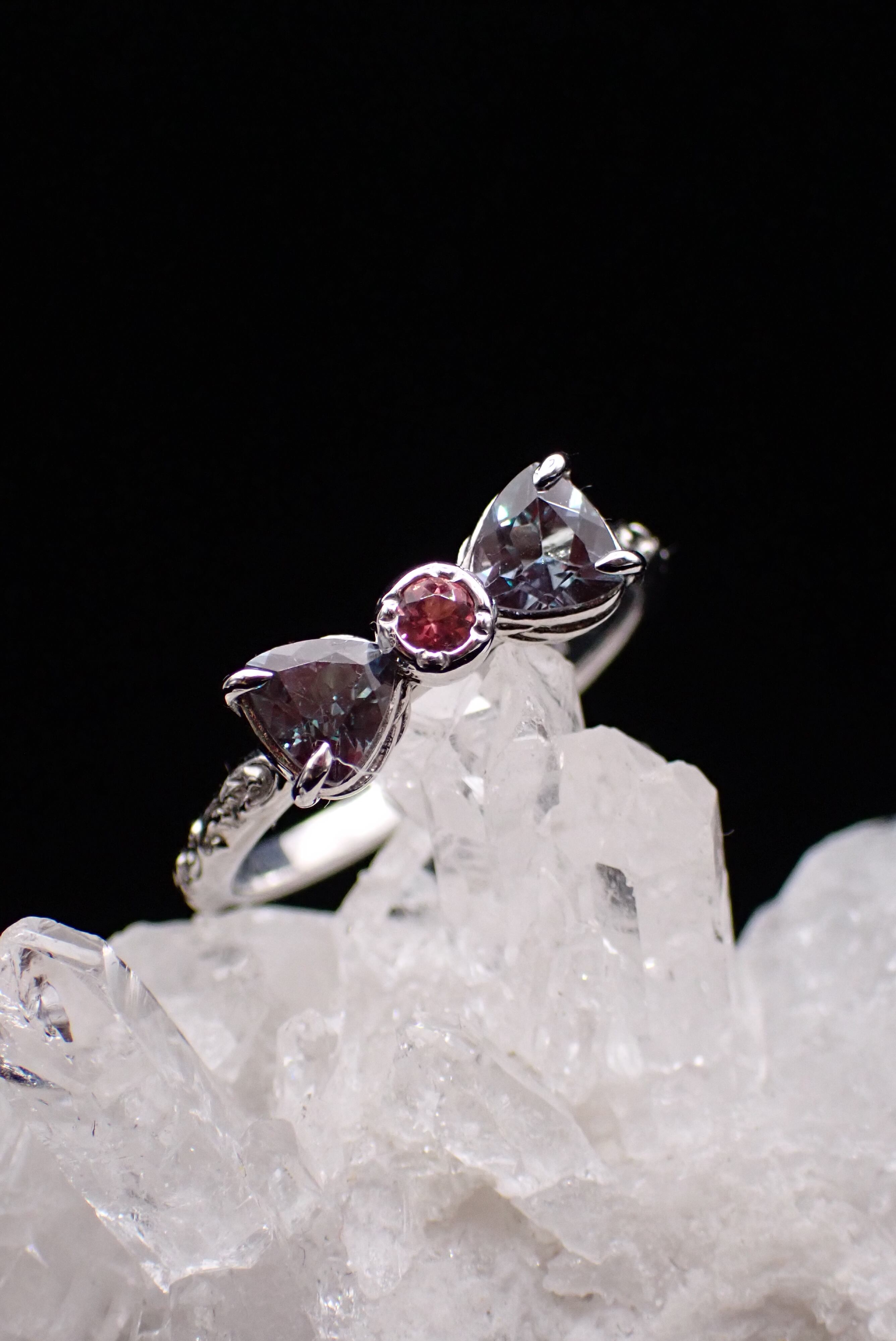 【 R.nouveau 】12号 RIBBON 合成アレキサンドライト&ピンクサファイア SVリング