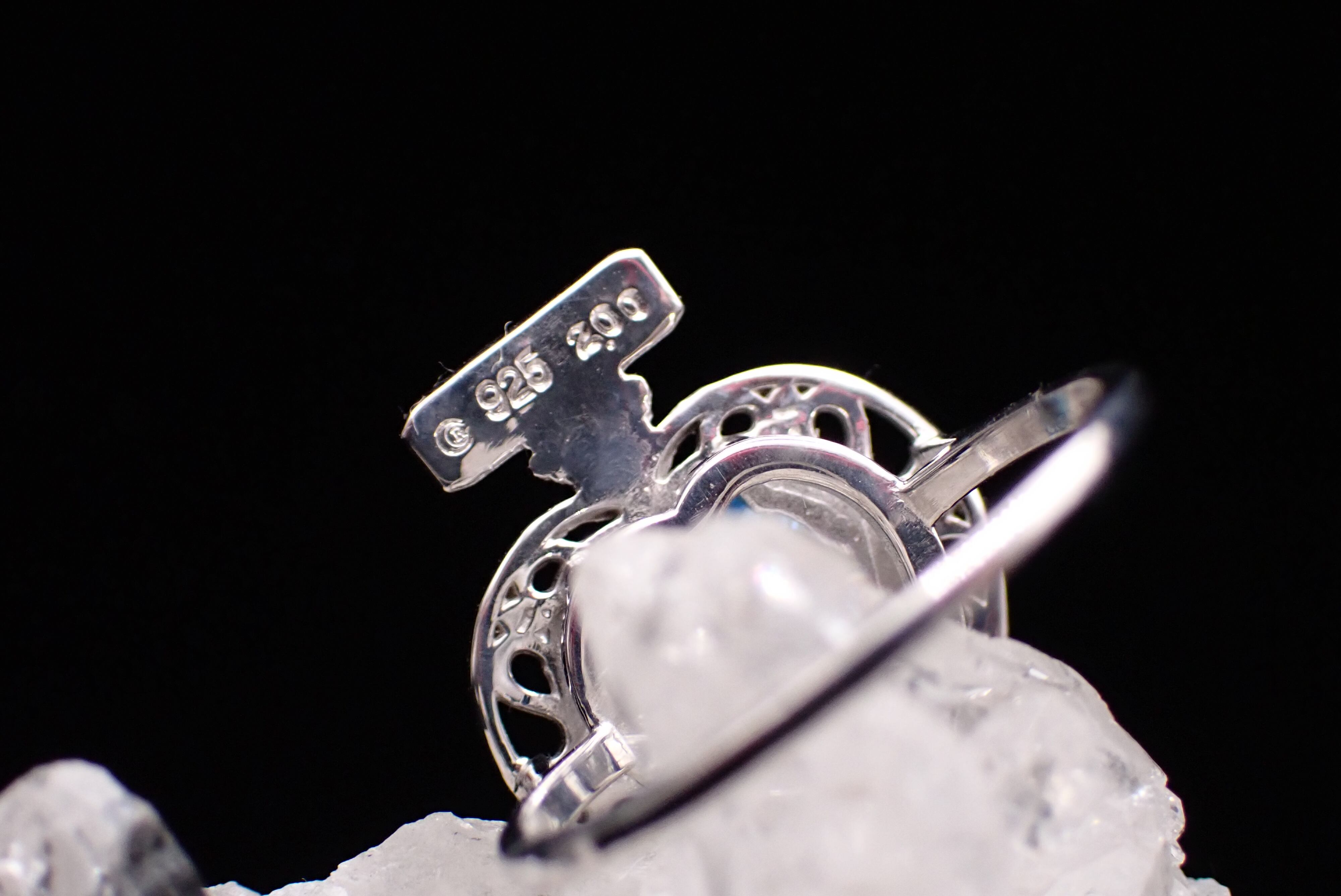 額縁の裏側はフラットにし、石が存分に光を蓄えながらも軽く美しいリングとなっています。