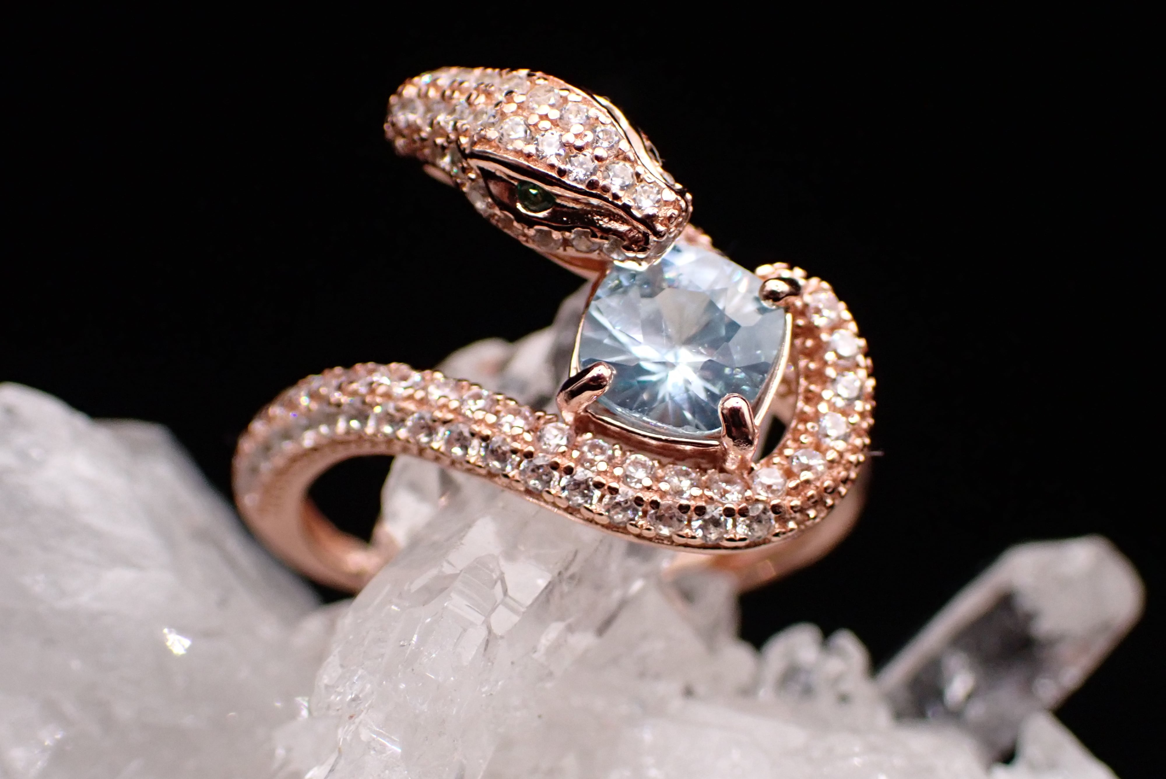 今年の干支であり、金運の象徴である蛇がキラキラと輝いて指に巻き付く縁起の良いリングです。