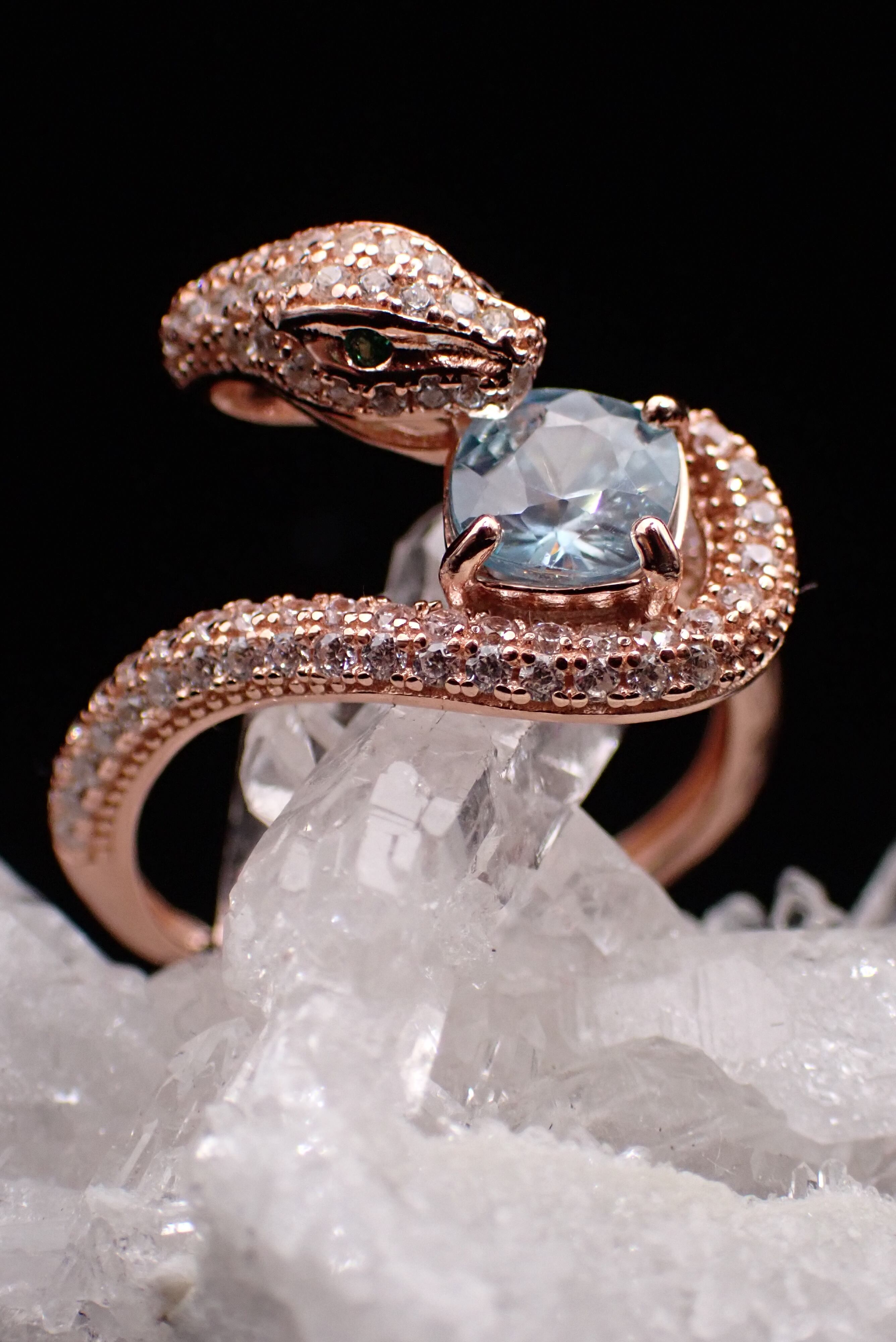 square 蛇 ring ブルージルコン フリーサイズリングPG