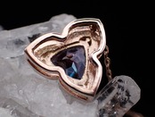 まるで石を絵画のように、美しい額縁の中へ合成アレキサンドライトを納めました。