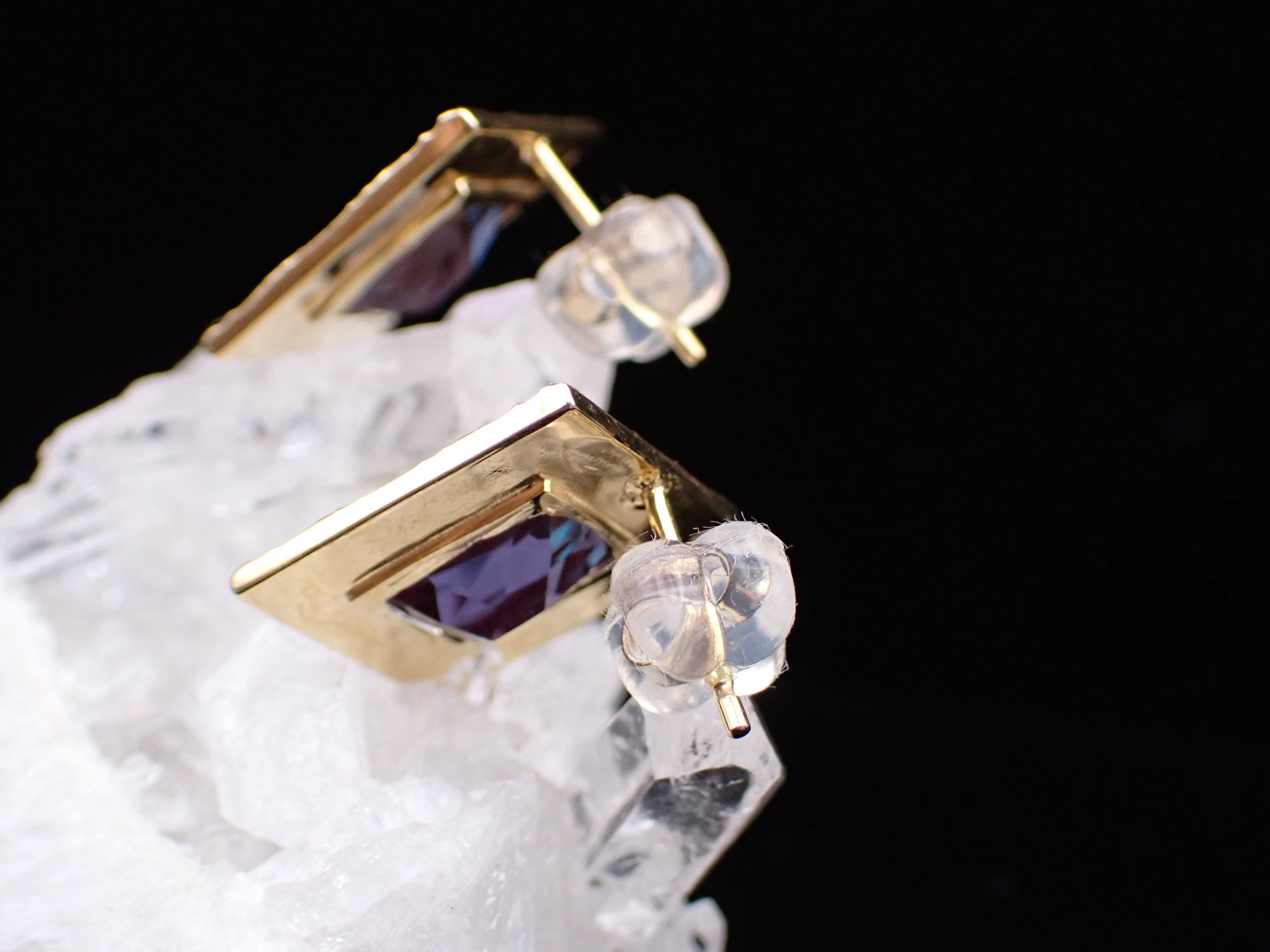 【 R.nouveau 】額 合成アレキサンドライト ピアスYG 13号