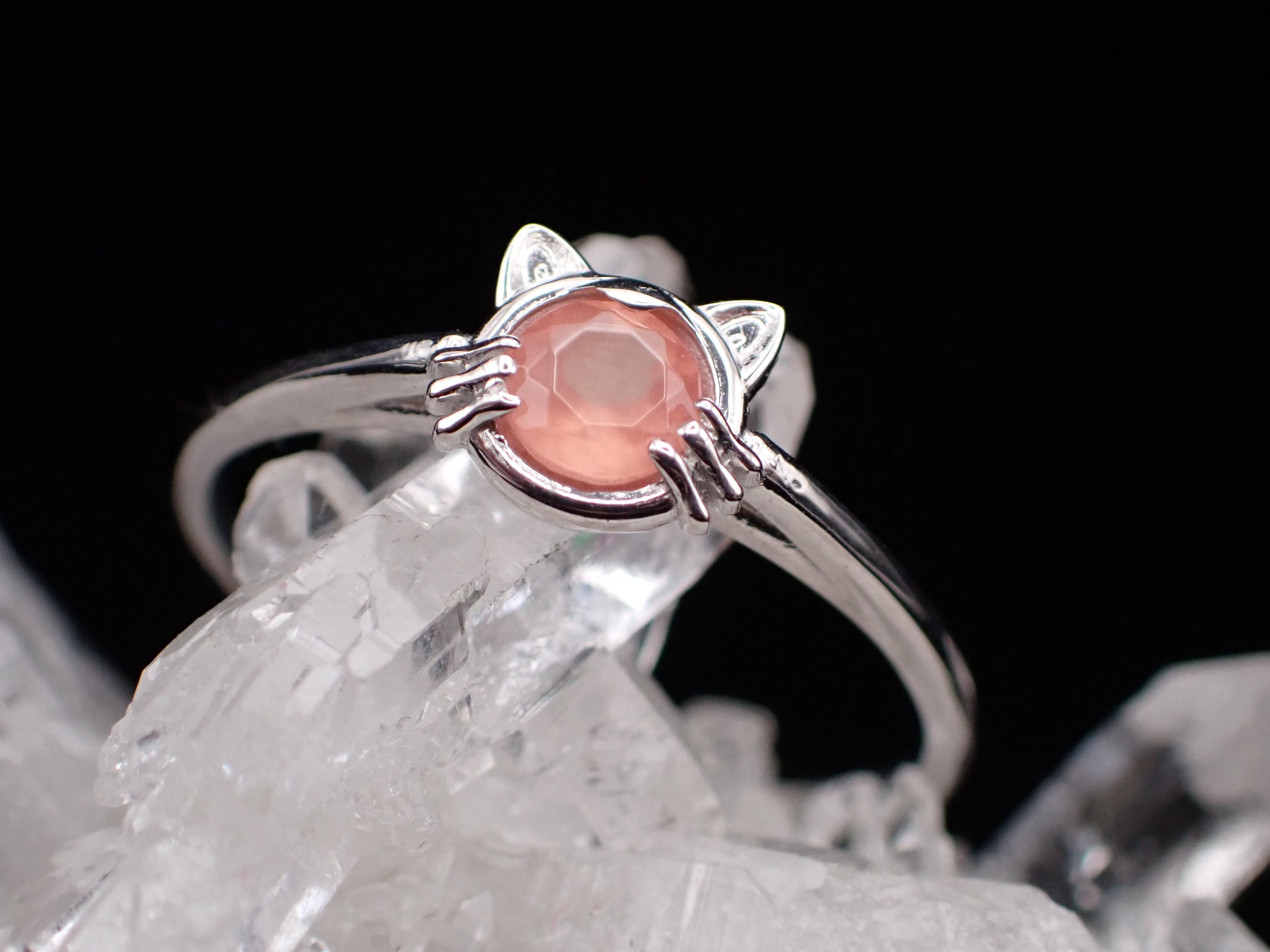 中央のストーンは柔らかい輝きが可愛らしいロードクロサイト。