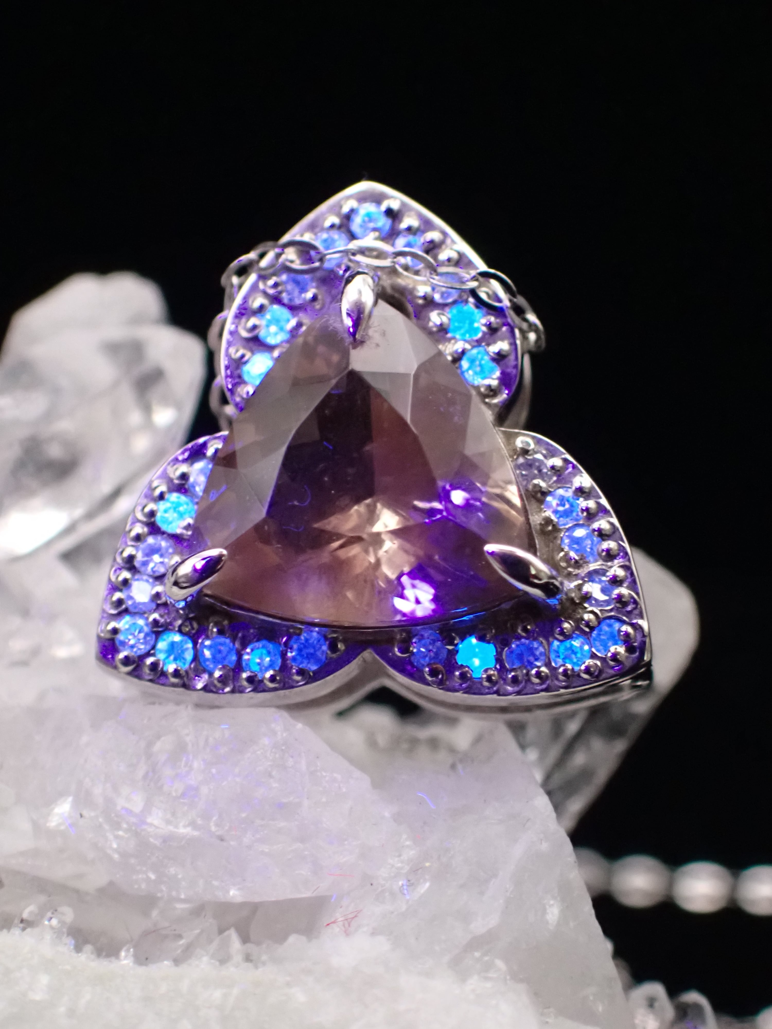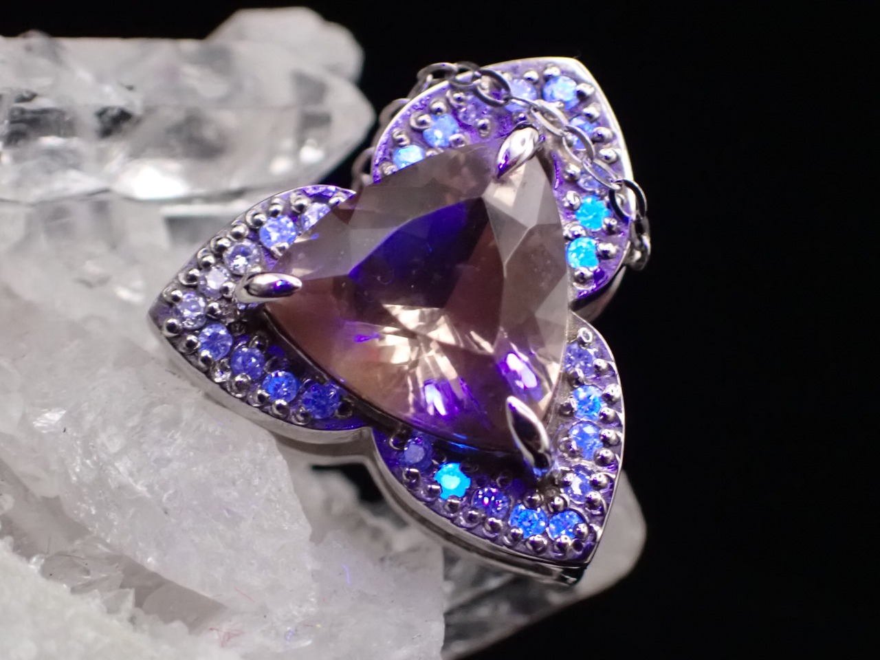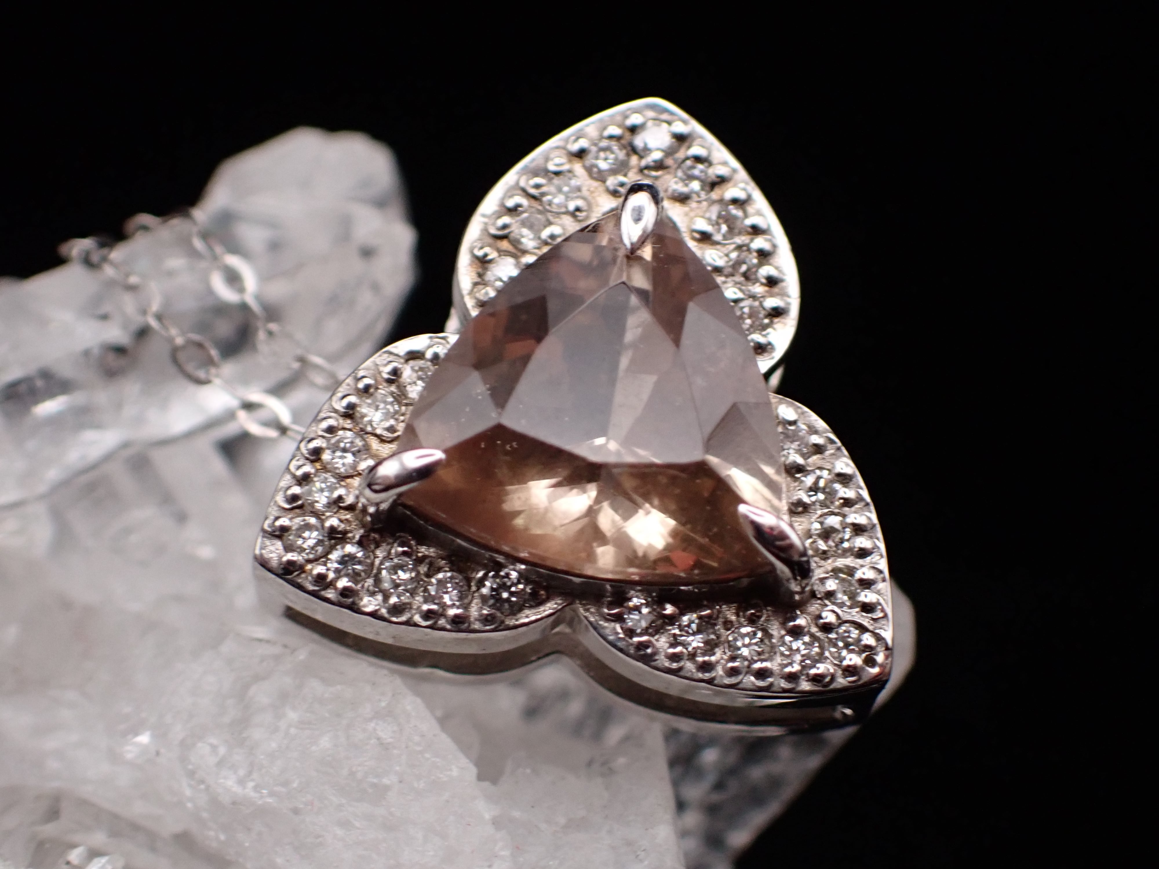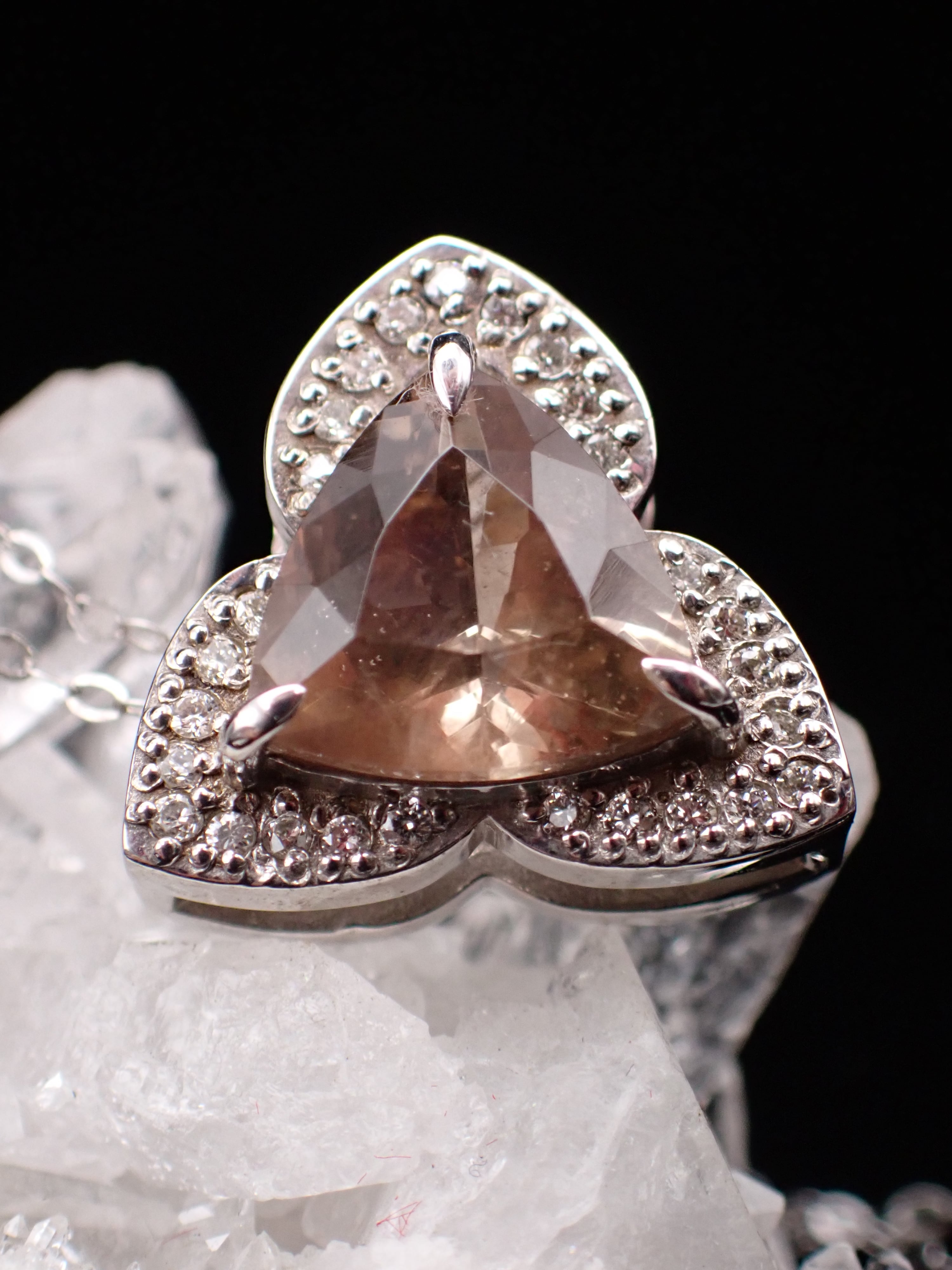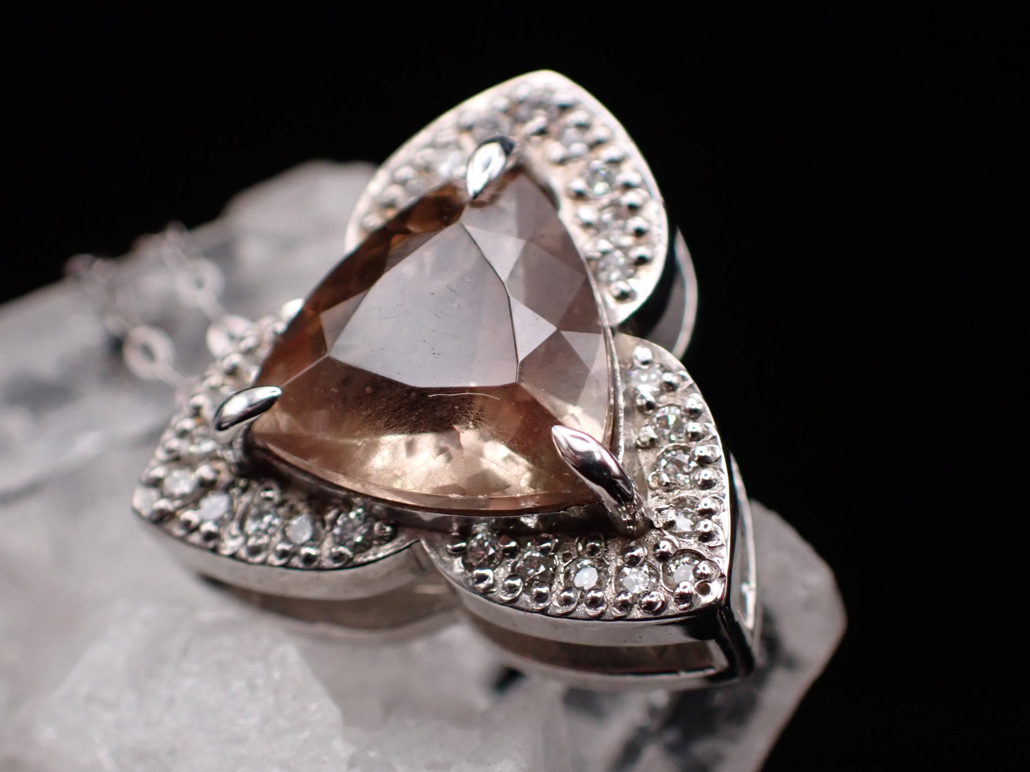 まるで石を絵画のように、美しい額縁の中へうるうるとした輝きのインペリアルトパーズを納めました。