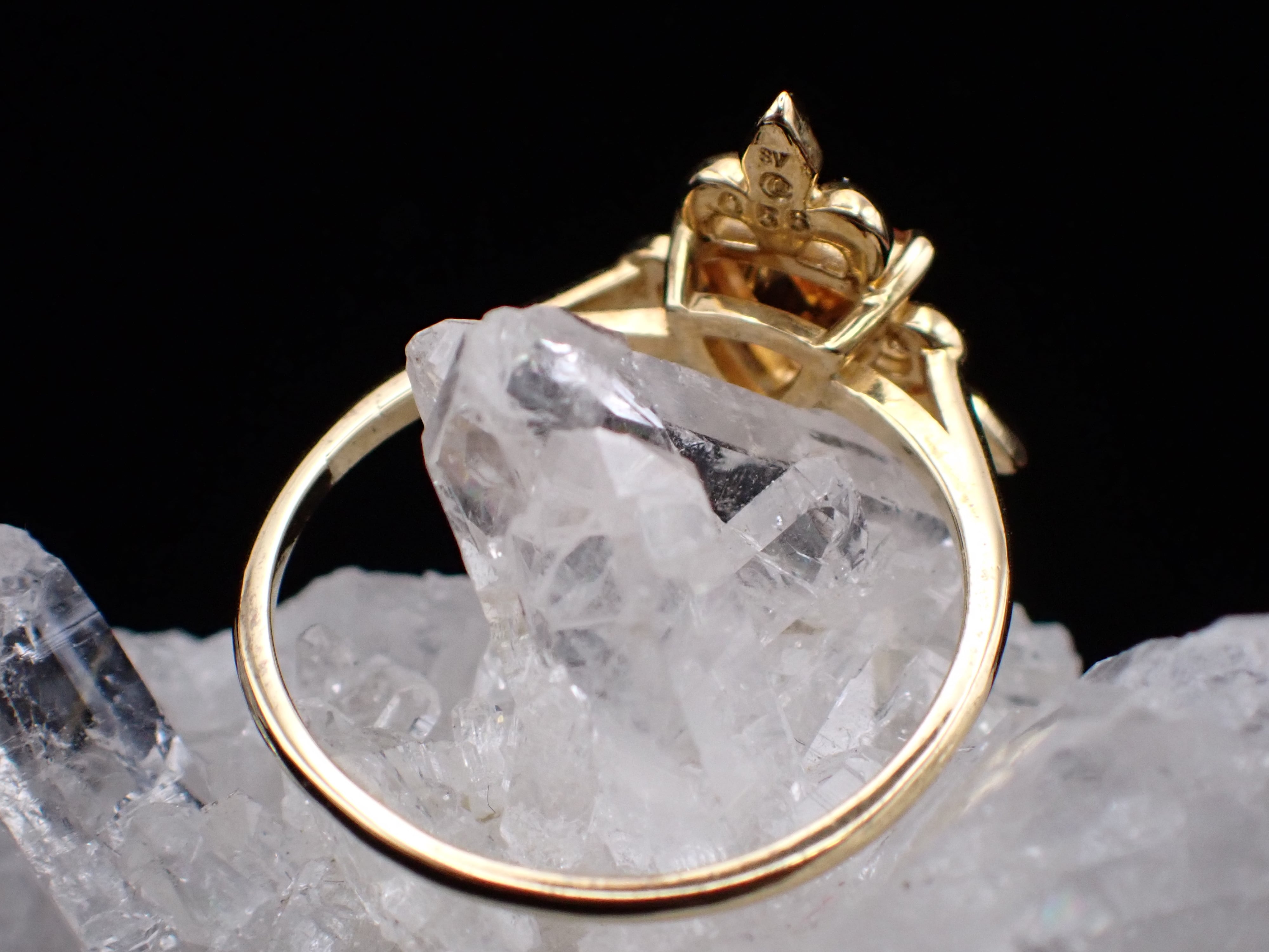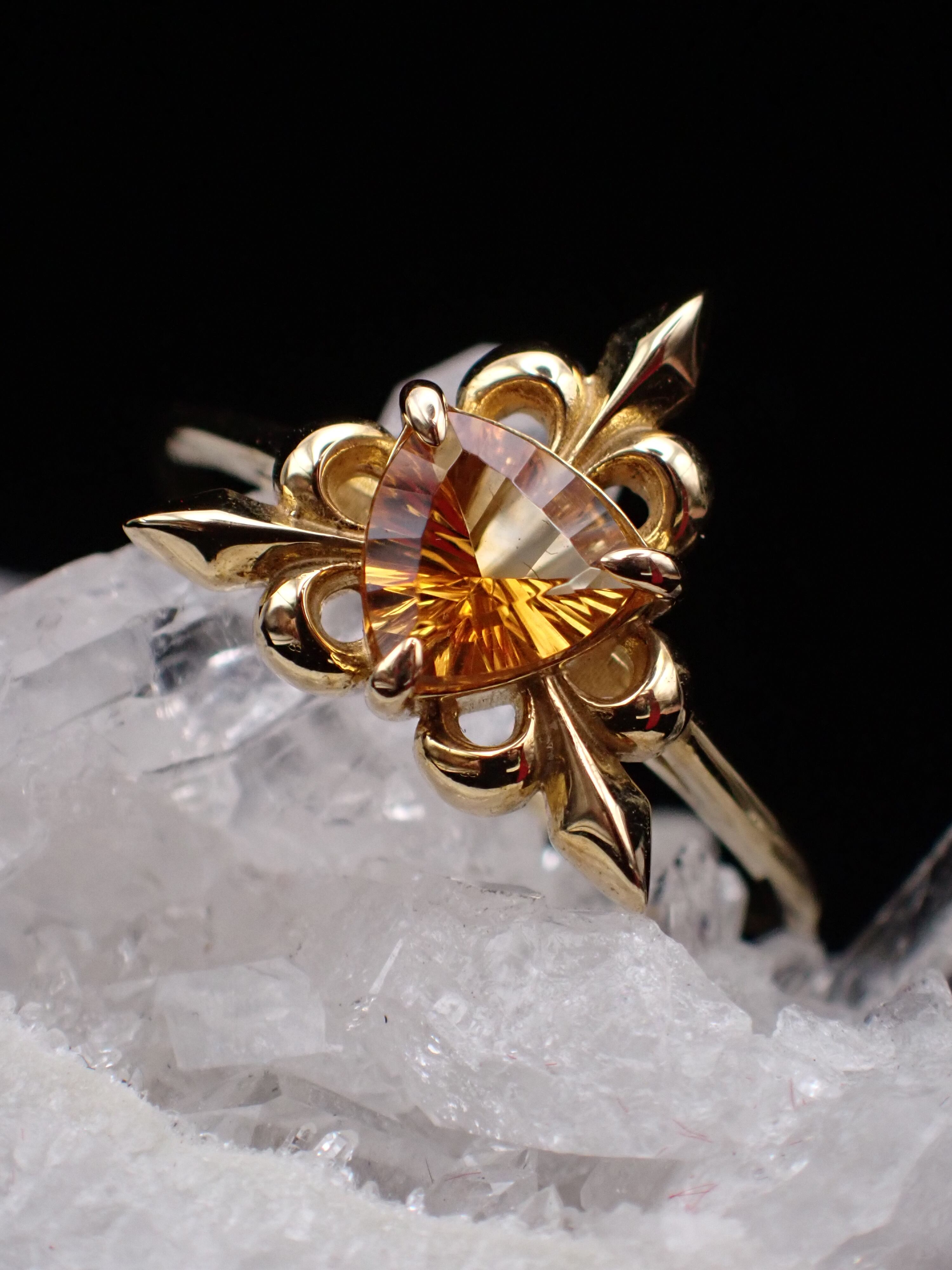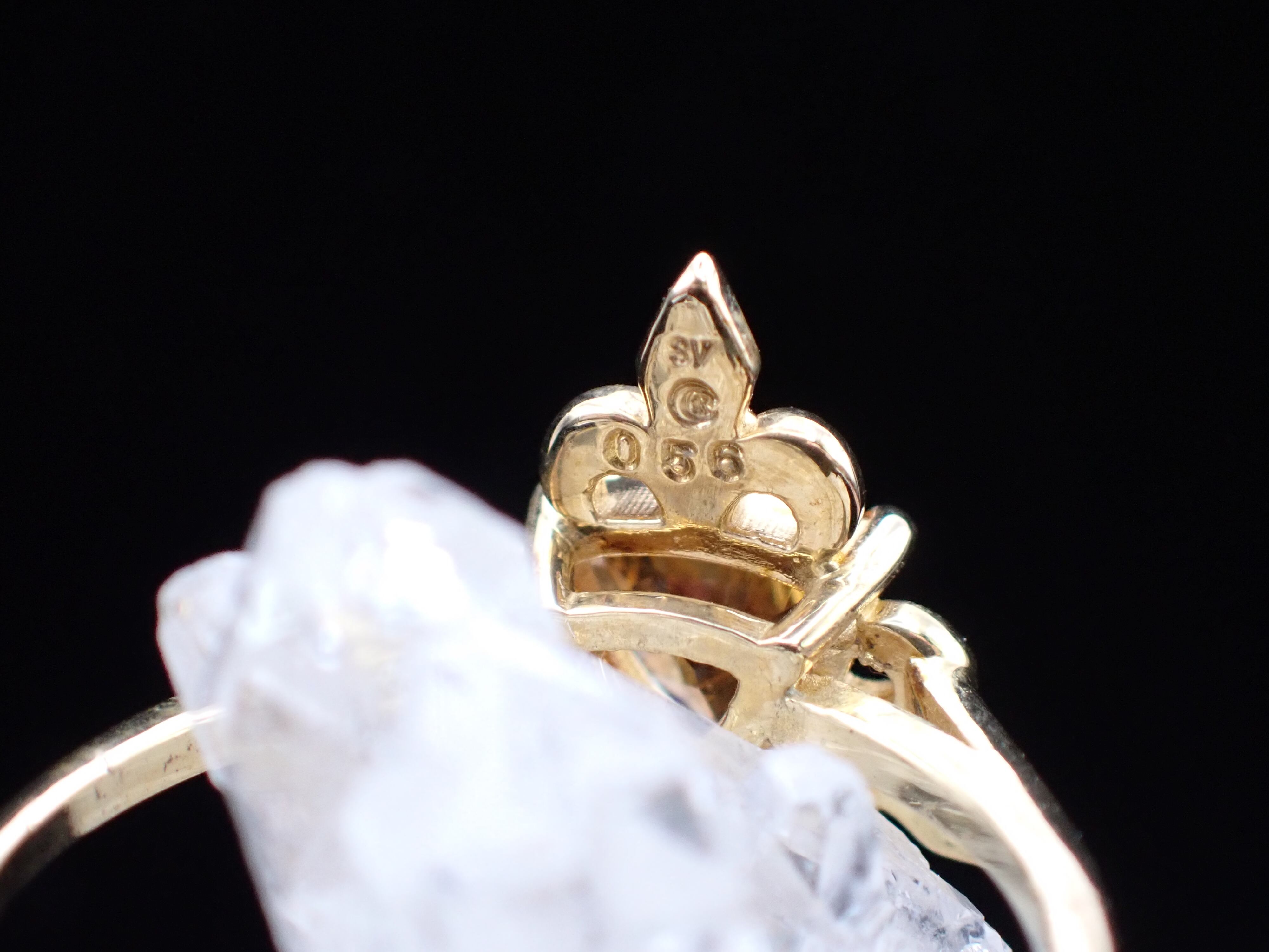まるで絵画のように美しい百合模様の額縁に、コンケーブカットのシトリンを納めました。