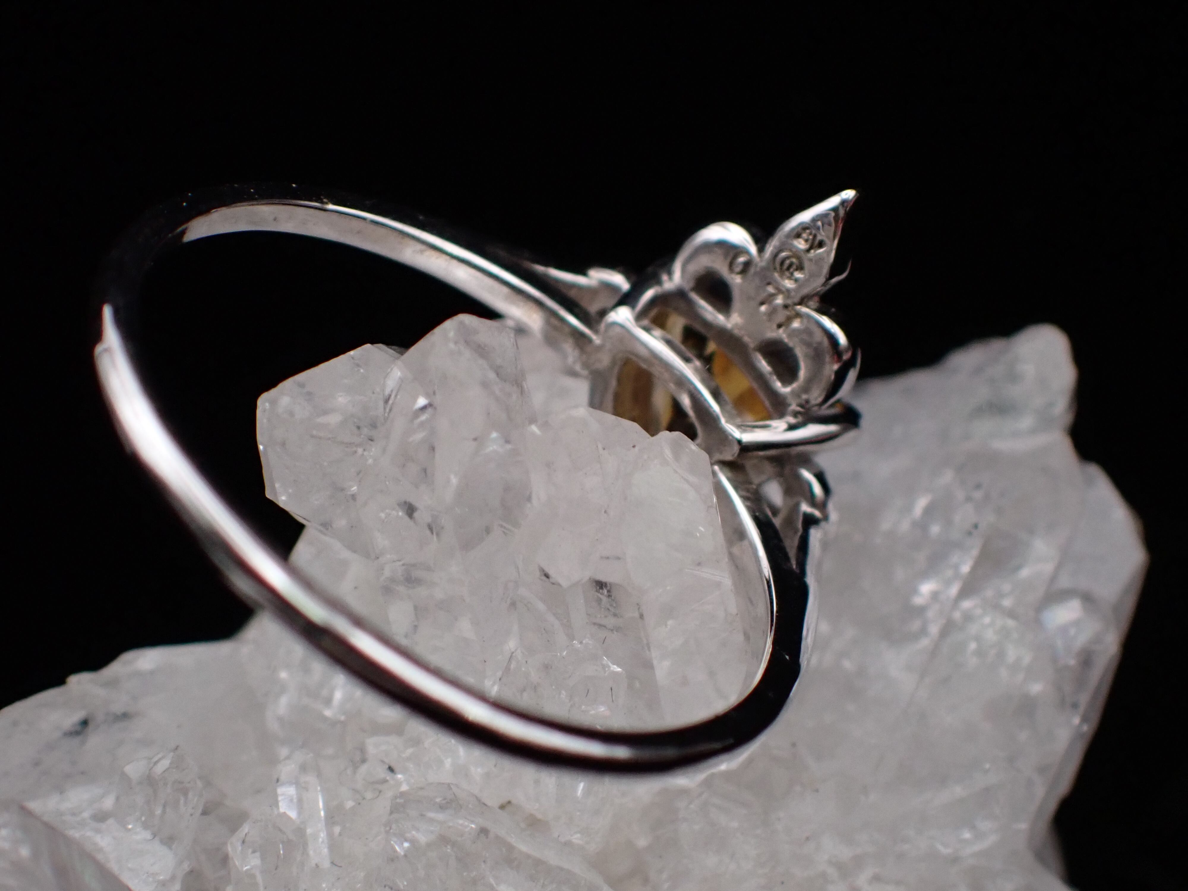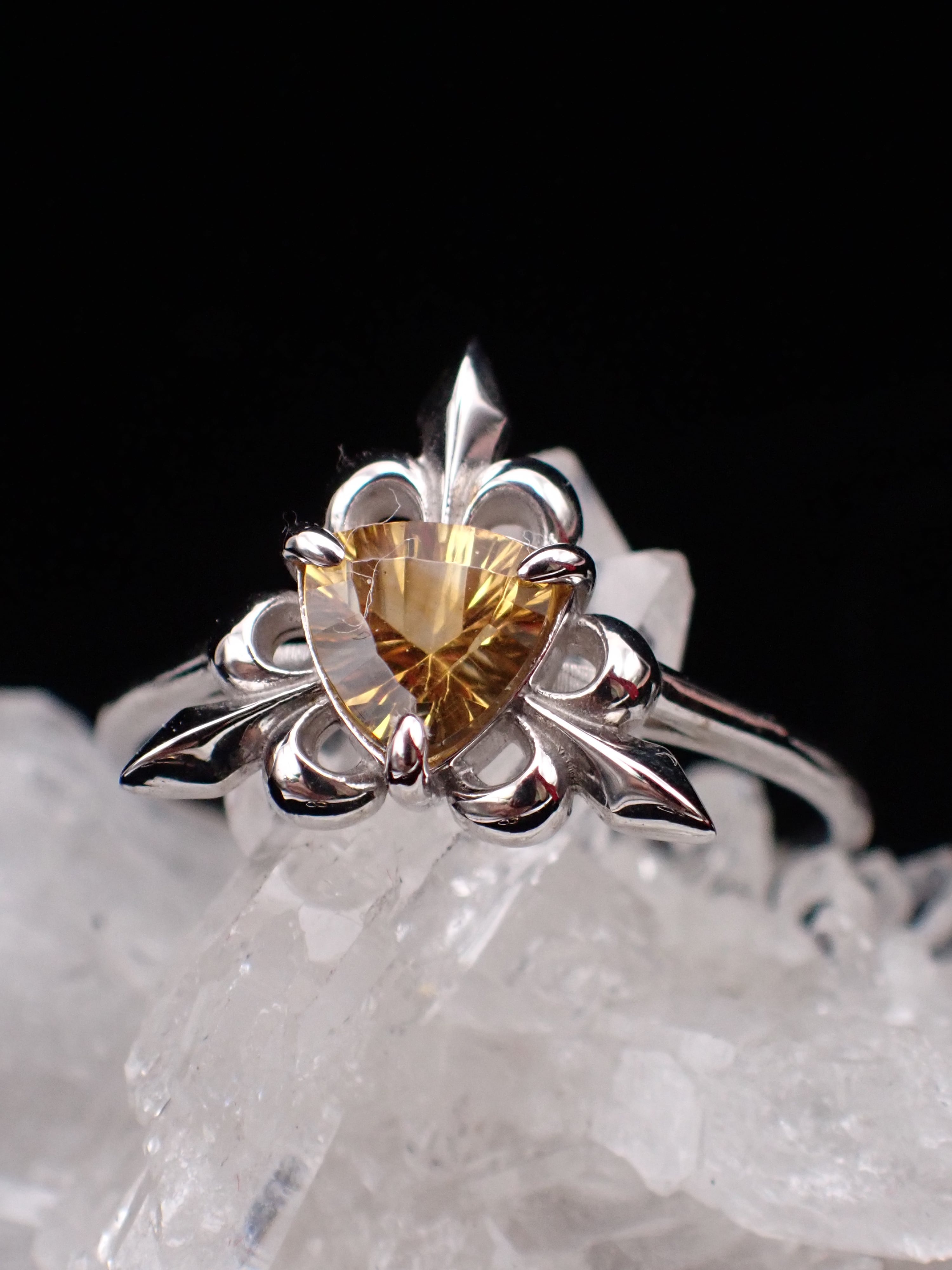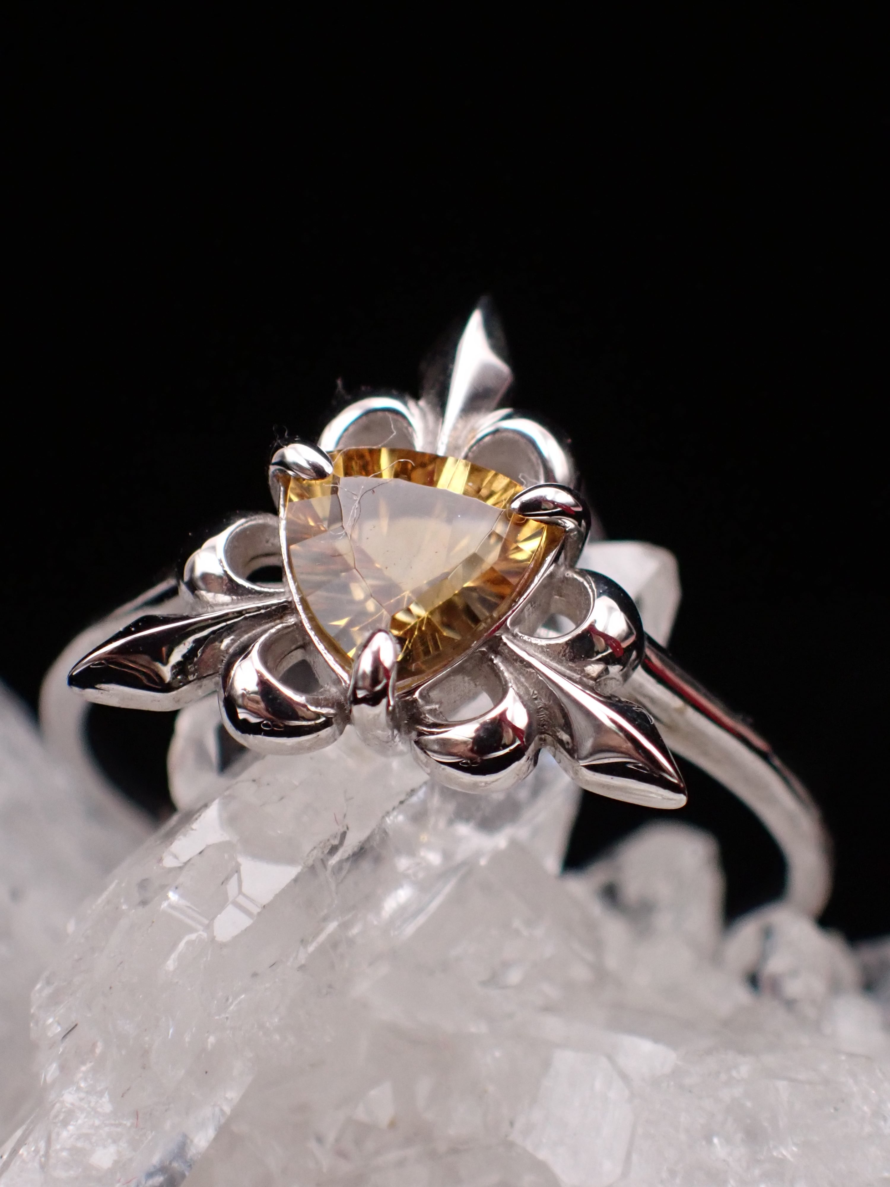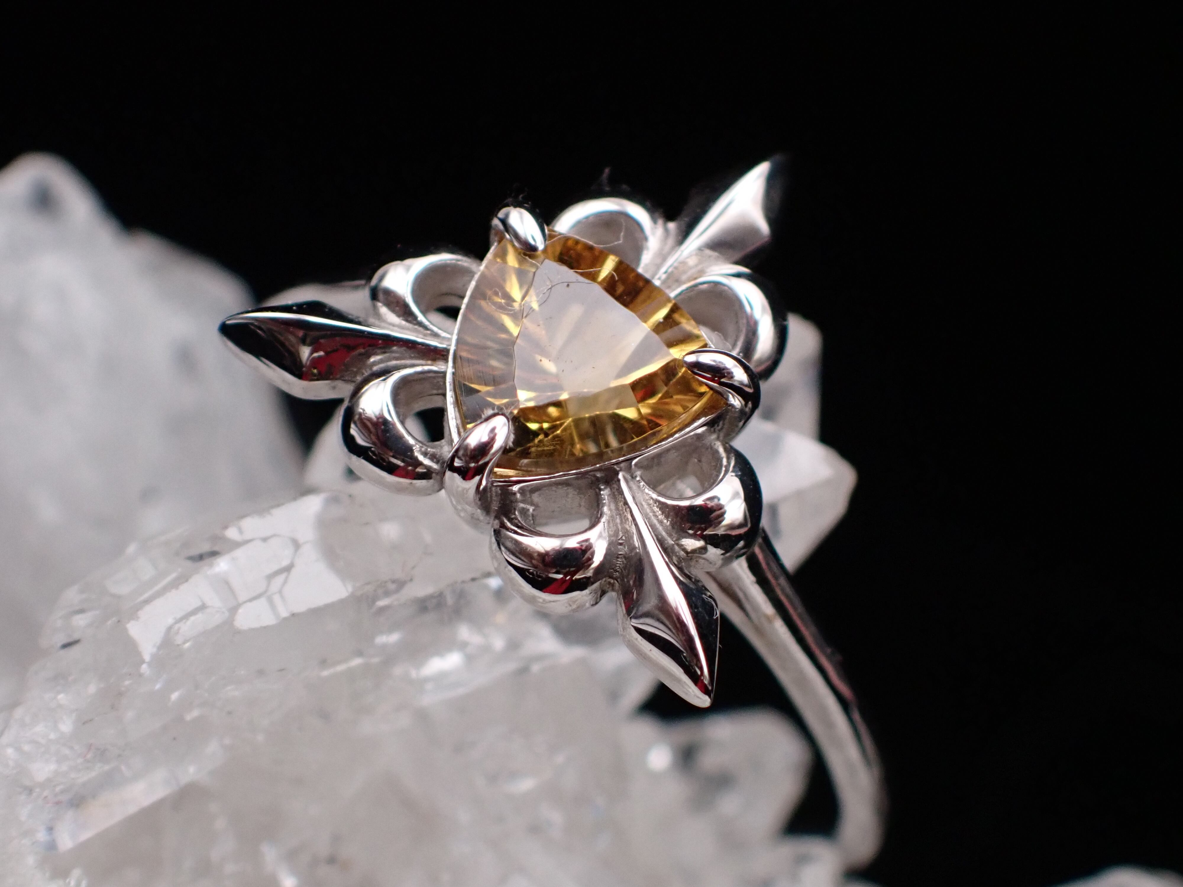 まるで絵画のように美しい百合模様の額縁に、コンケーブカットのシトリンを納めました。