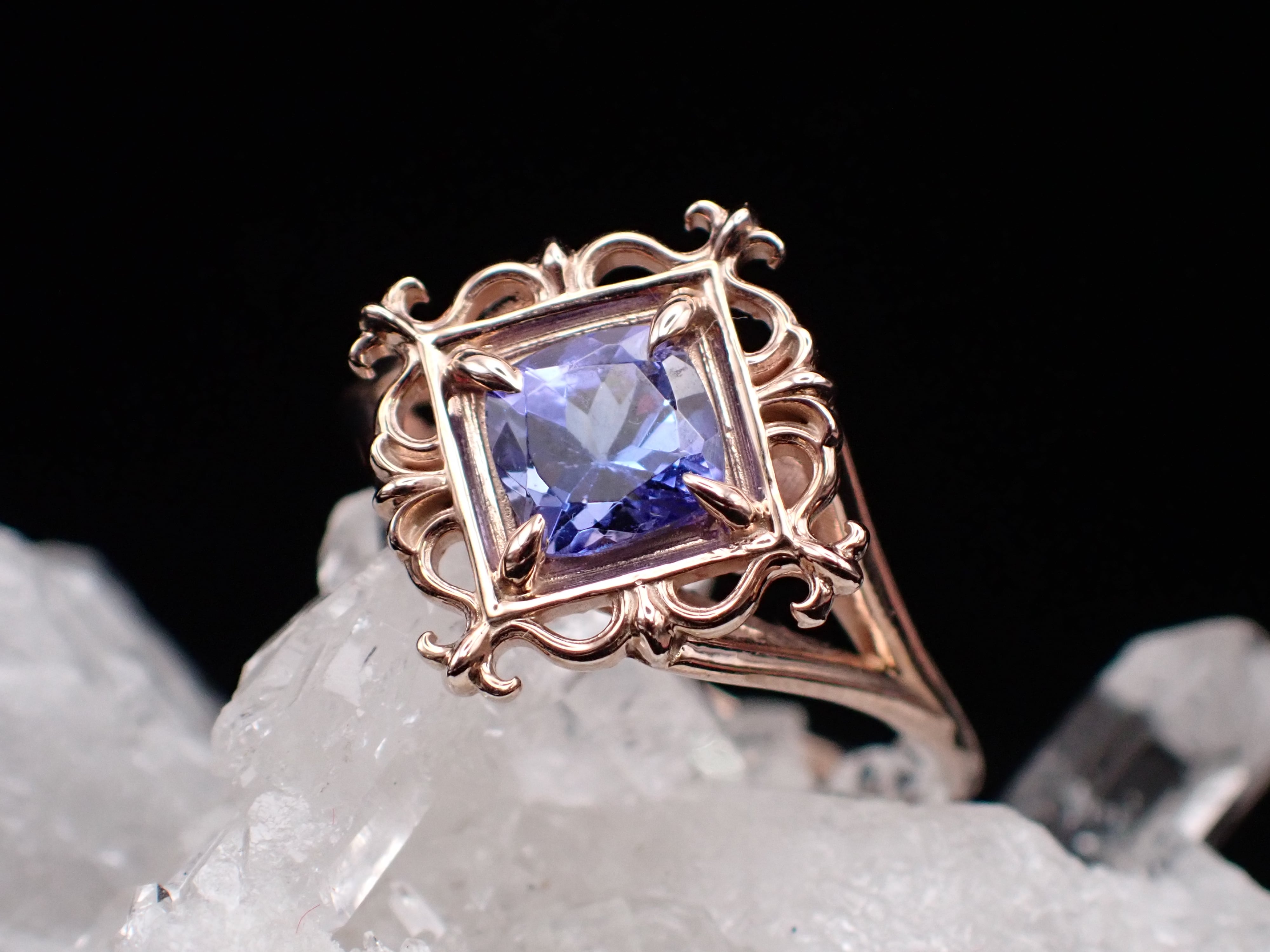 鮮やかなタンザナイトとピンクゴールドの地金がとても相性がよく、お指を美しく魅せてくれます。
