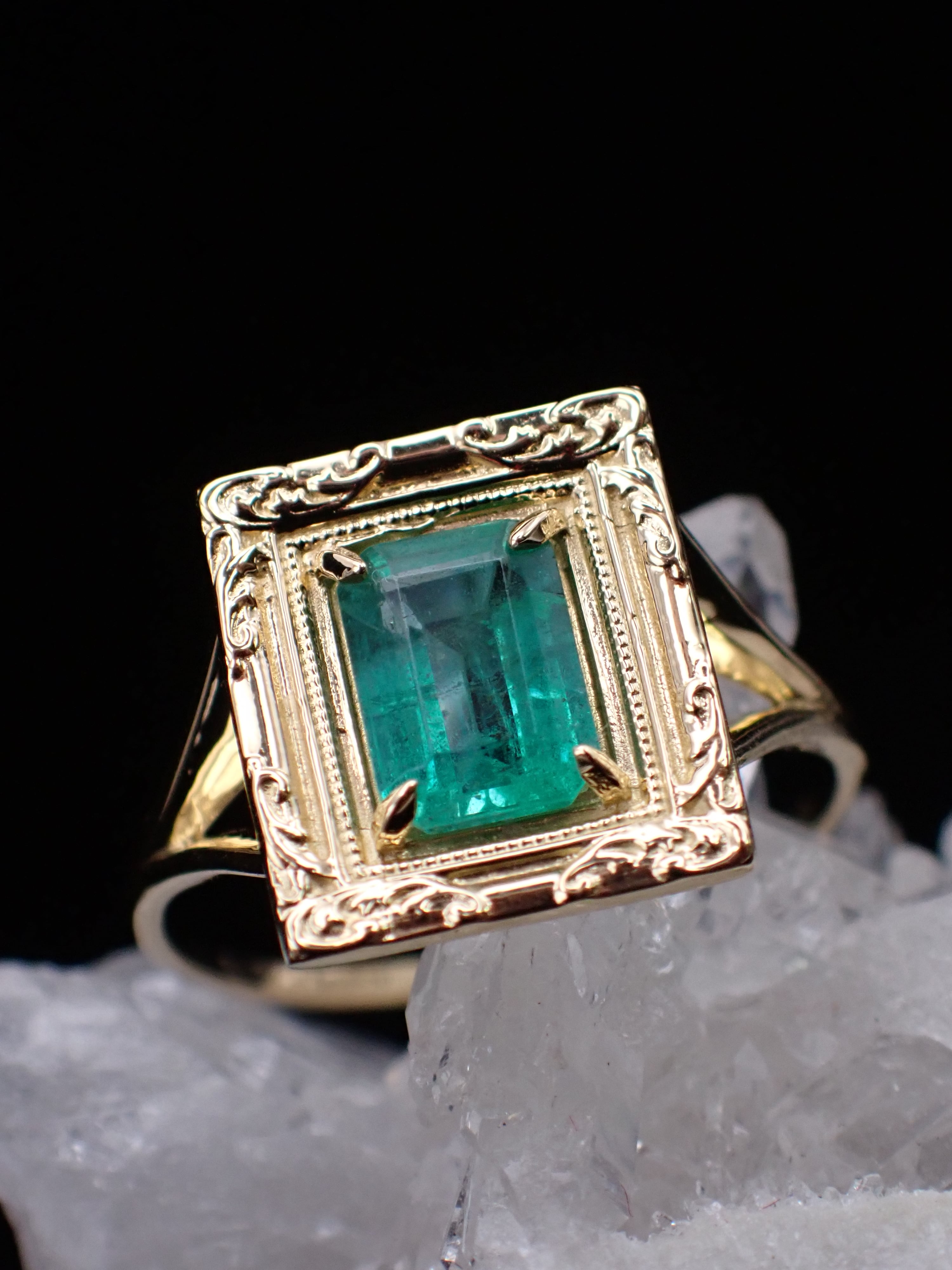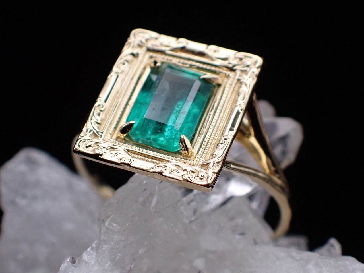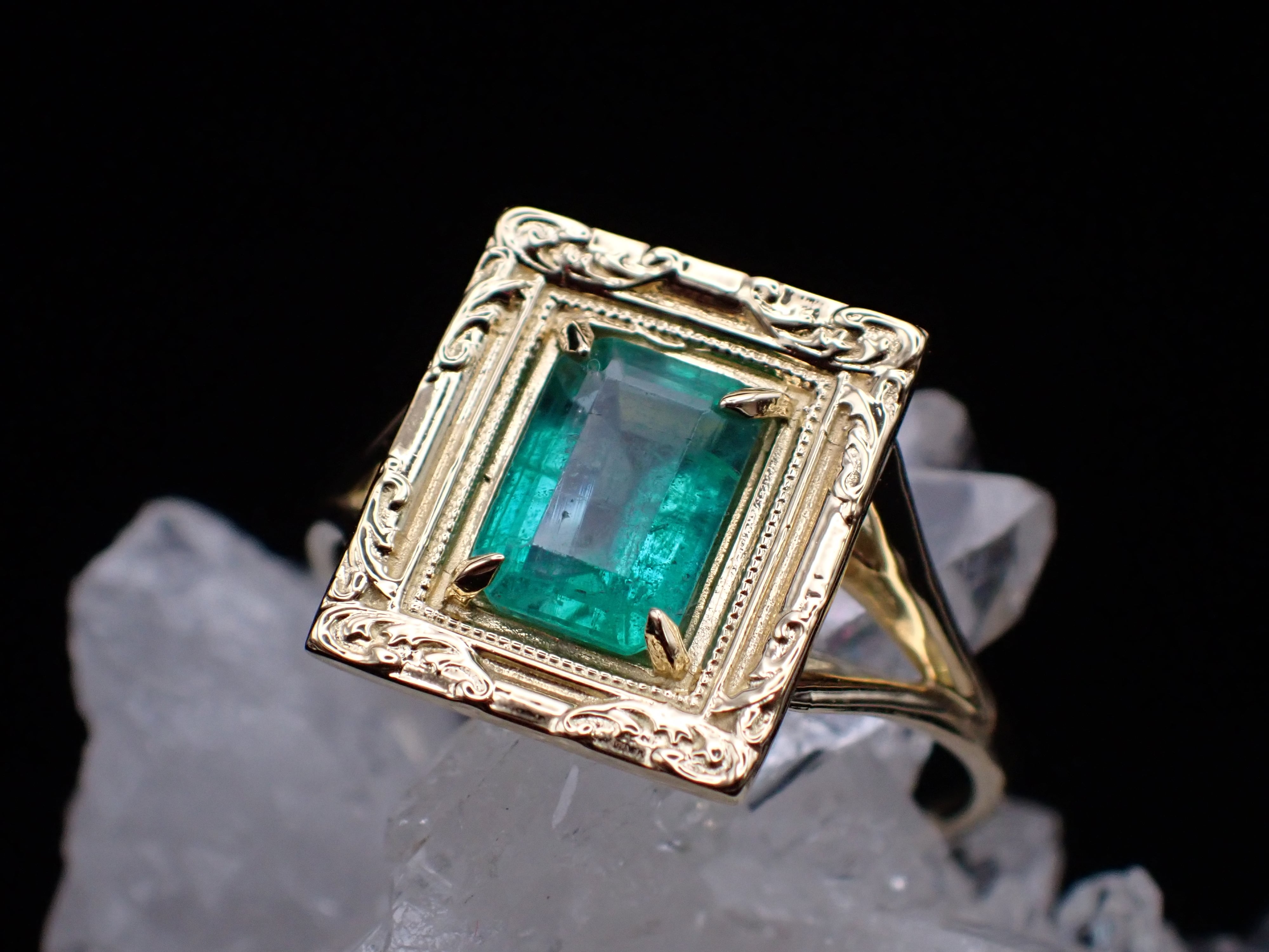 【 k18 R.nouveau 】額 エメラルドリング 12号 1.23ct