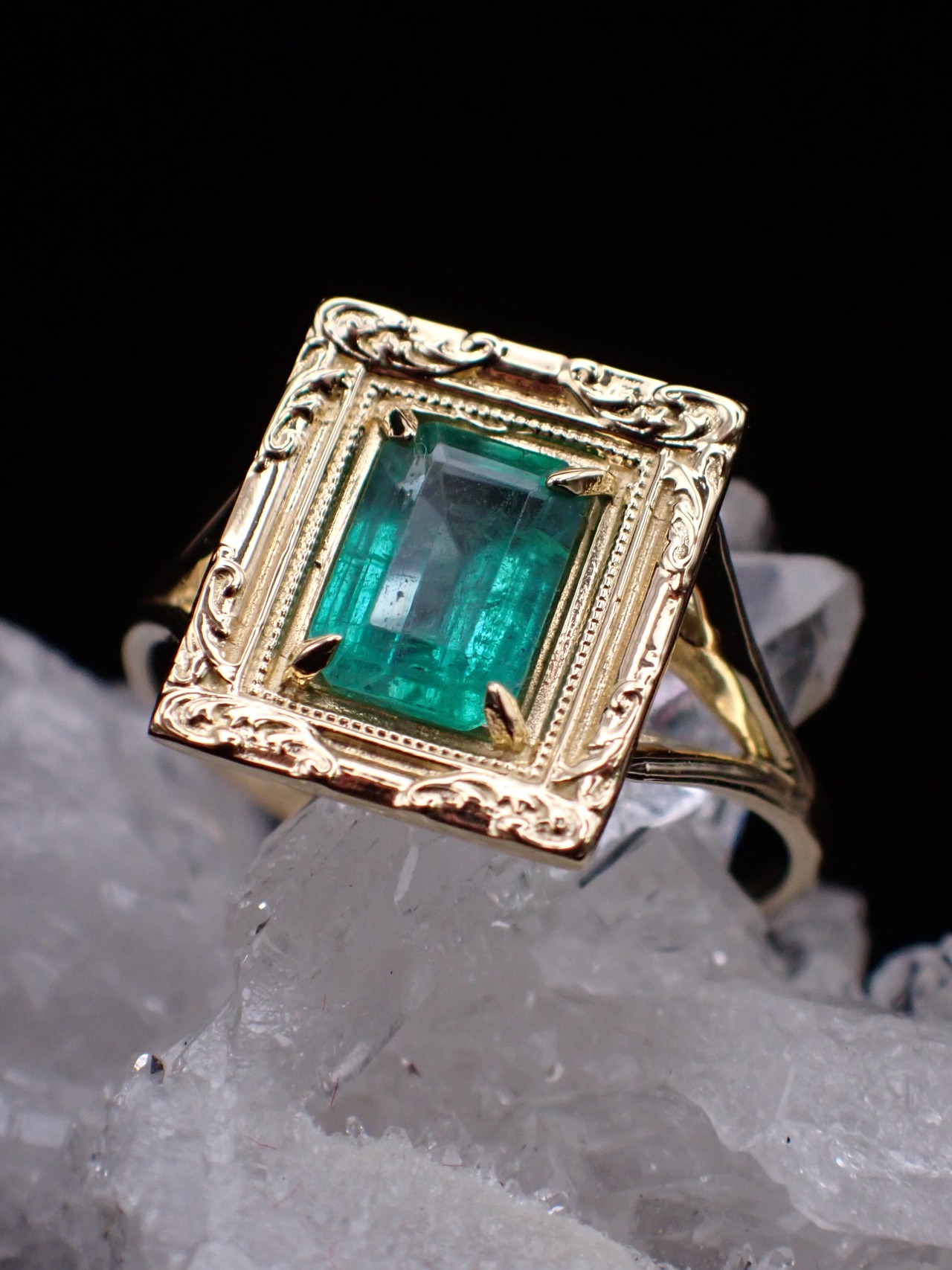 鮮やかで透明感のあるエメラルドで、お指元を華やかに。