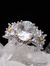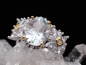 石の周りは美しいジルコニアで囲まれてゴージャスながらも、裏側は肌あたりが良く、安定感のあるアームとなっております。
