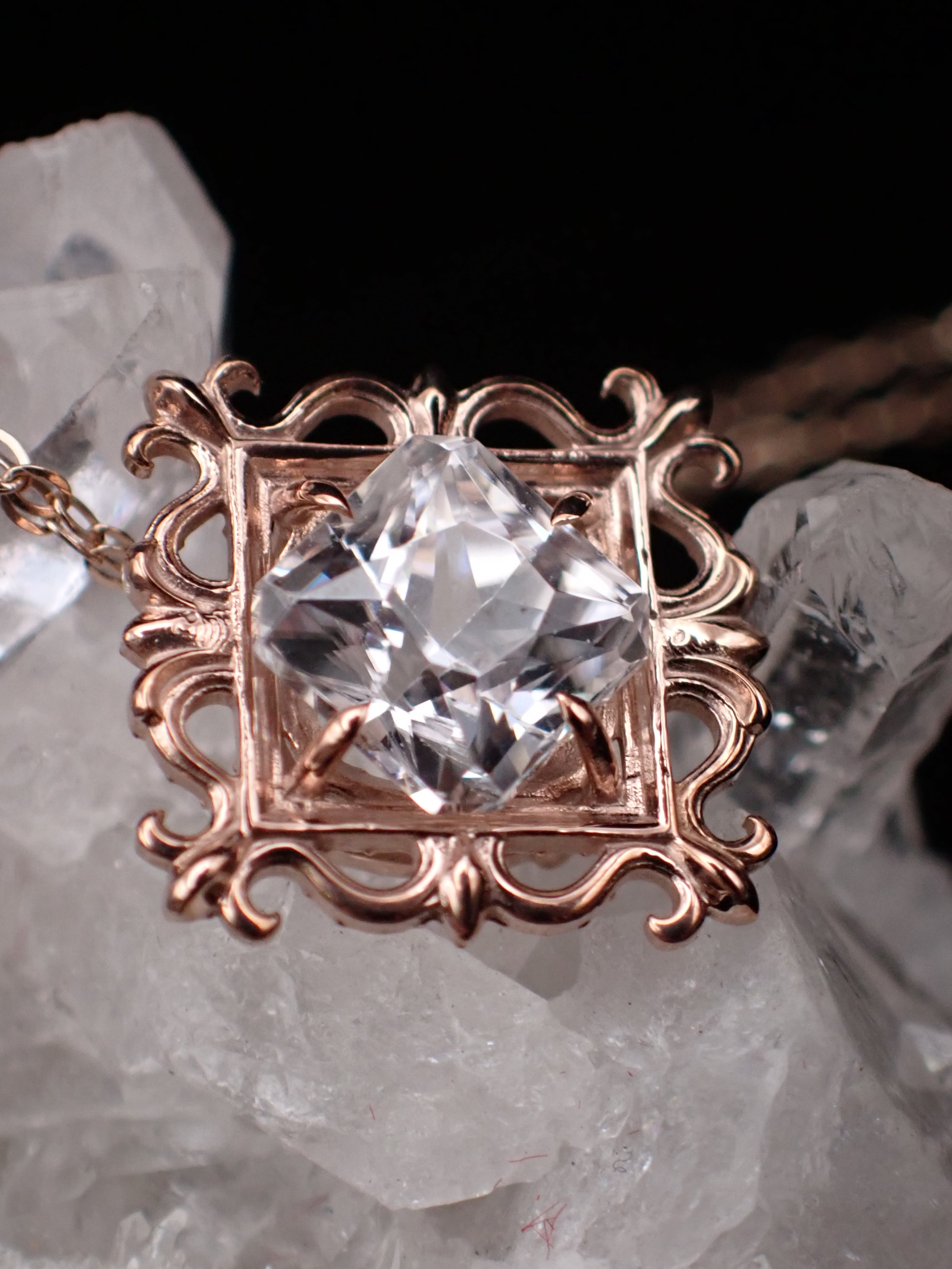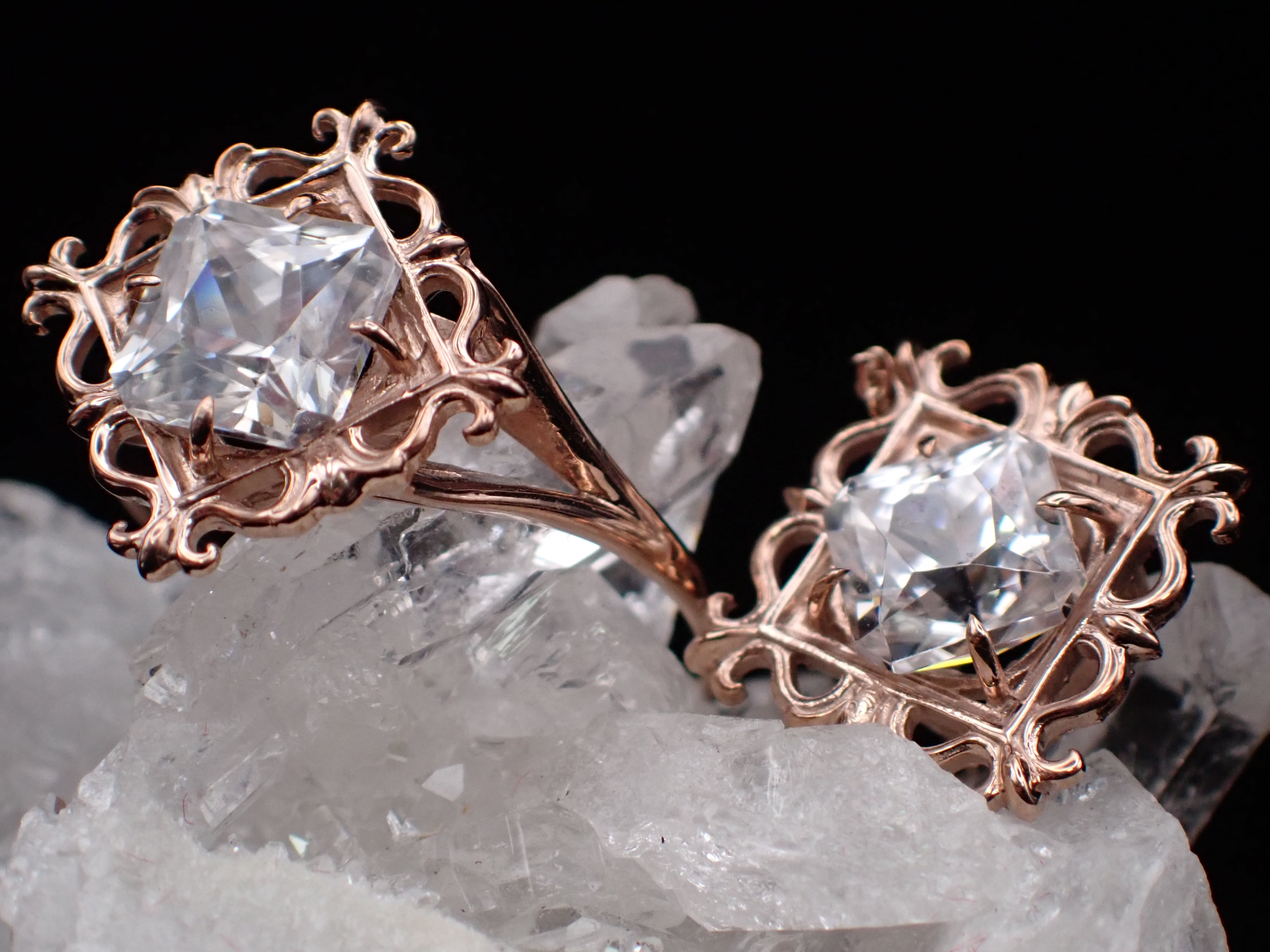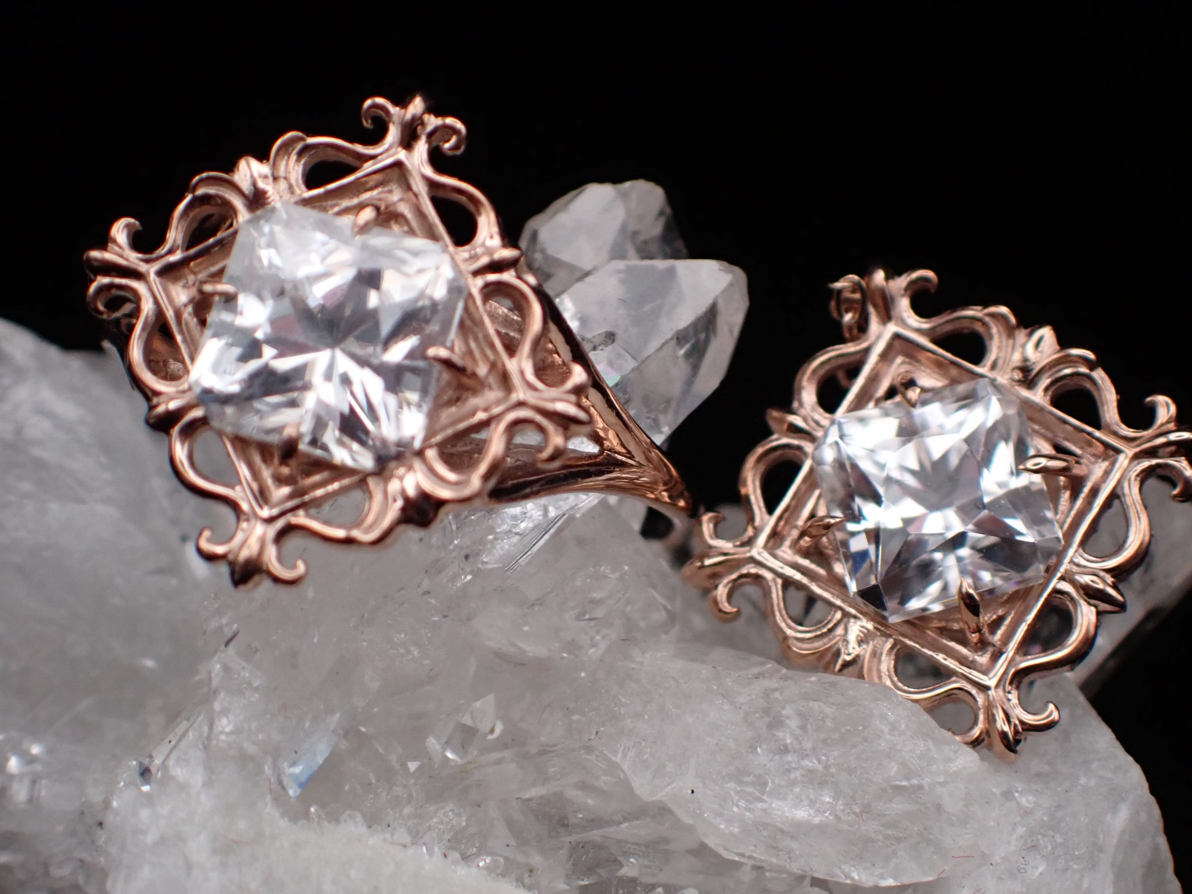 まるで石を絵画のように、美しい額縁の中へ、ホワイトジルコンを納めました。
