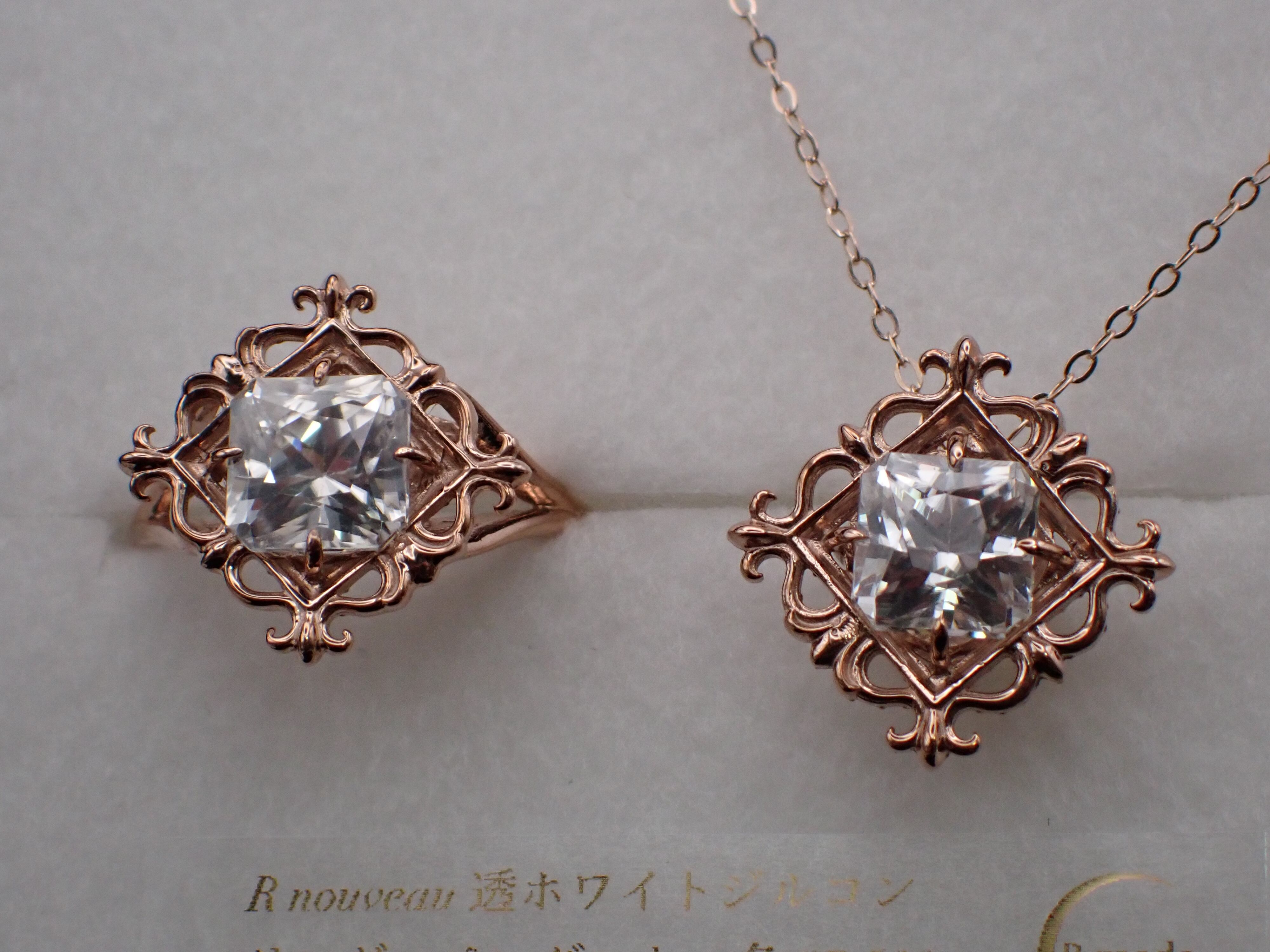 【限定】【 R.nouveau 】14号 透 ホワイトジルコンPGペンダント&リングセット