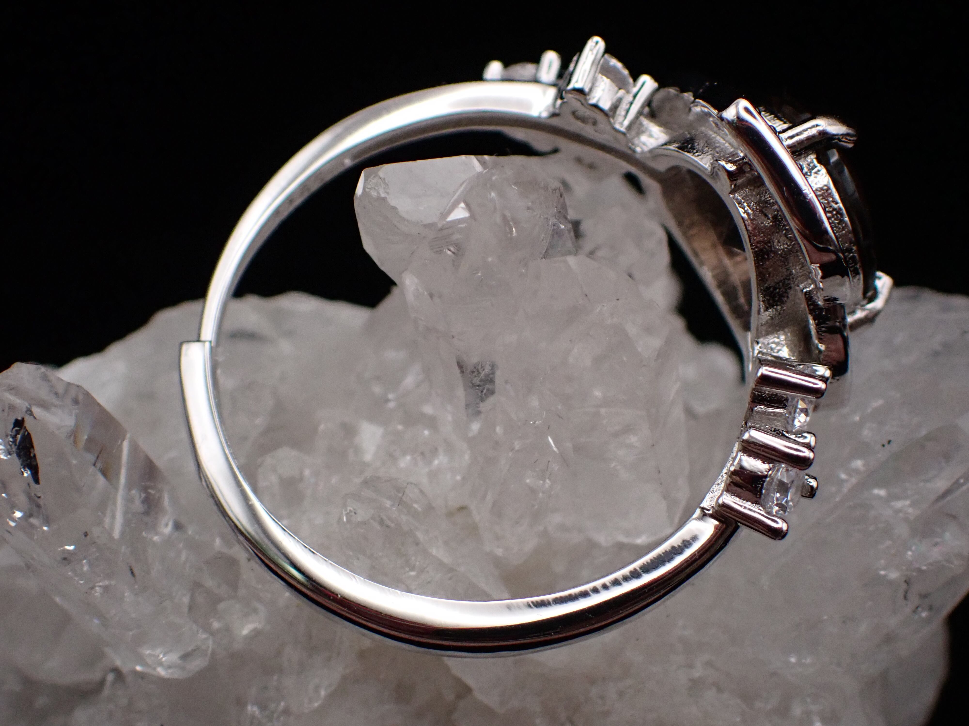 薔薇ring コンケーブスモーキークォーツ フリーサイズリングSV