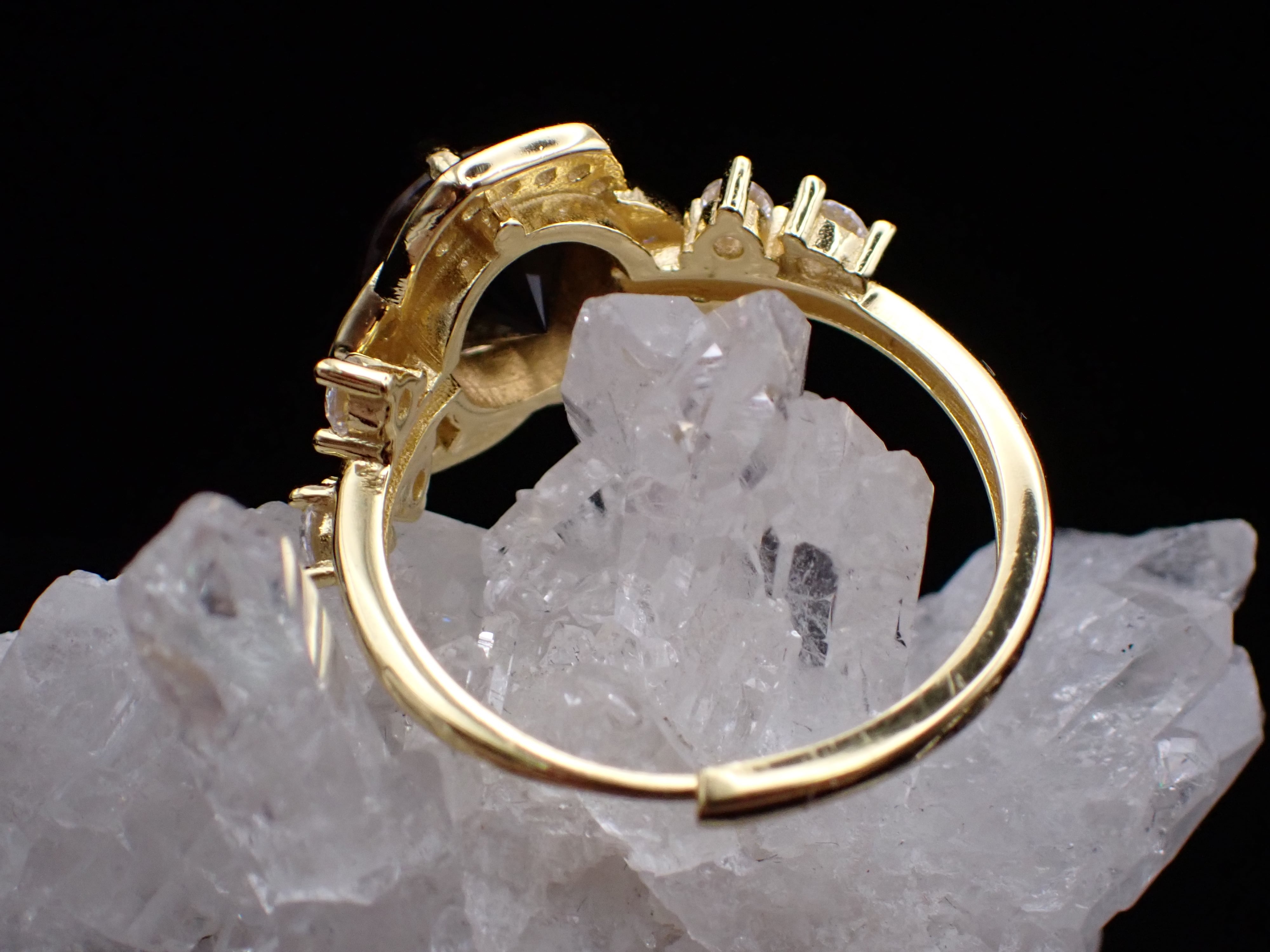 薔薇ring コンケーブスモーキークォーツ フリーサイズリングYG
