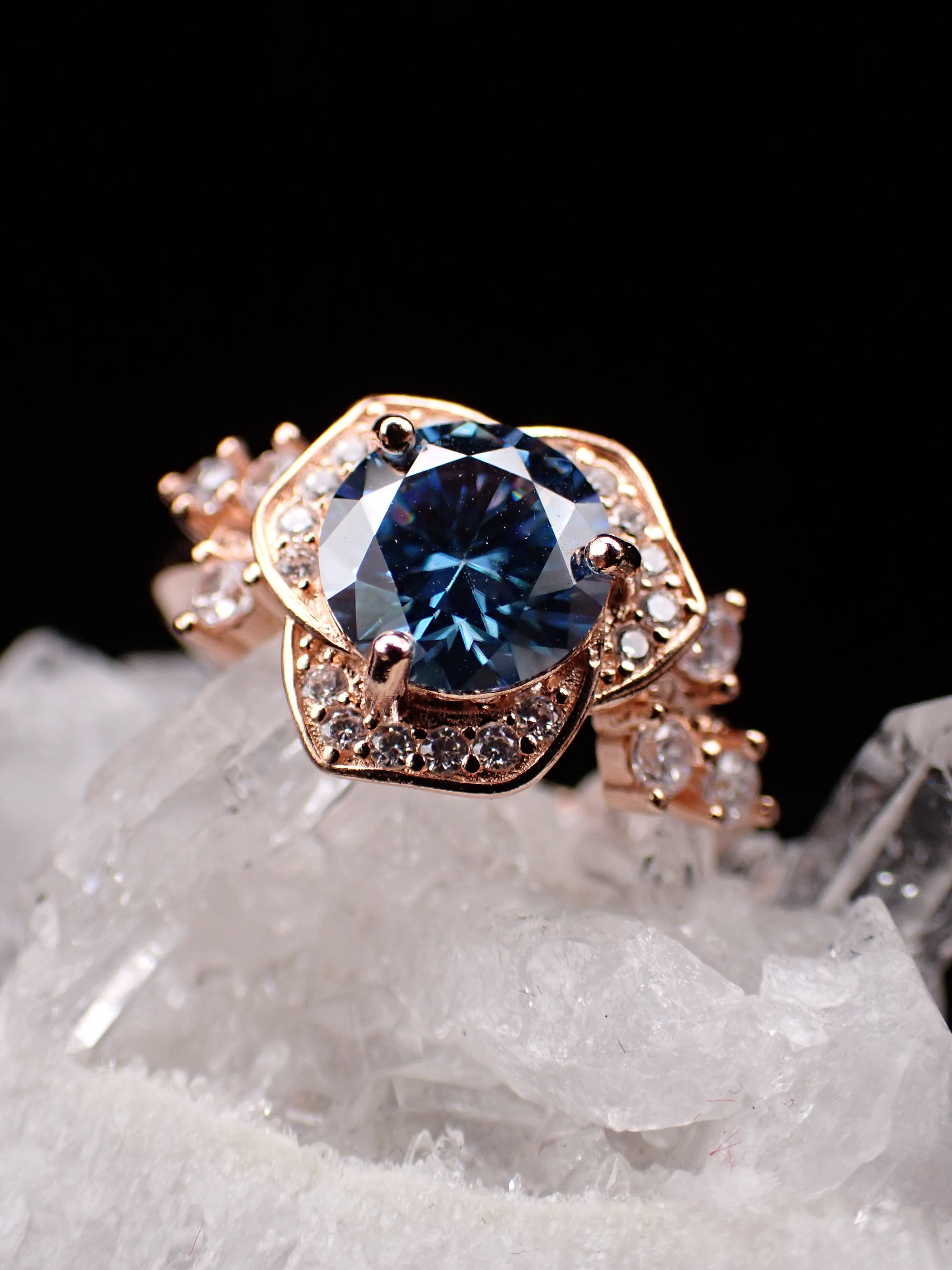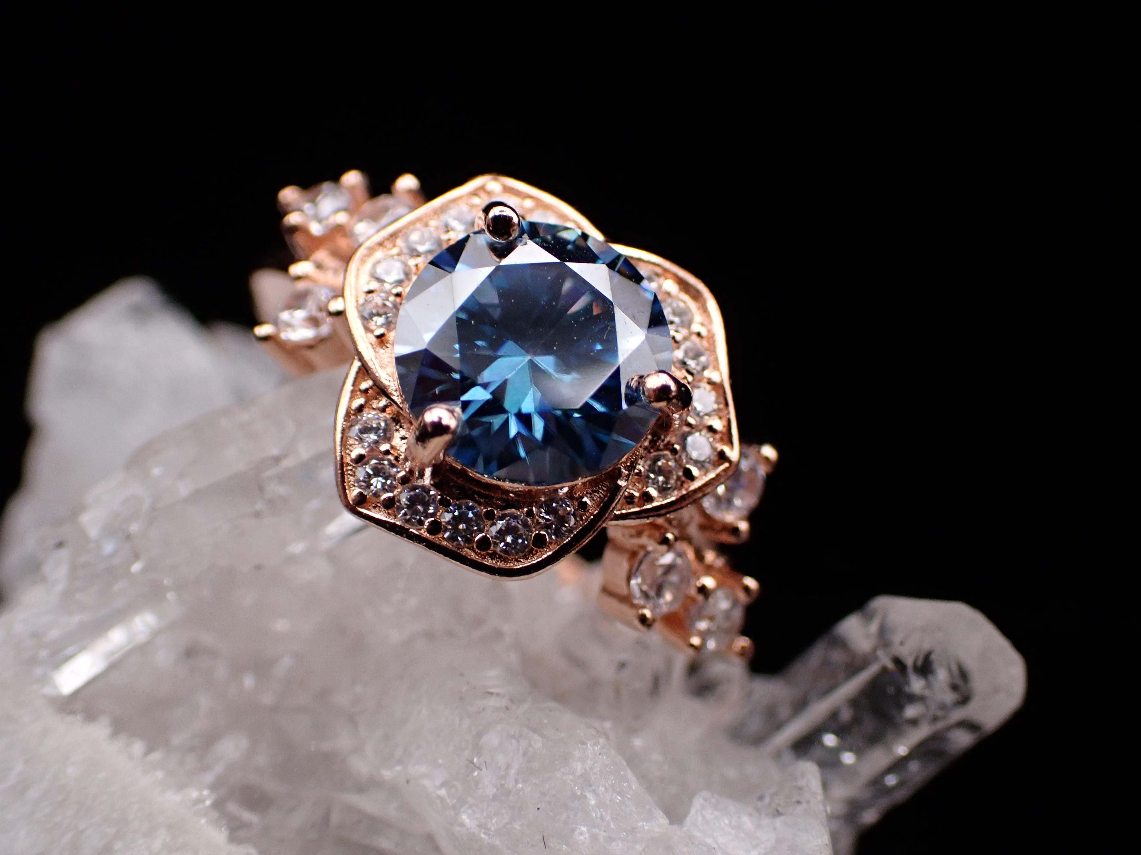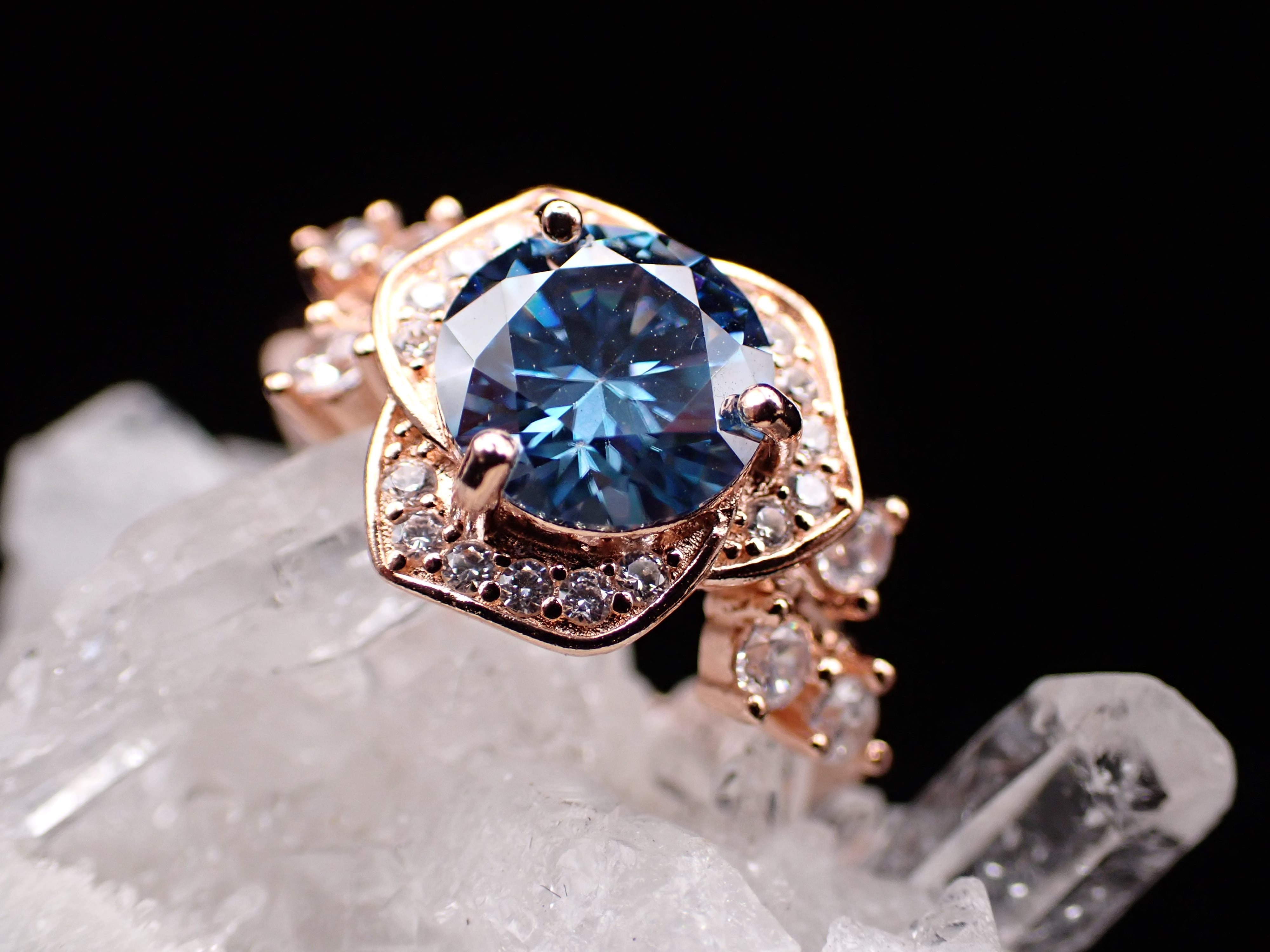 薔薇ring ブルーモアッサナイト フリーサイズリングPG