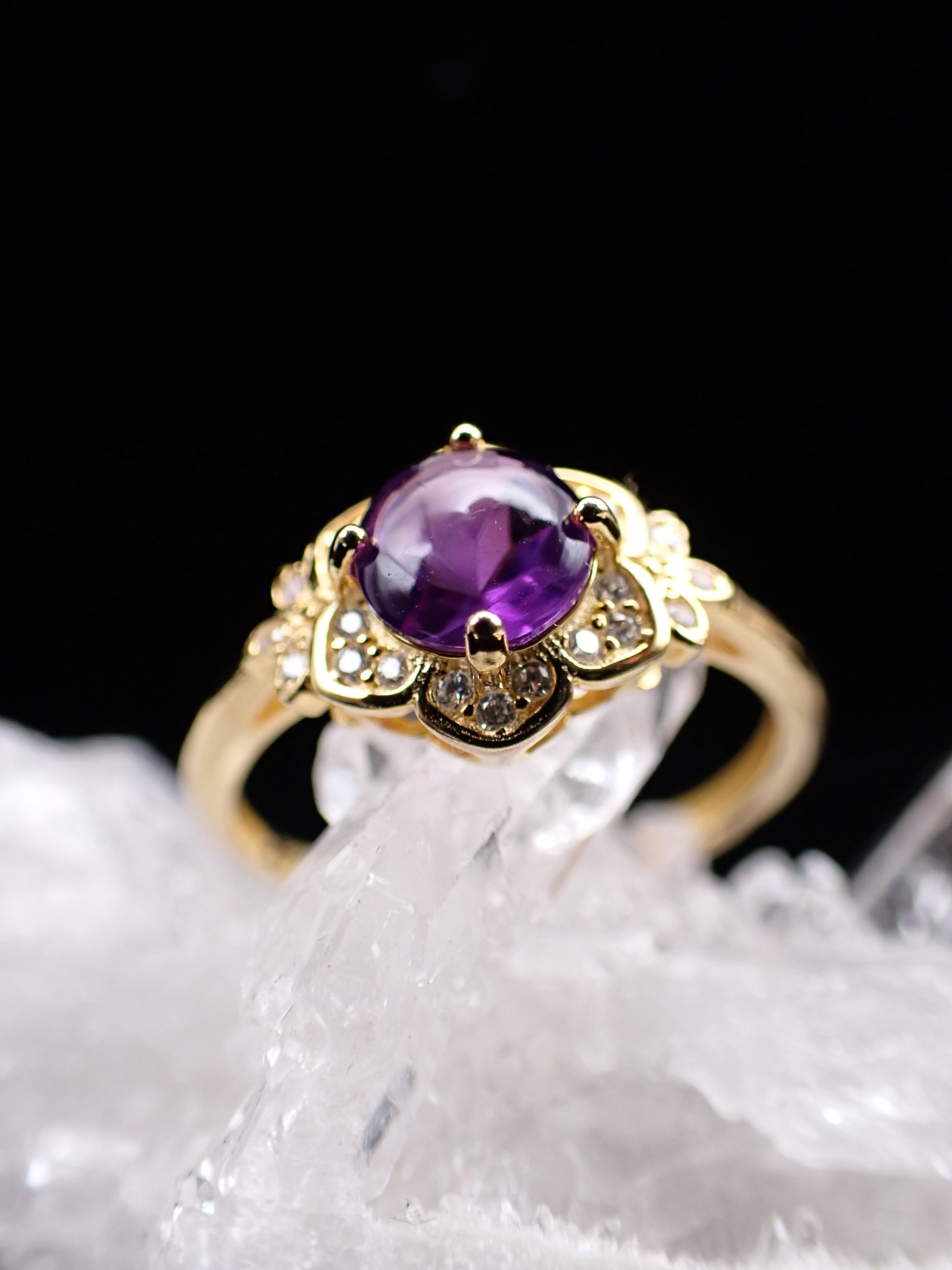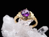 桔梗の花びらの中央に咲き誇る美しいアメジスト。