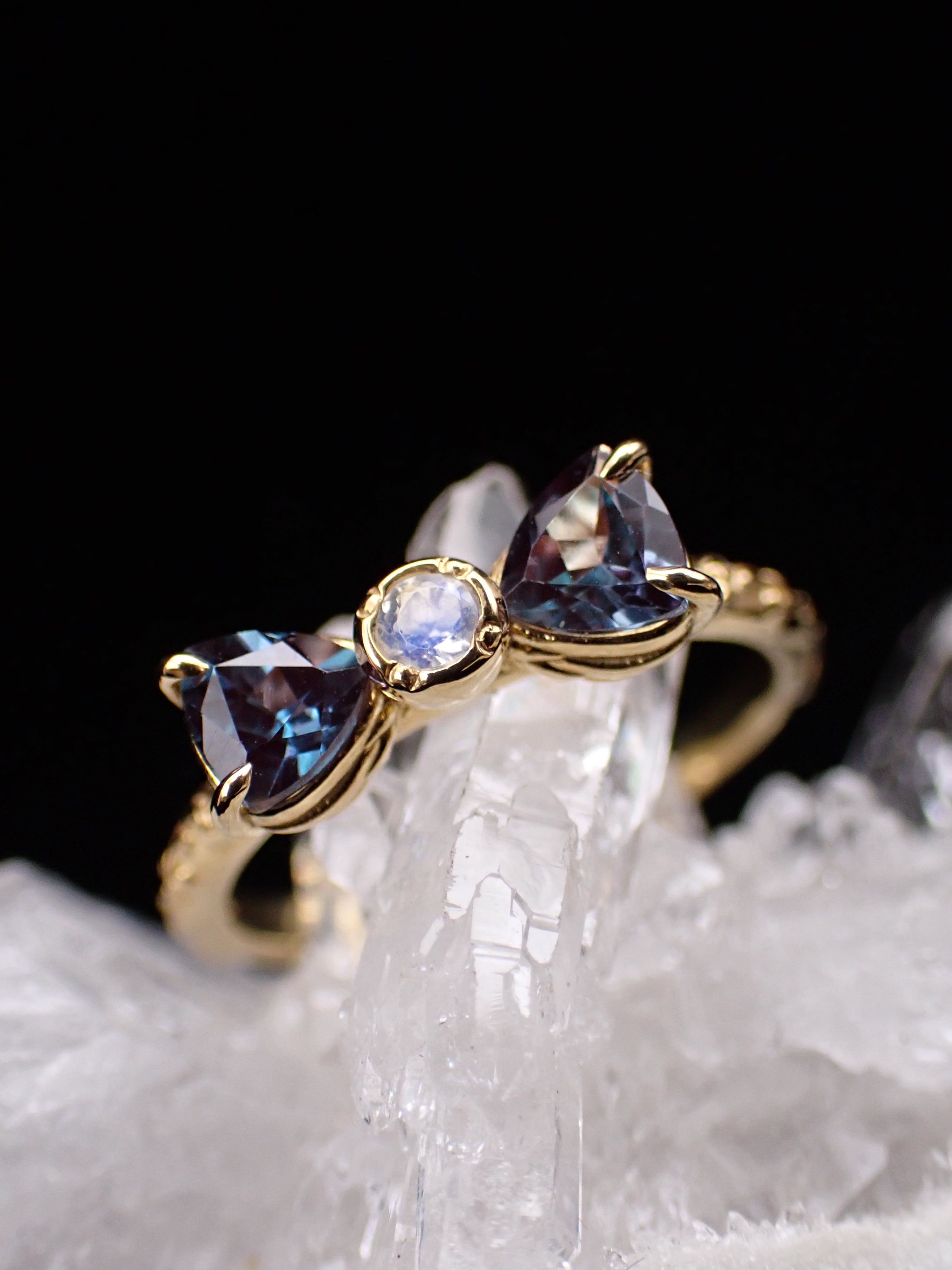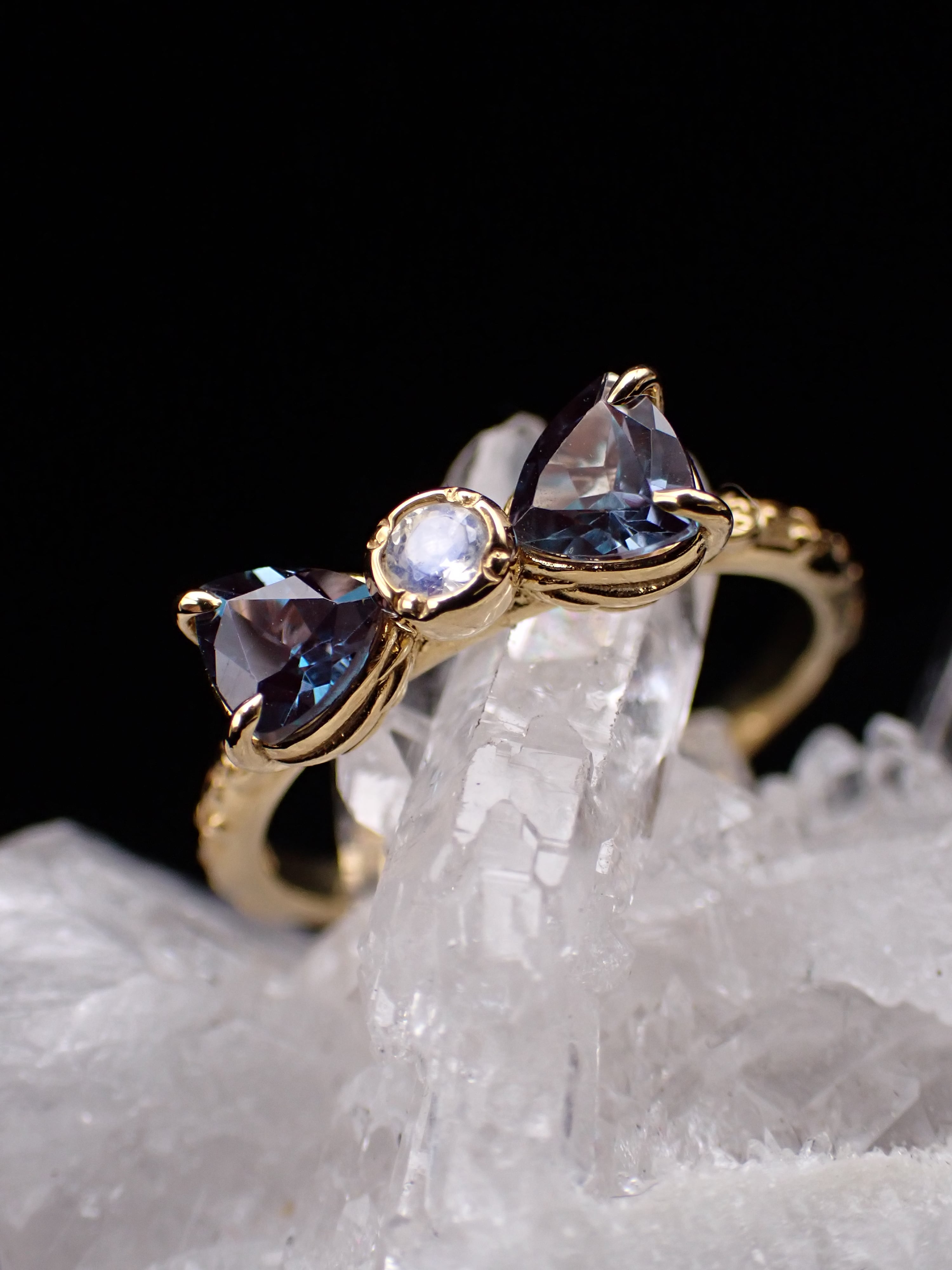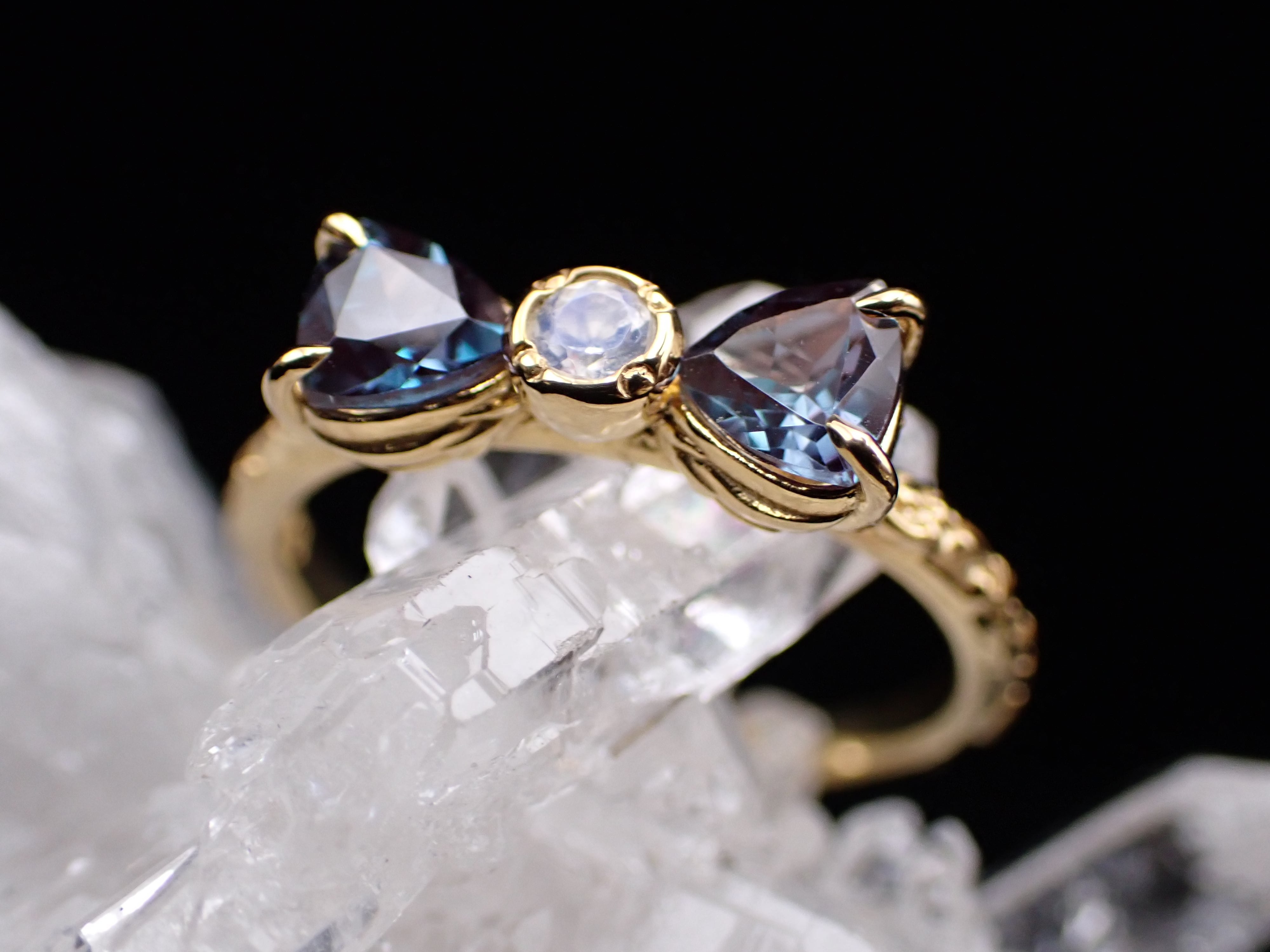 【 R.nouveau 】12号 RIBBON 合成アレキサンドライト&アンデシンラブラドライト YGリング